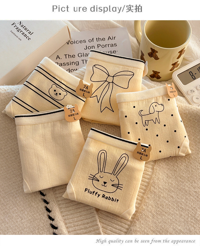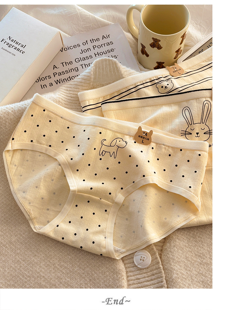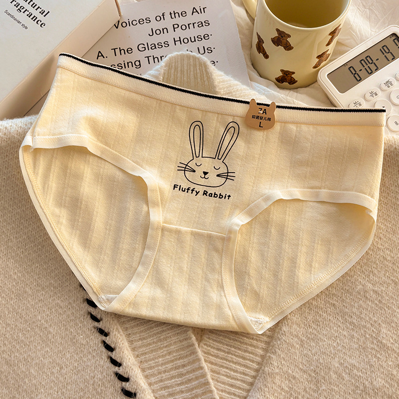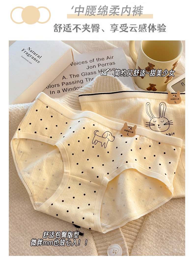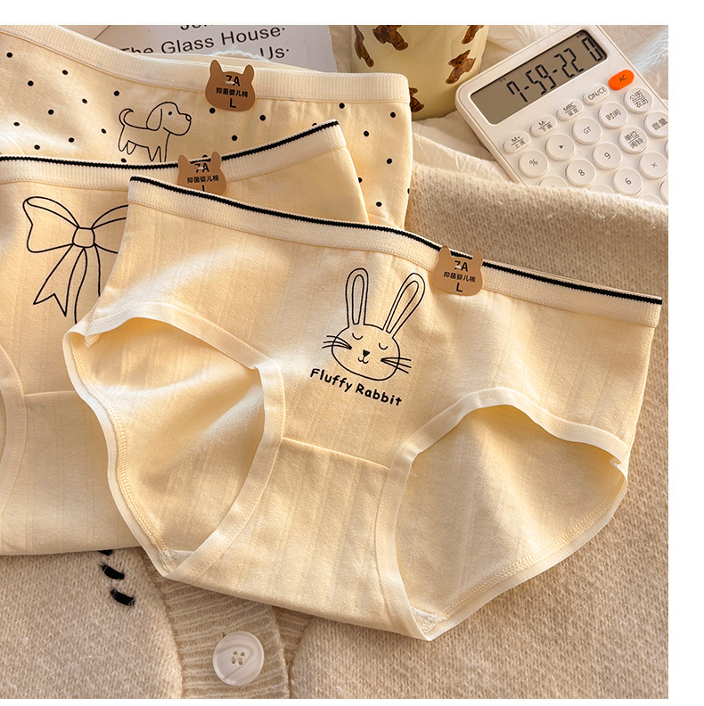 여성용 7A 면 항균 속옷, 중간 허리, 편안하고 피부 친화적이며 통기성이 뛰어난 순면 항균 만화 소녀 귀여운 학생 바지스토어 가기