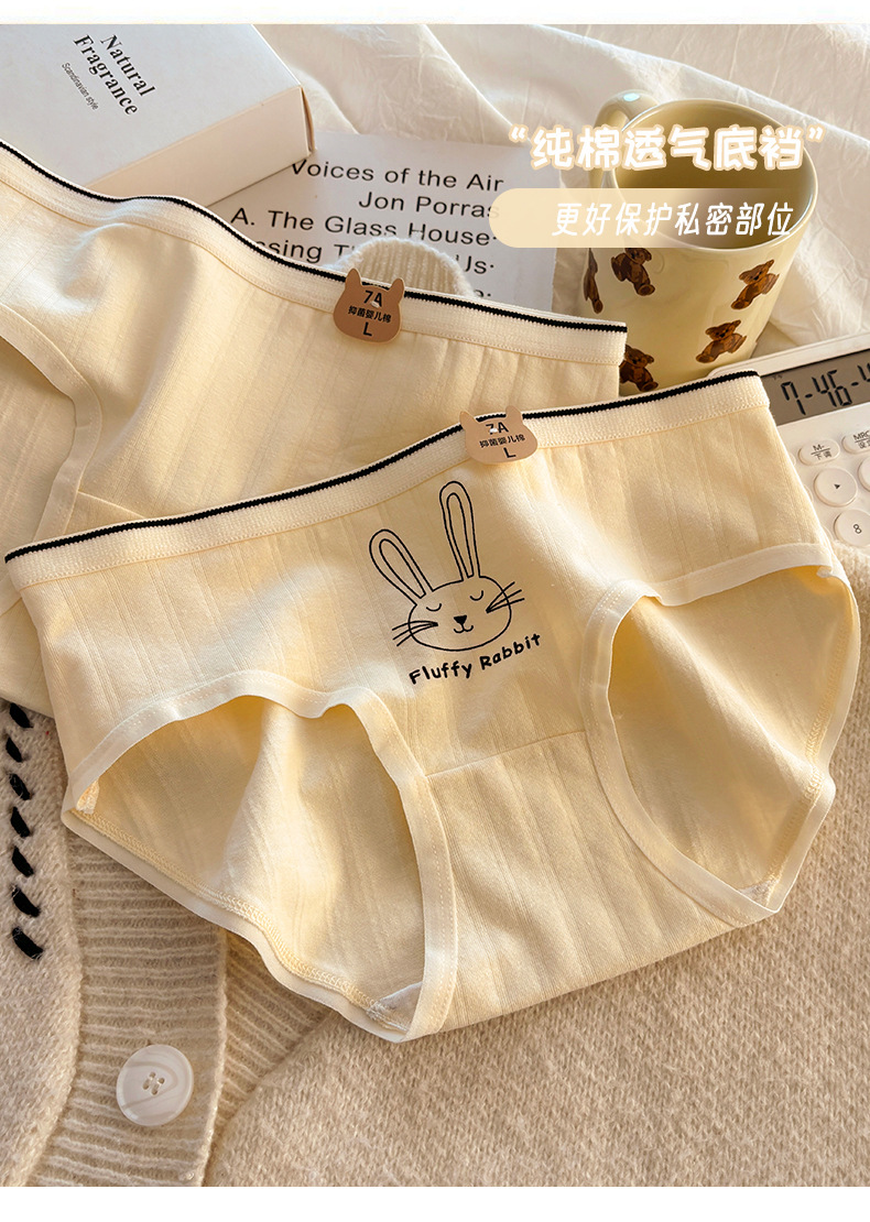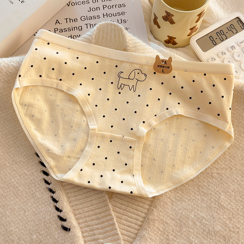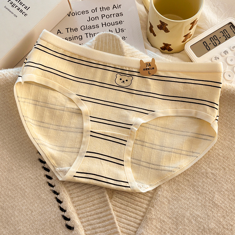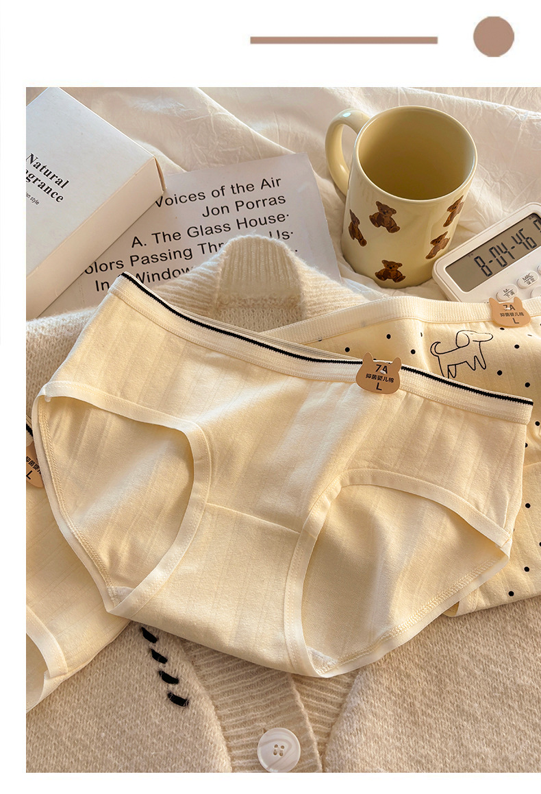 여성용 7A 면 항균 속옷, 중간 허리, 편안하고 피부 친화적이며 통기성이 뛰어난 순면 항균 만화 소녀 귀여운 학생 바지스토어 가기