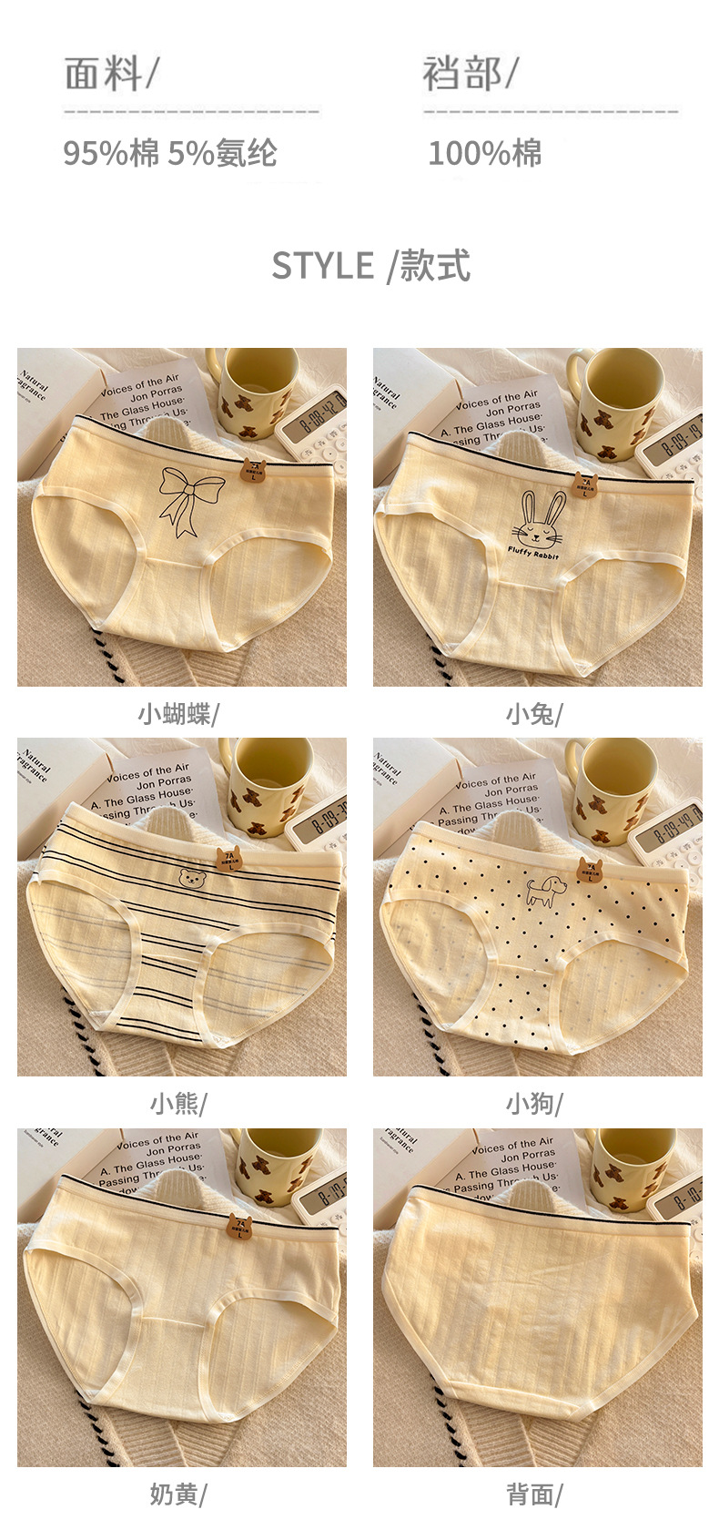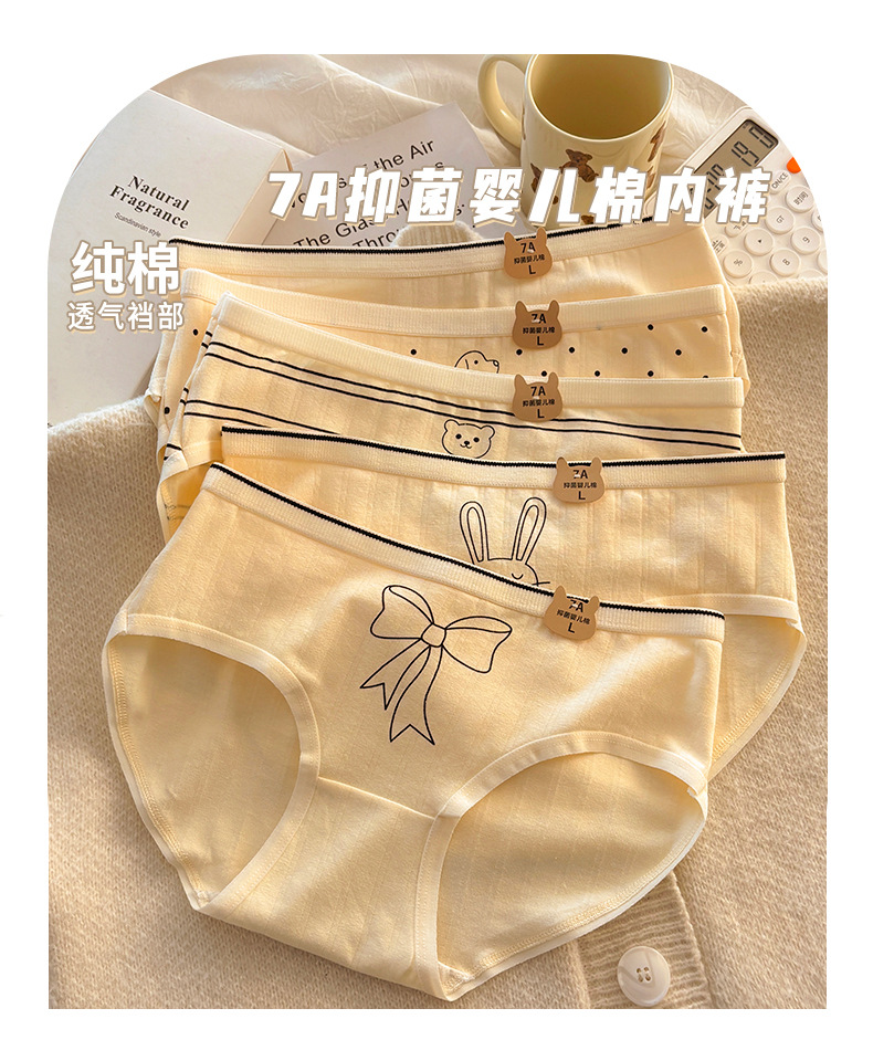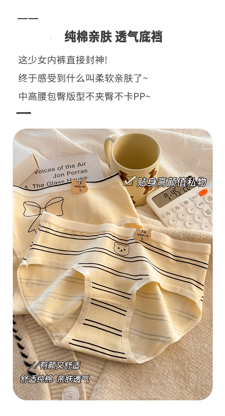 여성용 7A 면 항균 속옷, 중간 허리, 편안하고 피부 친화적이며 통기성이 뛰어난 순면 항균 만화 소녀 귀여운 학생 바지