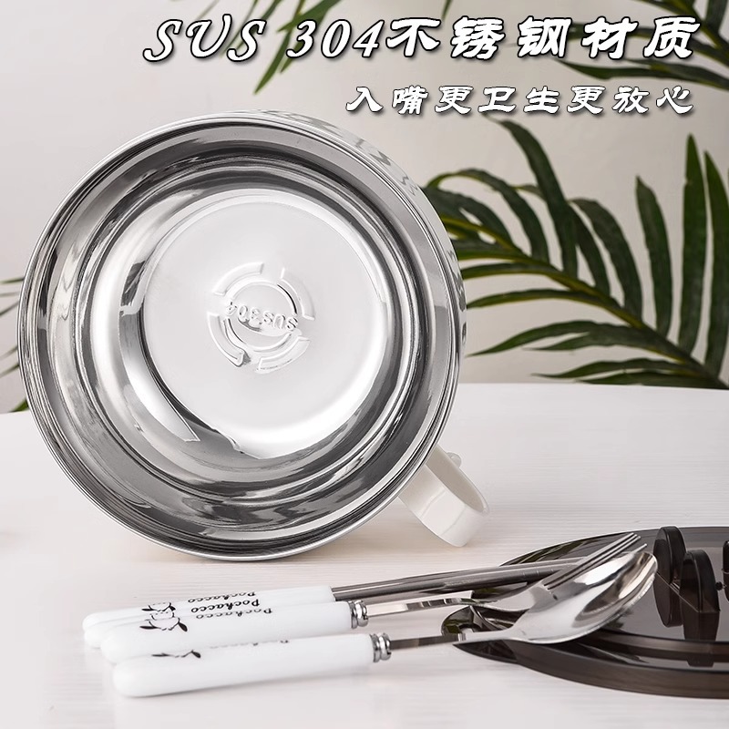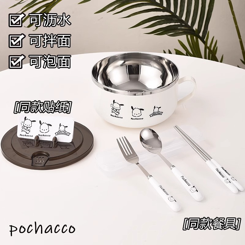 뚜껑과 식기가 포함된 스테인레스 스틸 파차 개 인스턴트 국수 그릇 학생 일본식 배수 기숙사 화상 방지 도시락 인스턴트 국수 그릇스토어 가기