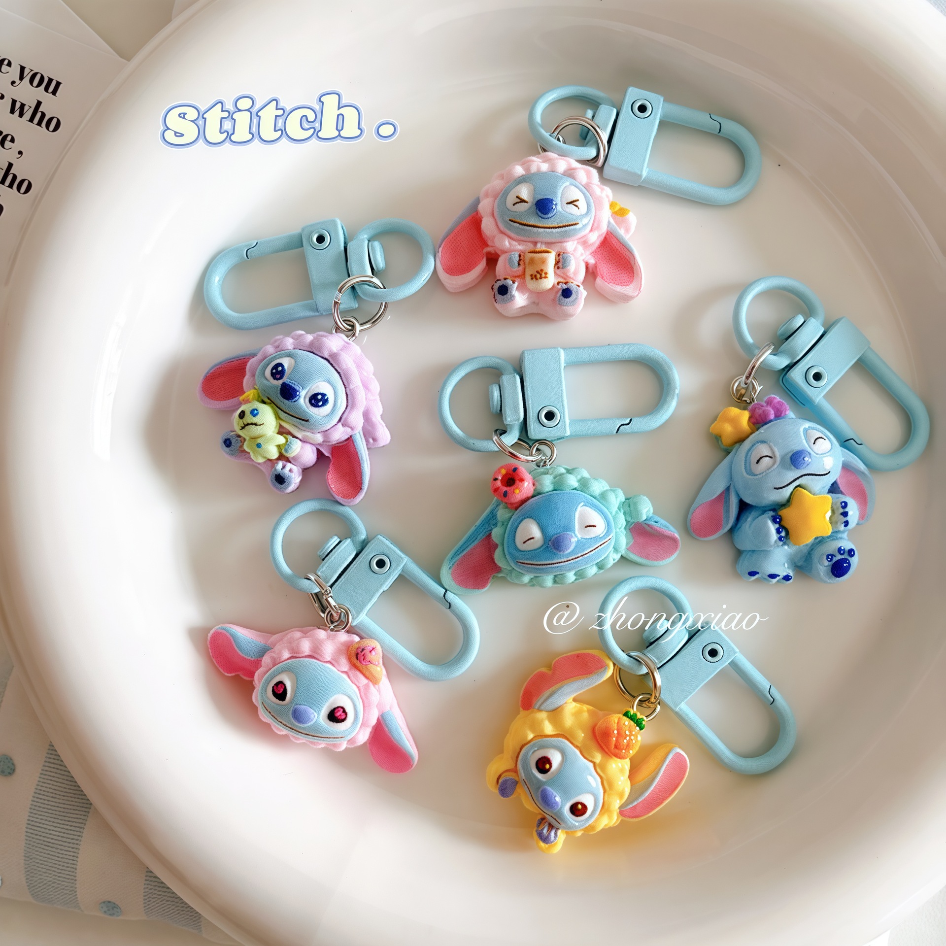 귀여운 만화 스티치 키 체인 펜던트 소녀 가방 펜던트 학생 학교 가방 액세서리 쥬얼리 bestie 선물