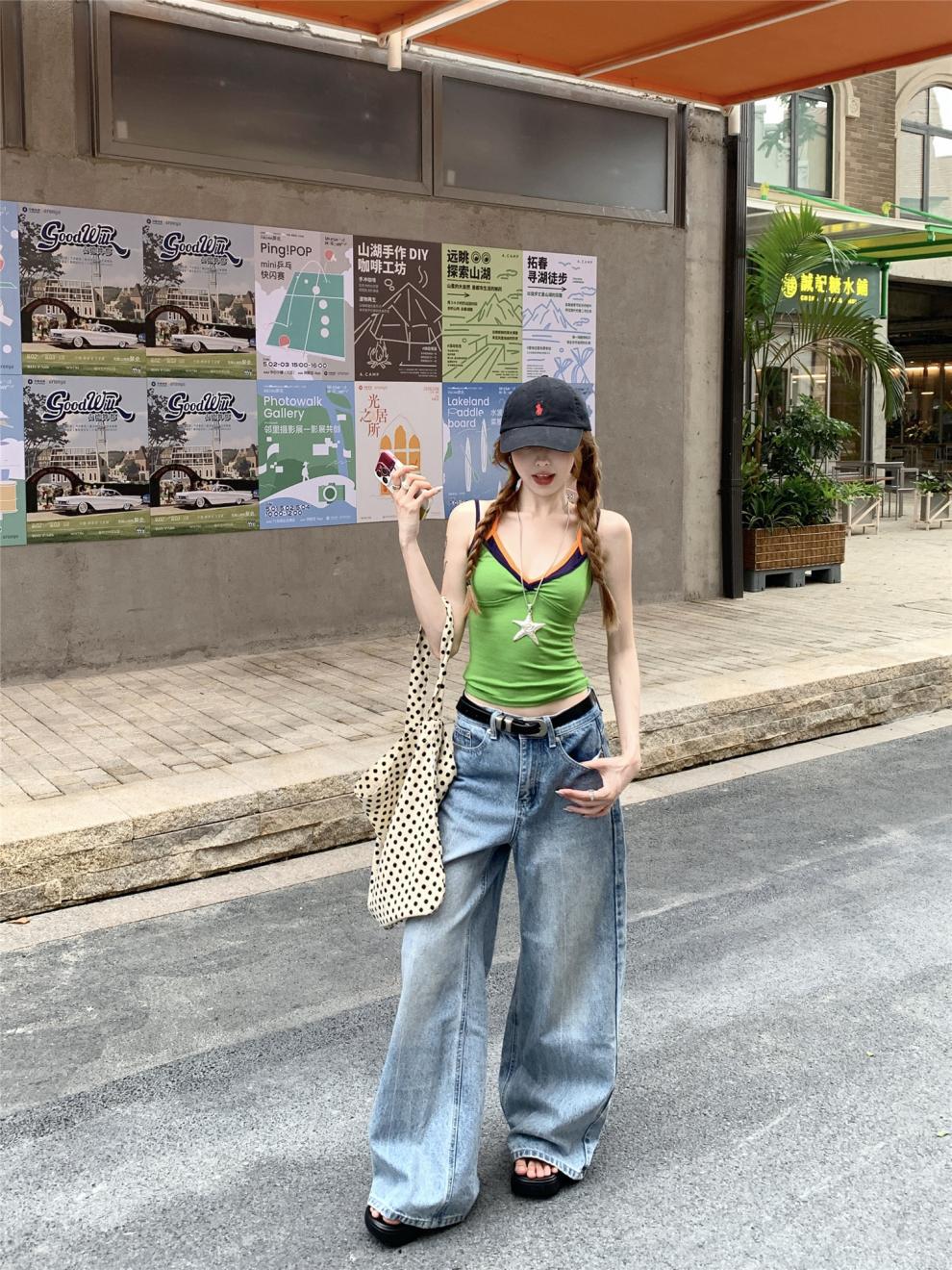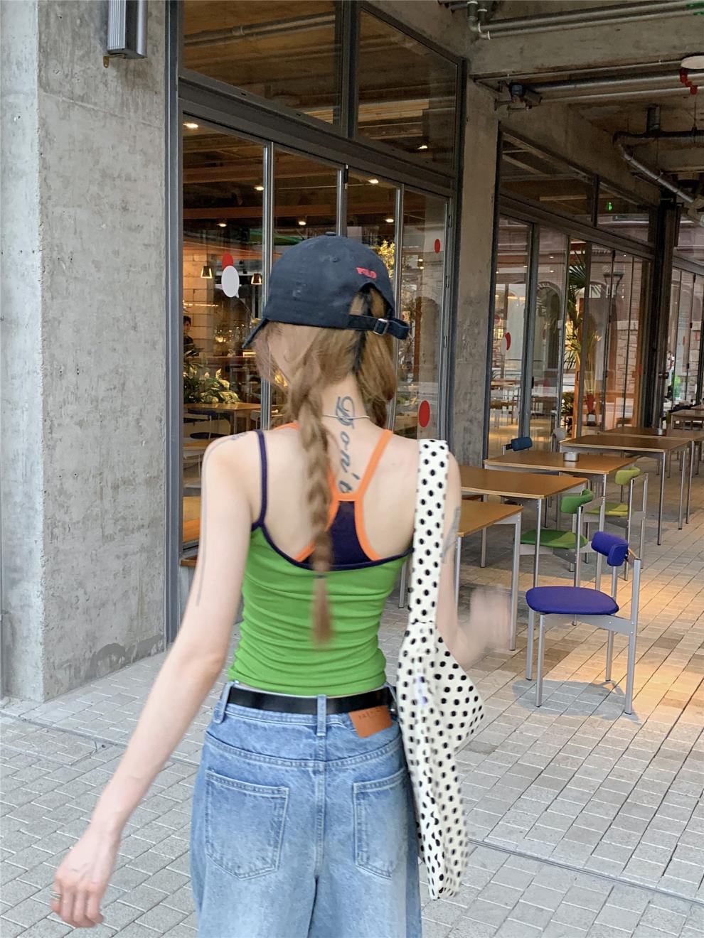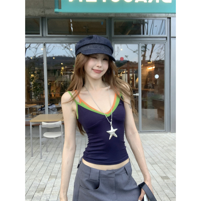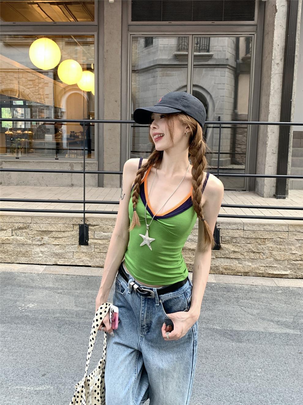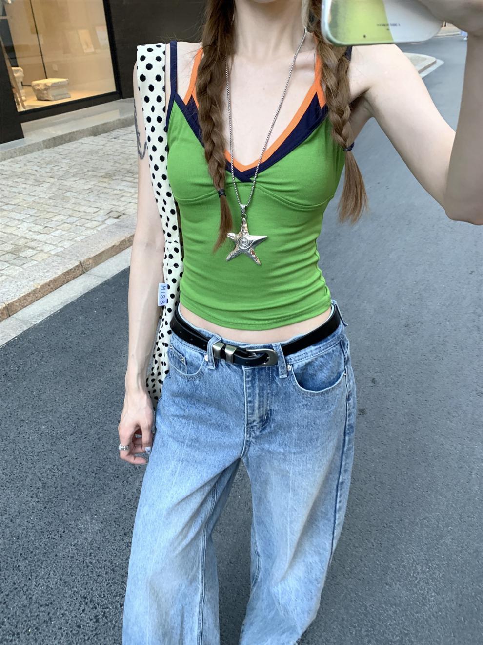 실제 샷 실제 가격 ~ 도파민 착용 녹색 가짜 투피스 캐미솔 여성 겉옷 슬림 쇼트 탑스토어 가기