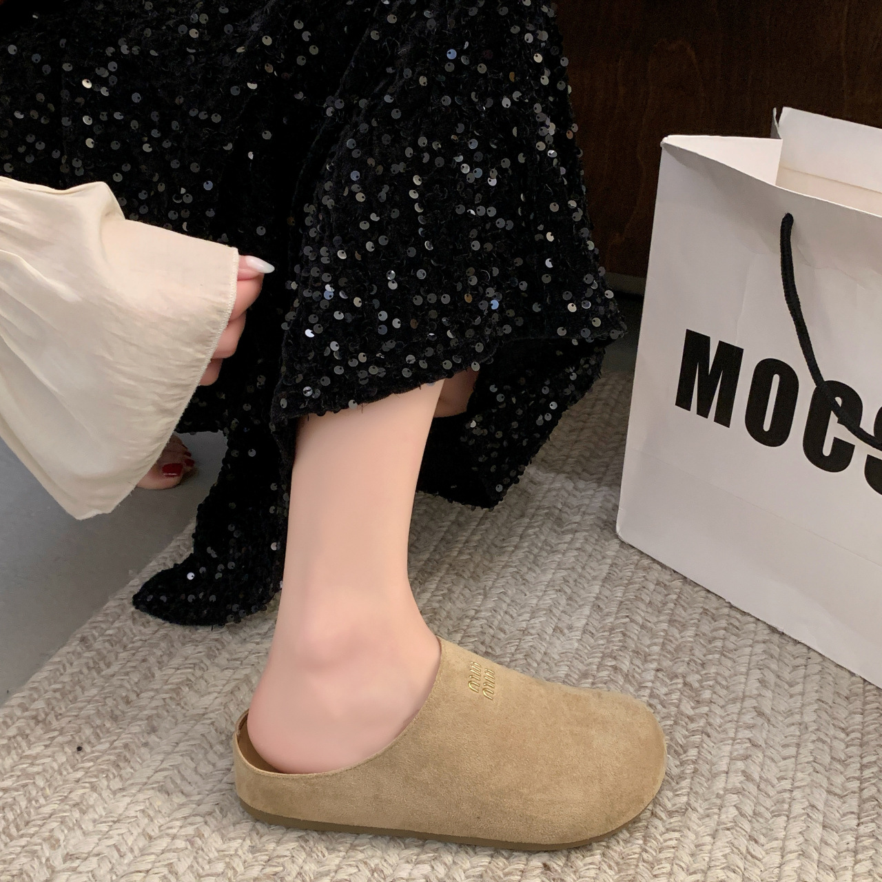 2025 새로운 Baotou 하프 슬리퍼 복고풍 겉옷 슬리퍼 여성 여름 다목적 캐주얼 신발 슬립 온 플랫 슬립 온 신발스토어 가기