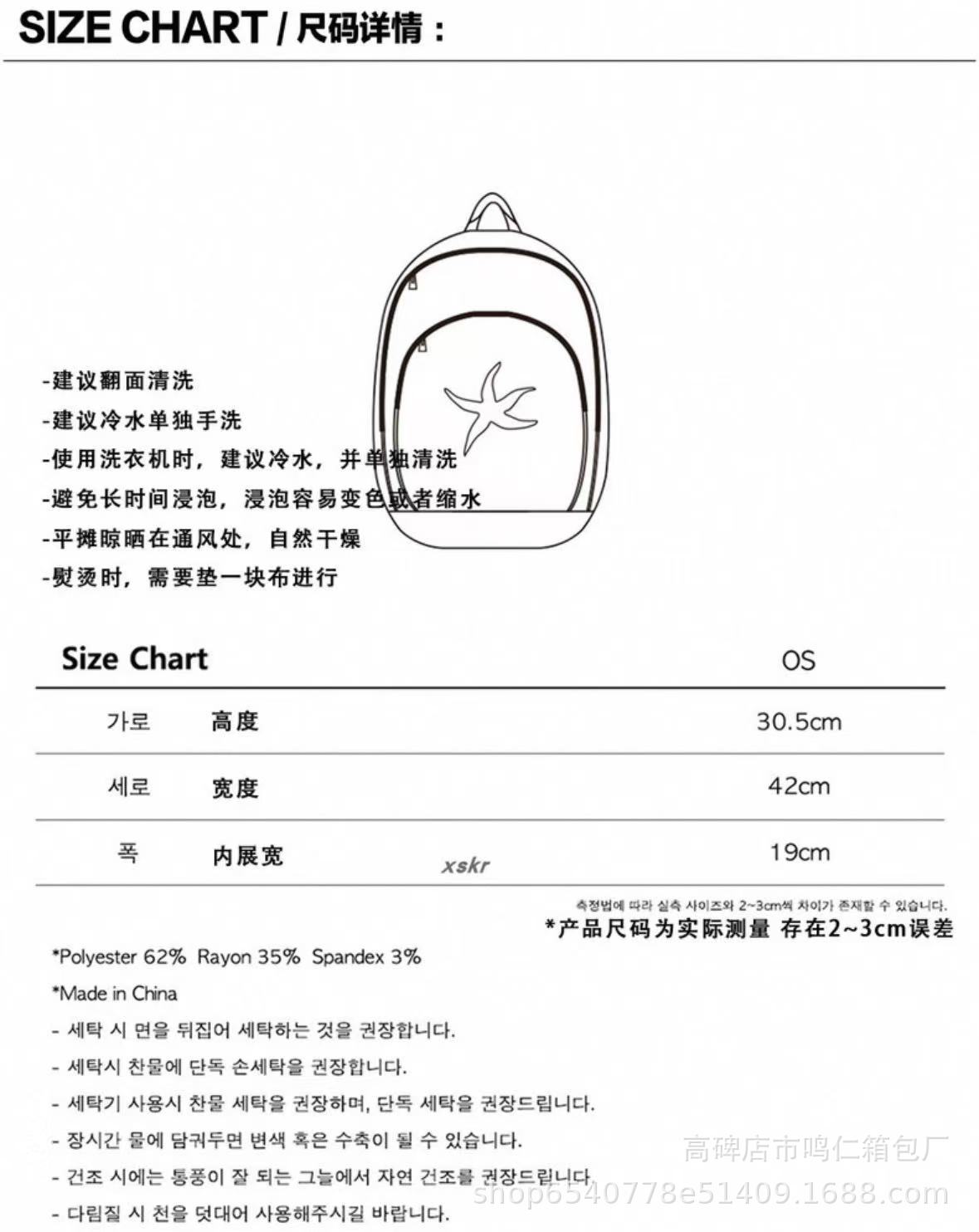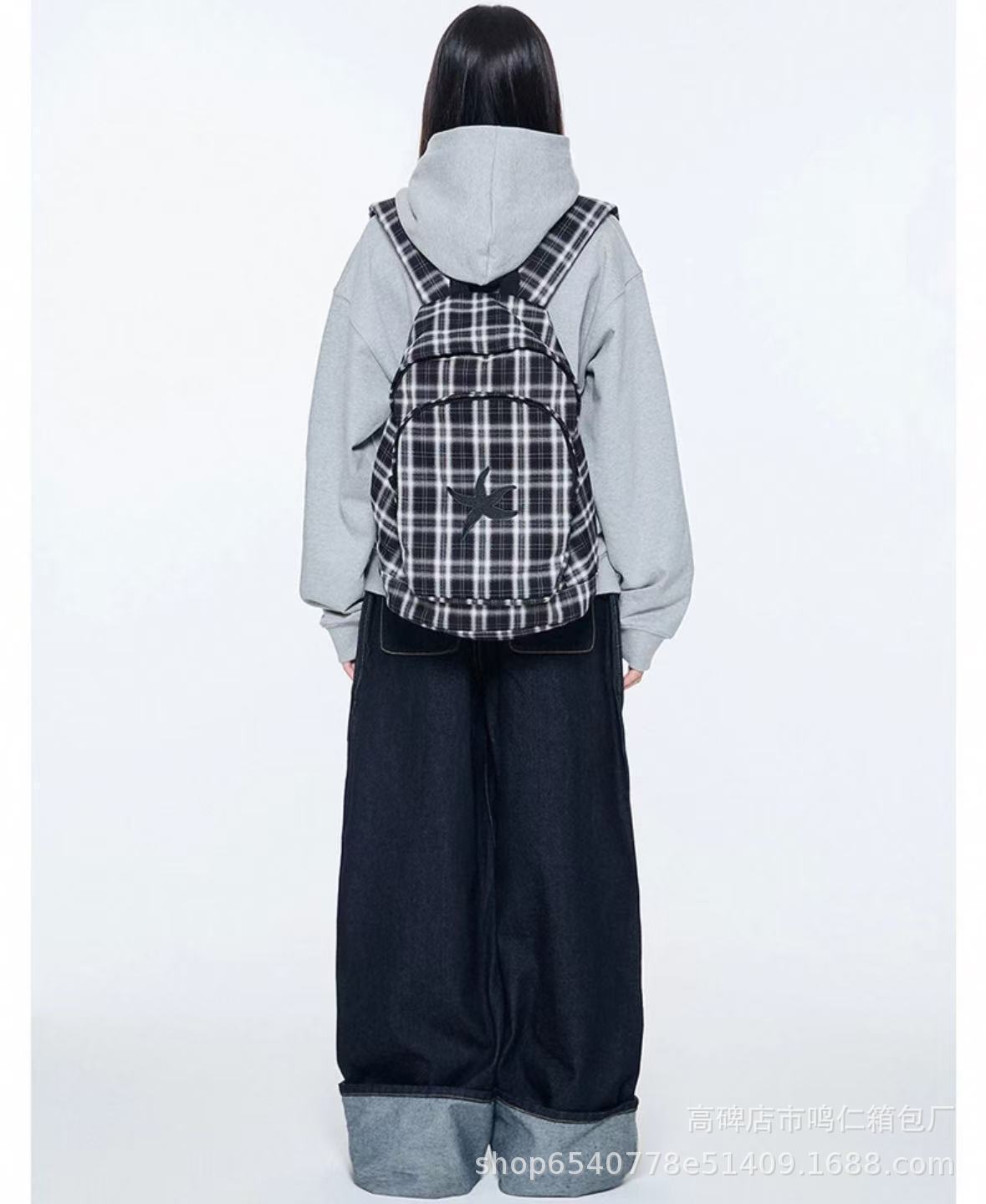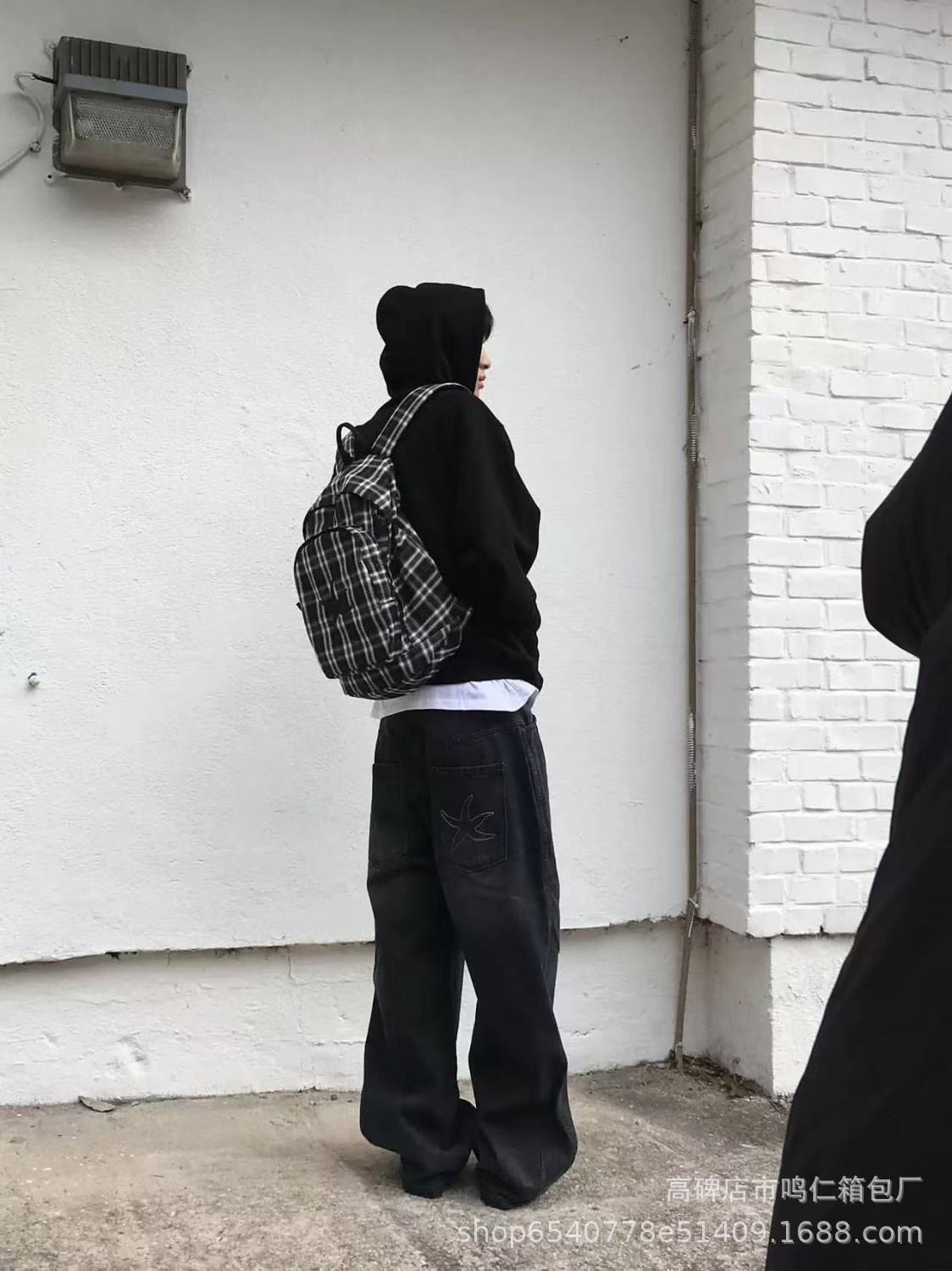 sudakooo 한국 구매 레트로 체크무늬 불가사리 대용량 백팩