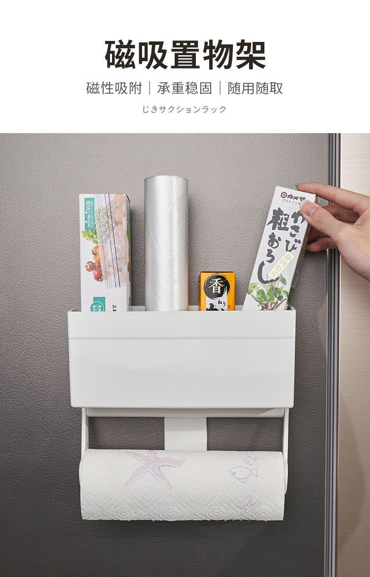 냉장고 측면 수납선반, 자석수납선반, 펀치프리, 가정용 다기능 접착필름선반, 주방롤종이걸이스토어 가기
