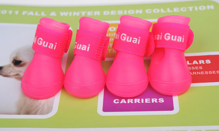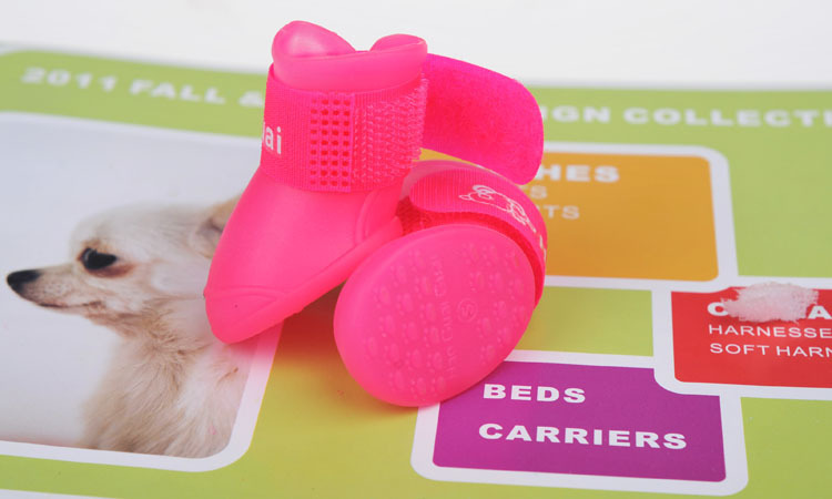 完美的漏斗形设计,使穿脱更加方便牢靠;独特的魔术贴设计,牢牢包裹住狗狗脚踝,减少雨水从鞋口渗入;底部花底纹,防滑增加摩擦力,宝宝们可以尽情的奔跑、玩耍有