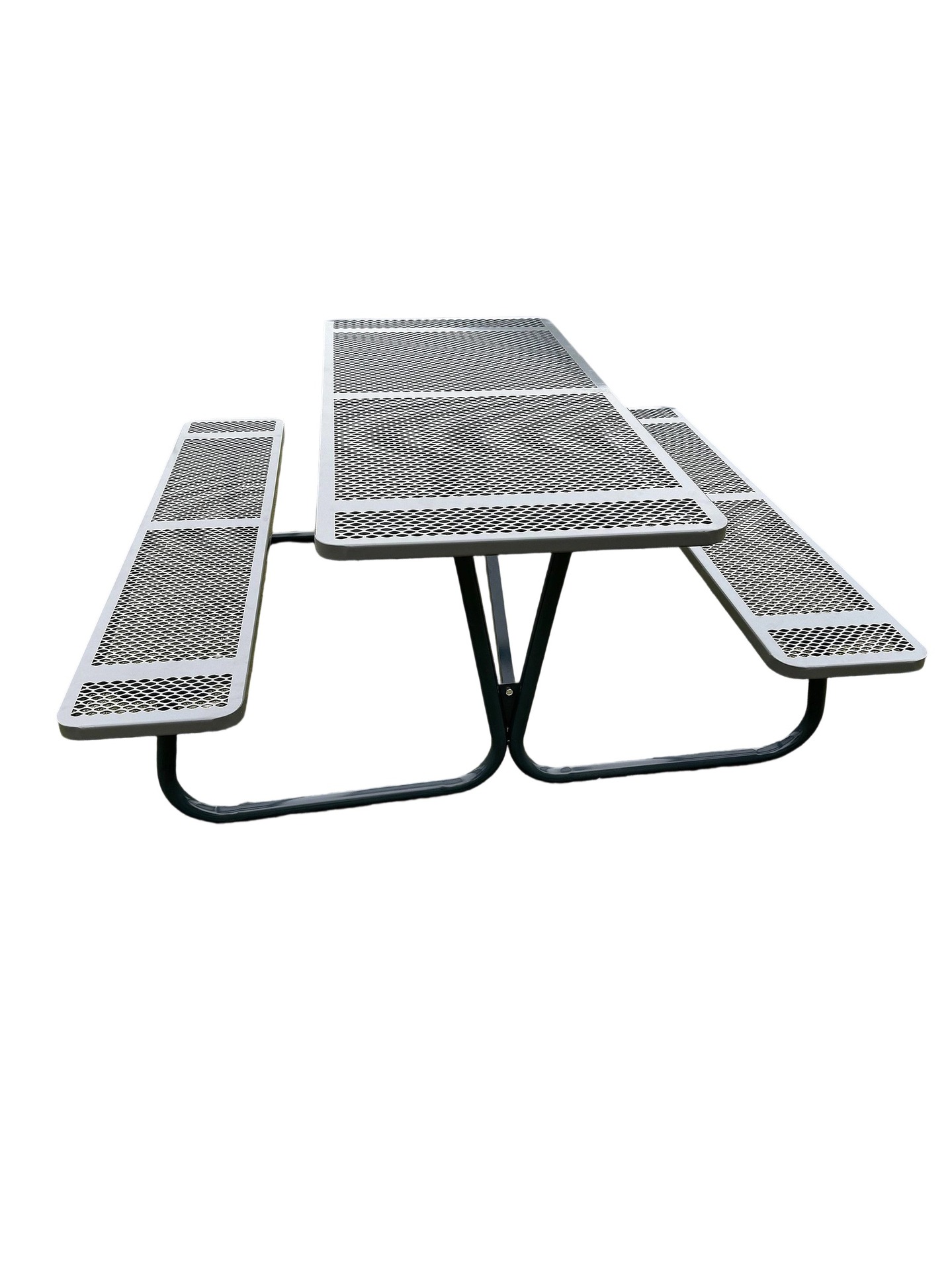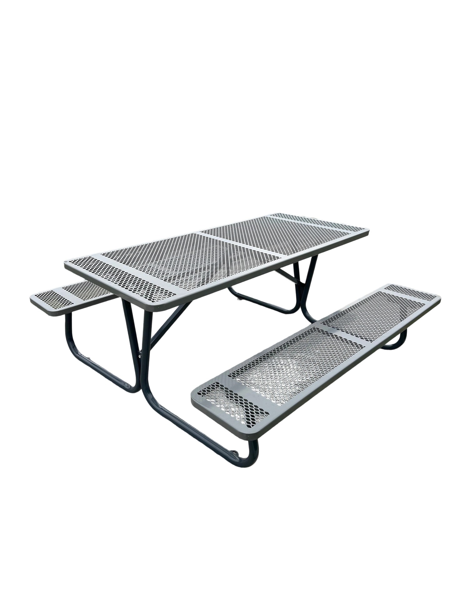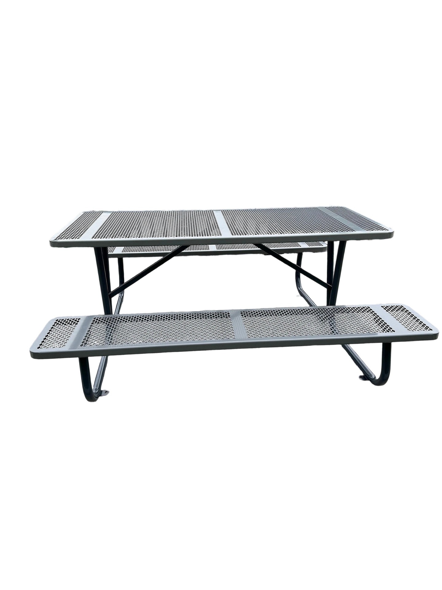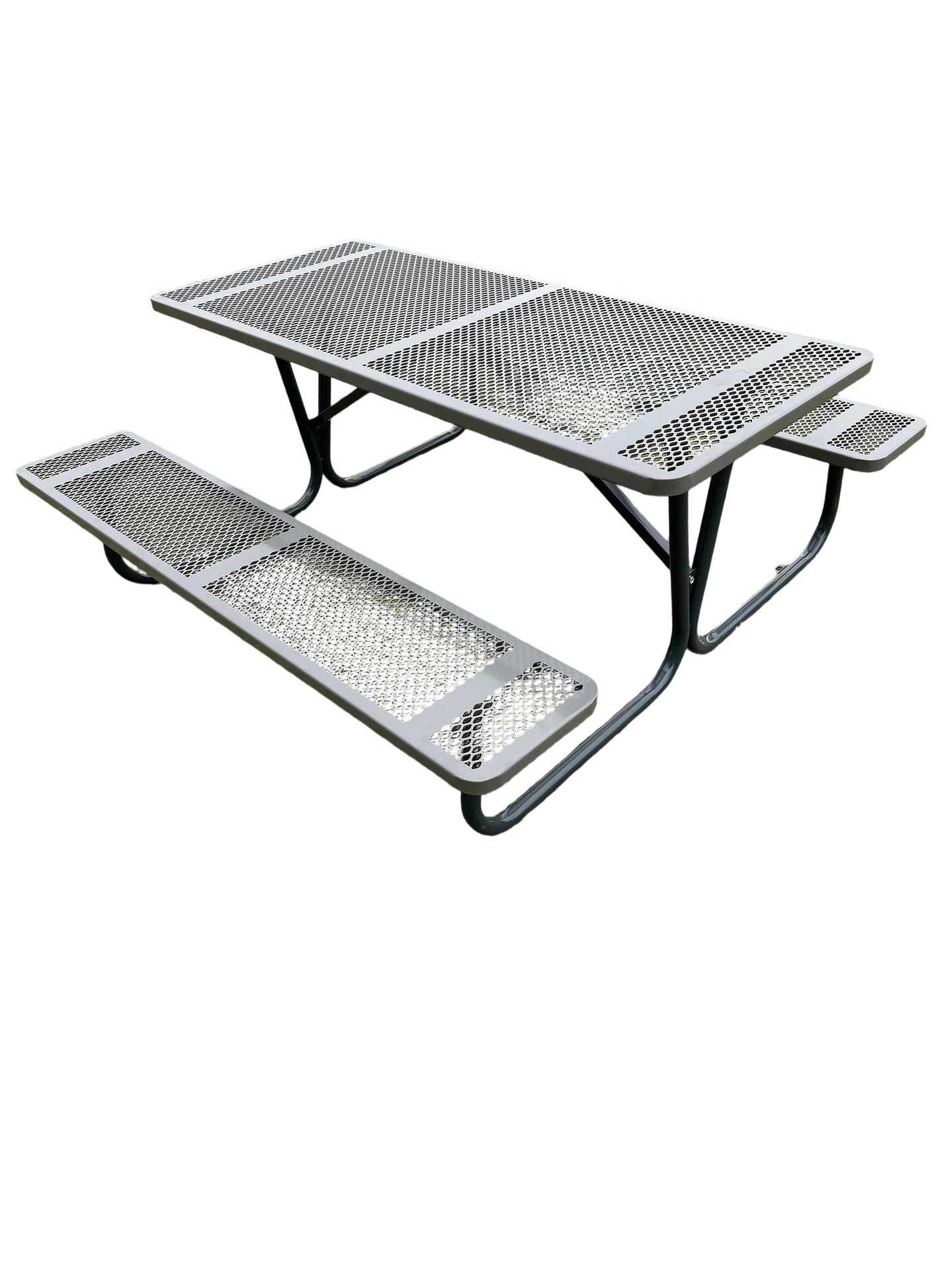 새로운 공원 직사각형 금속 좌석 야외 상업용 열에 담근 플라스틱 강철 식탁 야외 개방형 결합 테이블과 의자