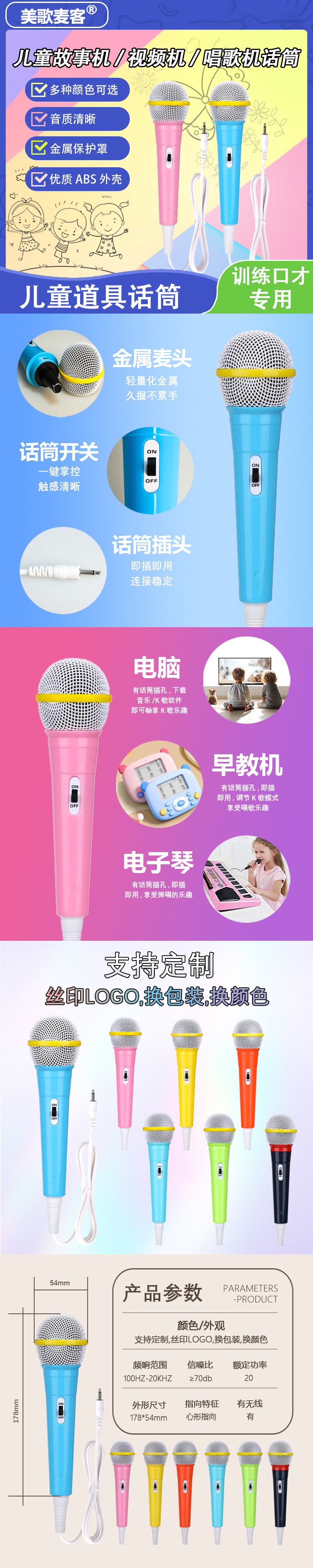 국경 간 맞춤형 어린이 장난감 컬러 마이크 미니 초경량 유아 훈련 게임 마이크스토어 가기