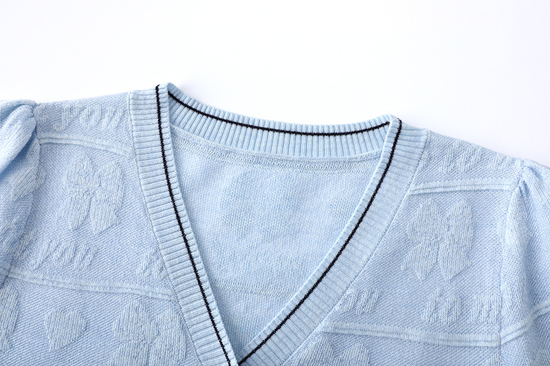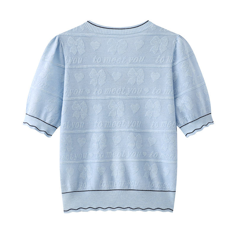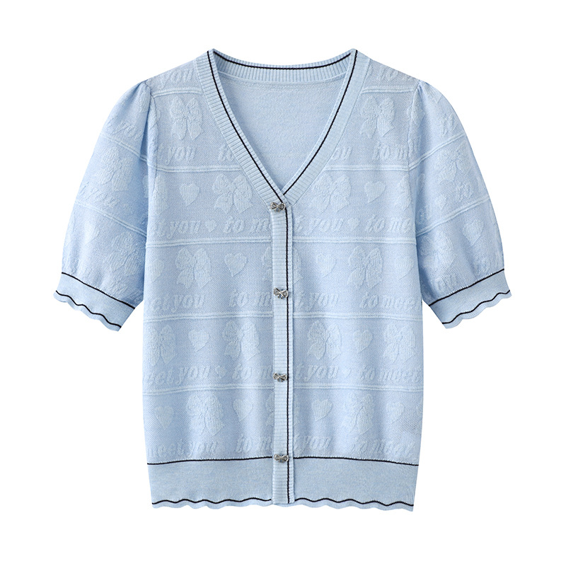 얇은 반팔 스웨터 여자 2025 년 여름 뉴 에이지 감소 티셔츠 웨이스트 V 넥 자카드 탑 M85S16830