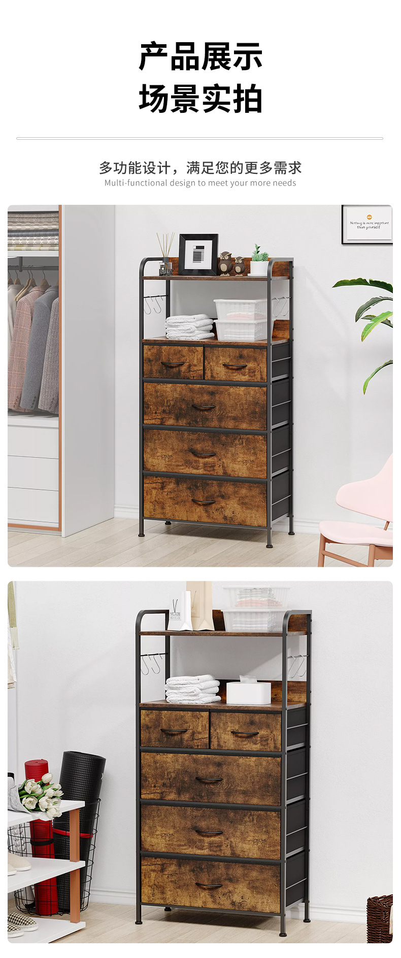 맞춤형 패브릭 서랍 보관 캐비닛 부직포 서랍 캐비닛 보관 랙 거실 바닥 스탠딩 벽 보관 캐비닛스토어 가기