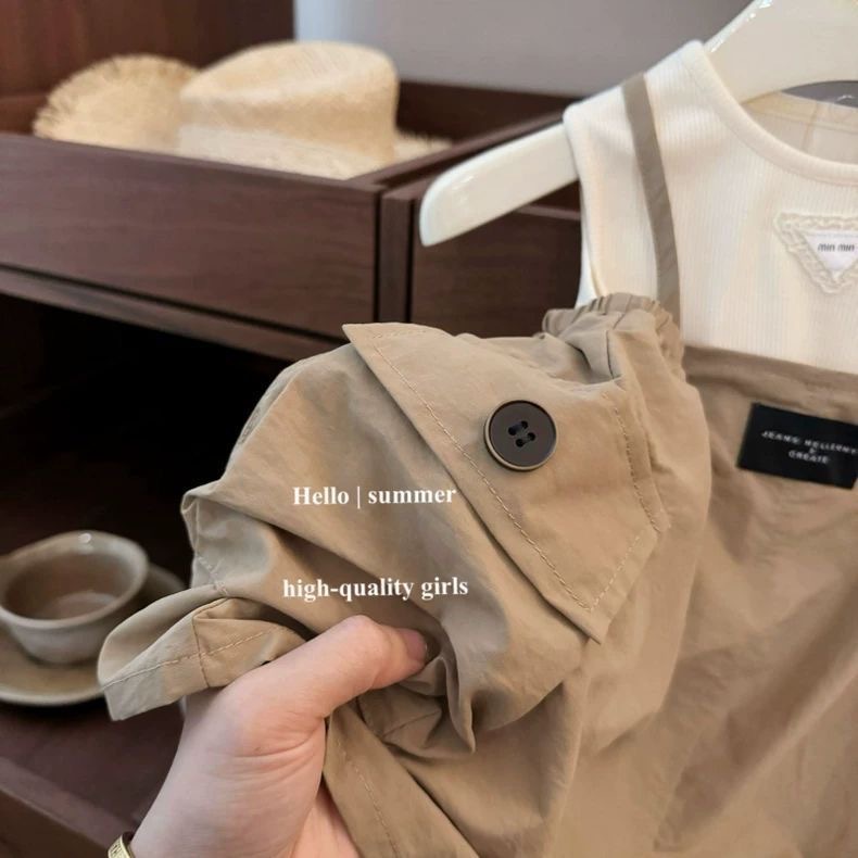 라임 한국 아동복 2025 여름 달콤한 튤립 조끼 니트 원피스 한국식 아기 세트 트렌디