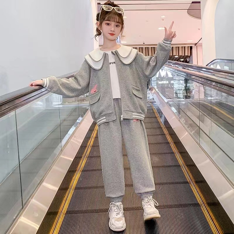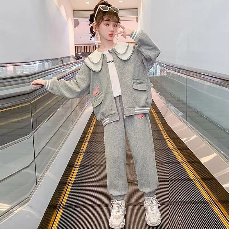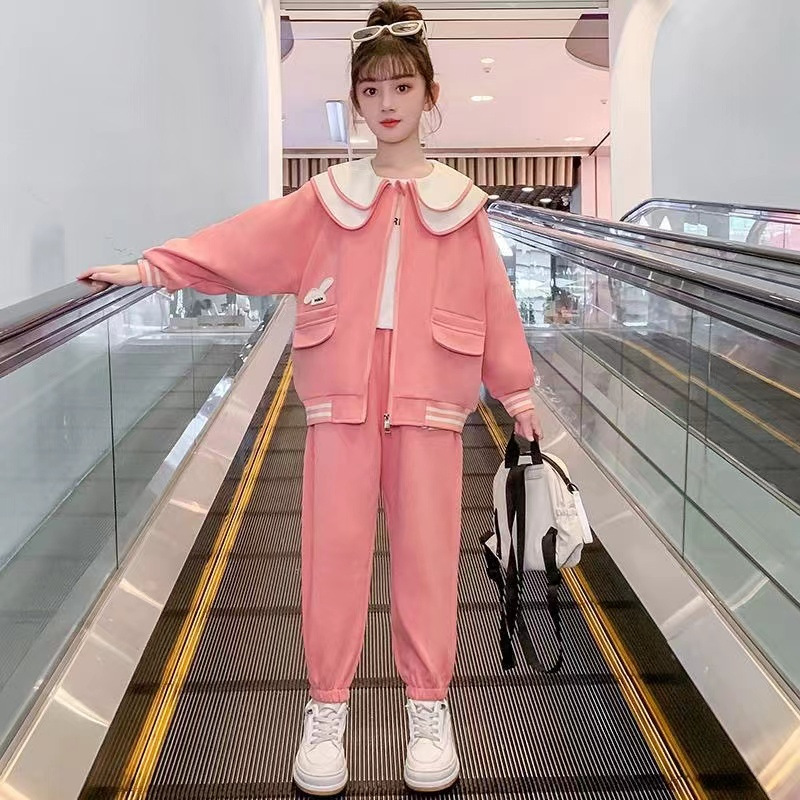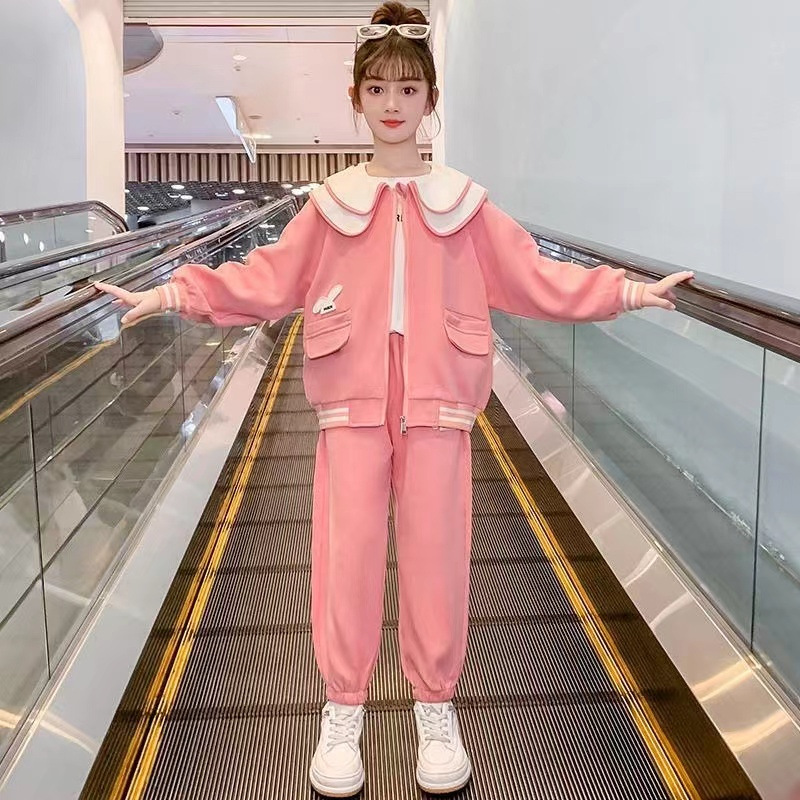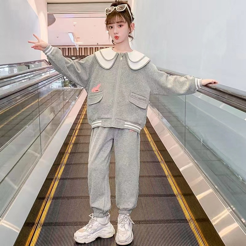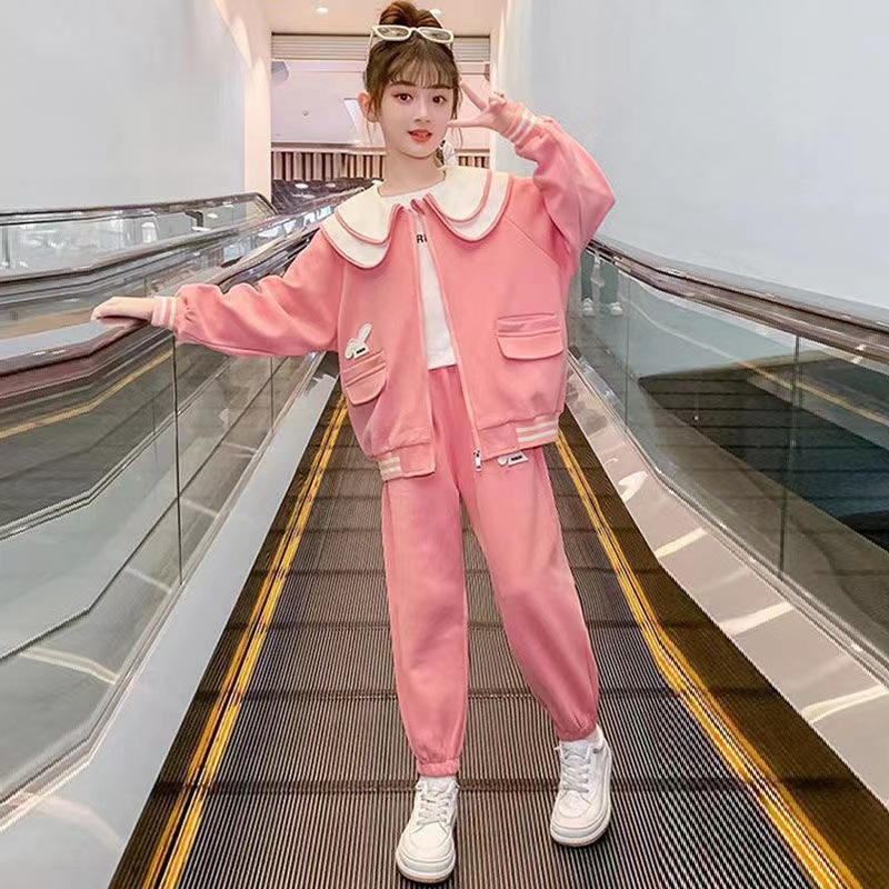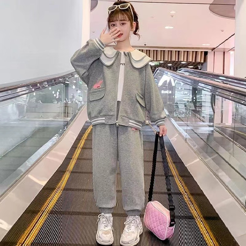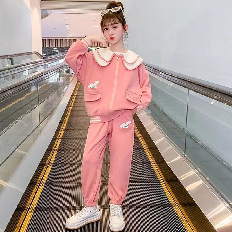 소녀 가을 세트 2024 새로운 어린이 서양식 유행 스포츠 투피스 인터넷 기념 봄과 가을 원피스스토어 가기