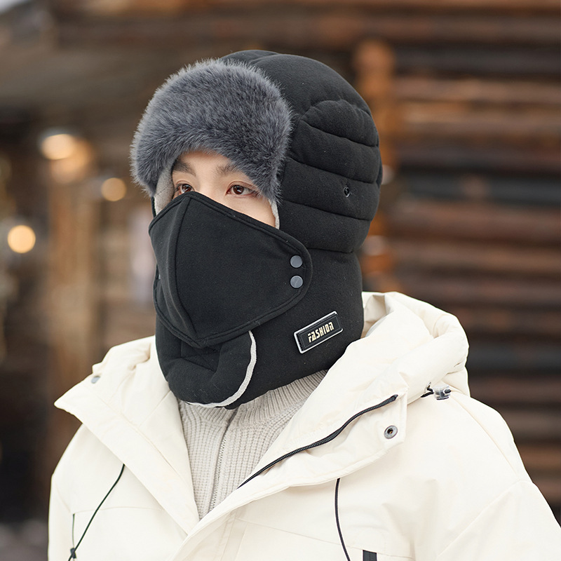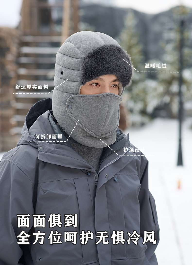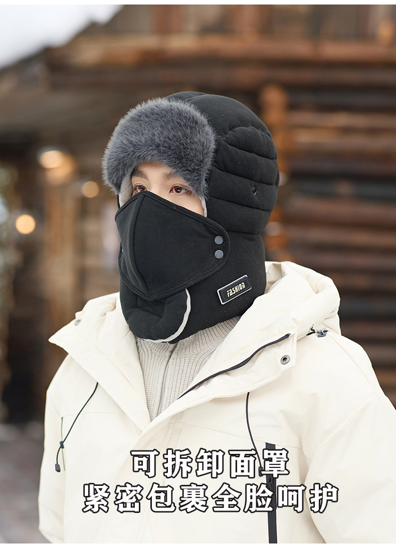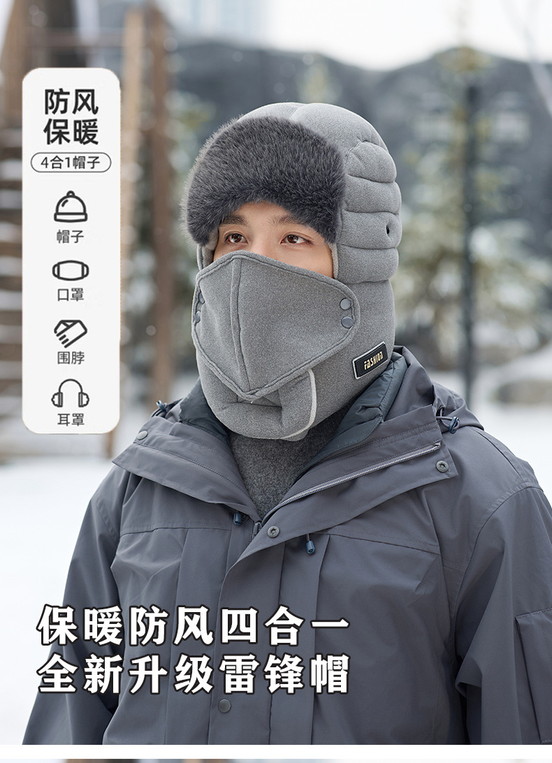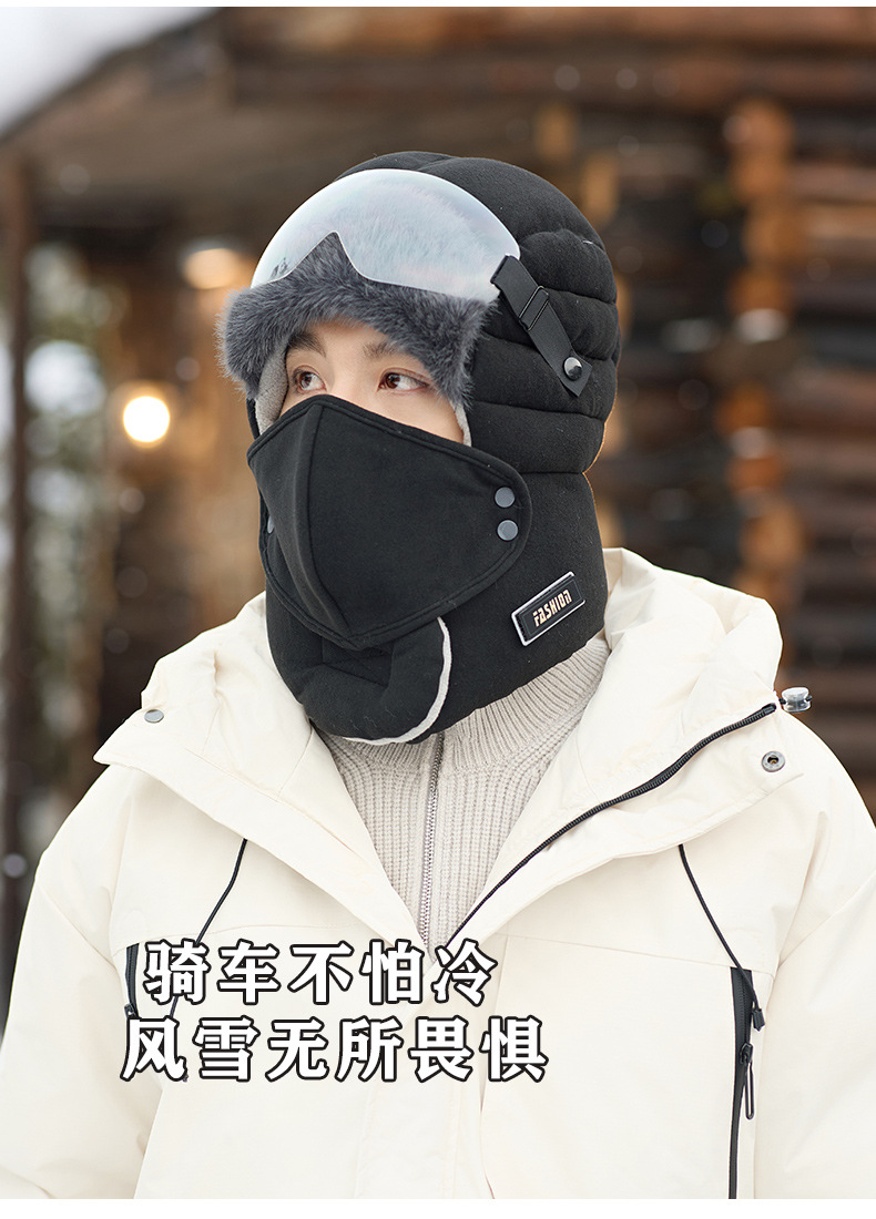 2024 새로운 남자 겨울 Lei Feng Hat 마스크 원피스 코튼 모자 기모 두꺼운 사이클링 전기 자동차 Baotou 모자