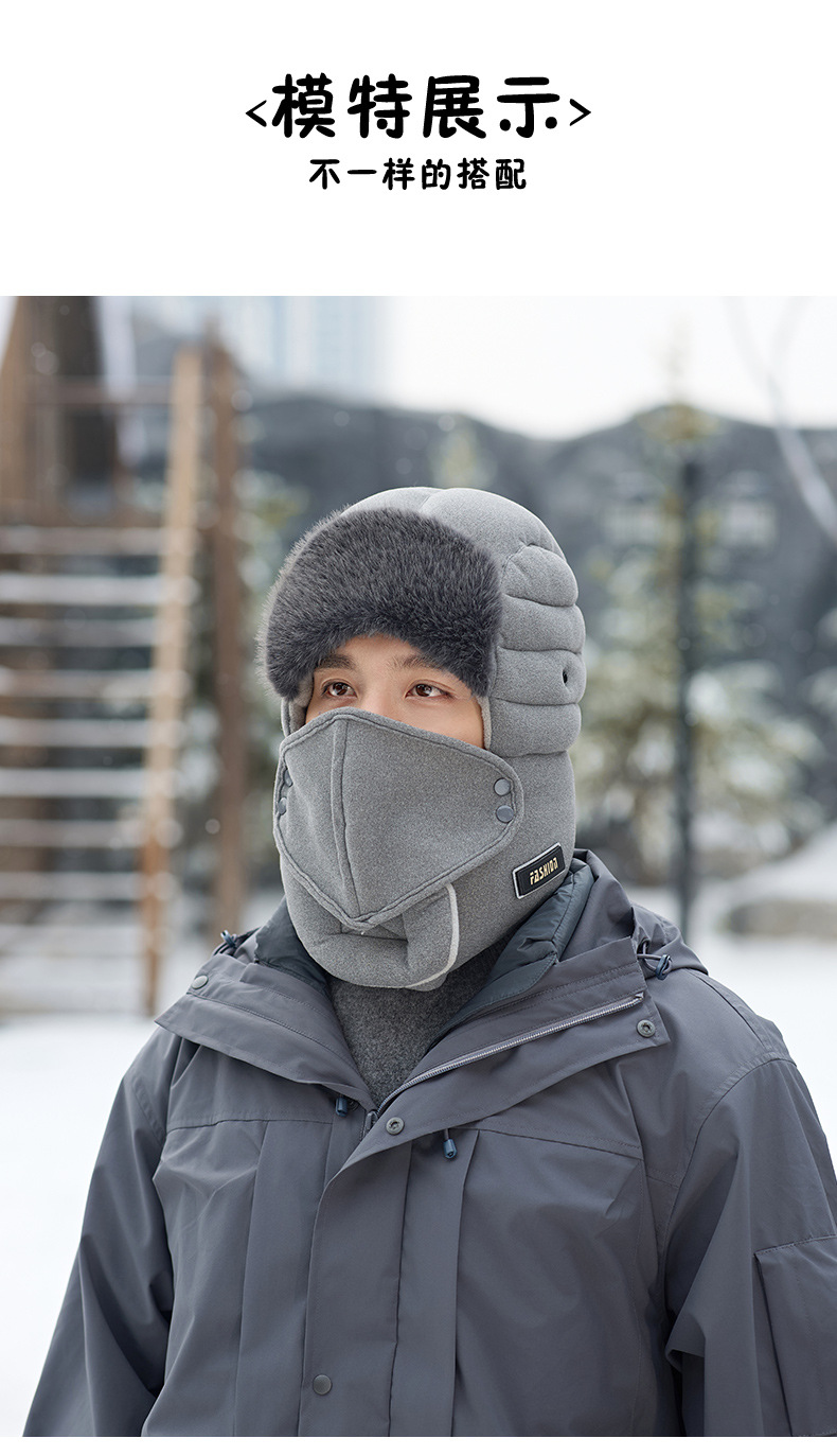 2024 새로운 남자 겨울 Lei Feng Hat 마스크 원피스 코튼 모자 기모 두꺼운 사이클링 전기 자동차 Baotou 모자스토어 가기