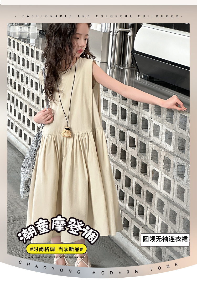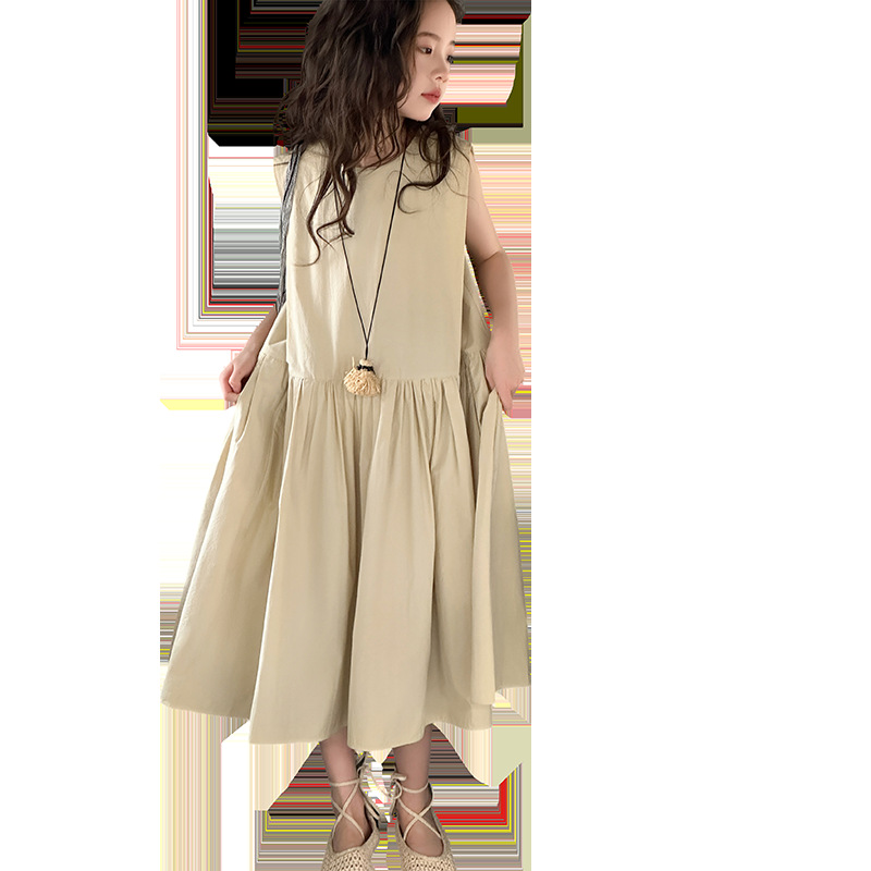 여자 드레스 여름 2025 새로운 스타일 어린이 유행 여름 드레스 여자 순수 코튼 민소매 조끼 스커트