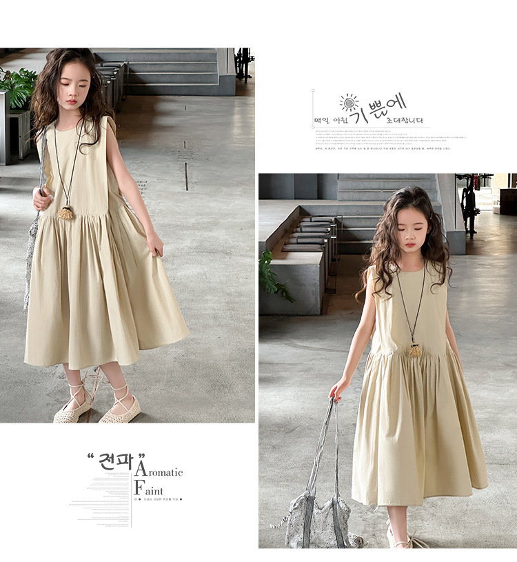 여자 드레스 여름 2025 새로운 스타일 어린이 유행 여름 드레스 여자 순수 코튼 민소매 조끼 스커트스토어 가기