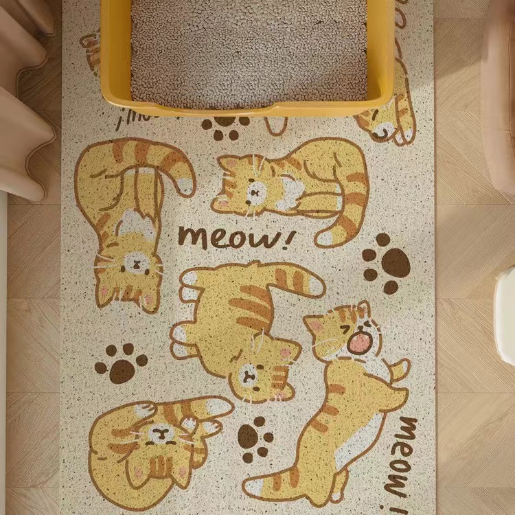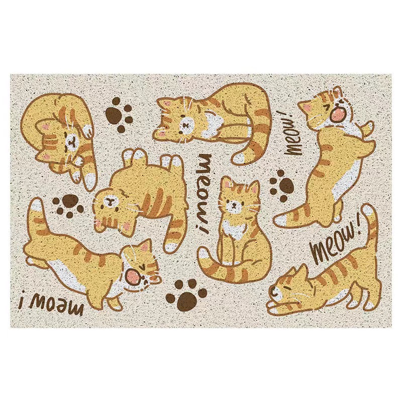 만화 고양이 쓰레기통 와이어 링 바닥 매트, 문 입구 얼룩 방지, 절단 가능, 미끄럼 방지 바닥 매트, 가정용 애완 동물 물 튀김 방지 바닥 매트