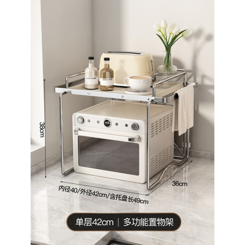 • 실버 화이트 [대형 - 단층] ins 스타일 전자레인지 랙