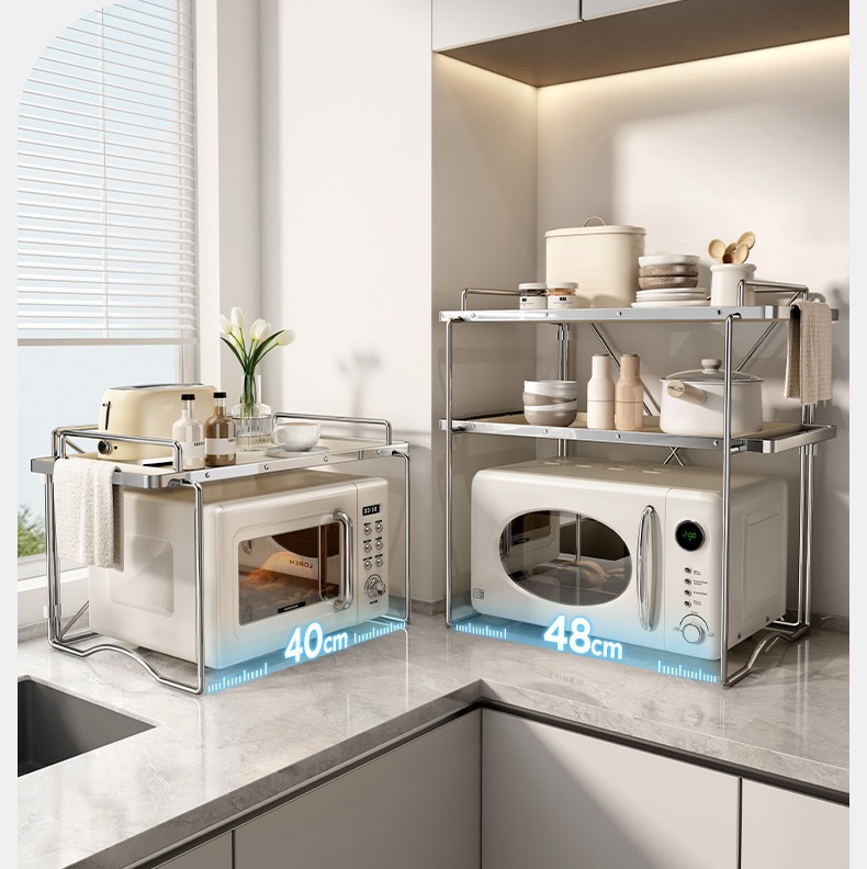 • 실버 화이트 [대형-더블 레이어] 인스 스타일 전자레인지 랙