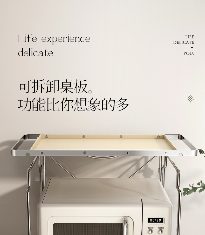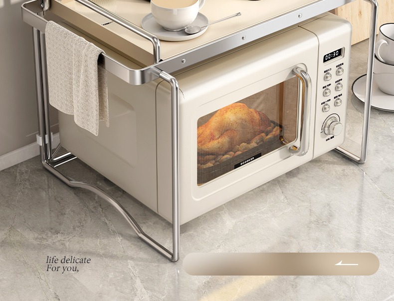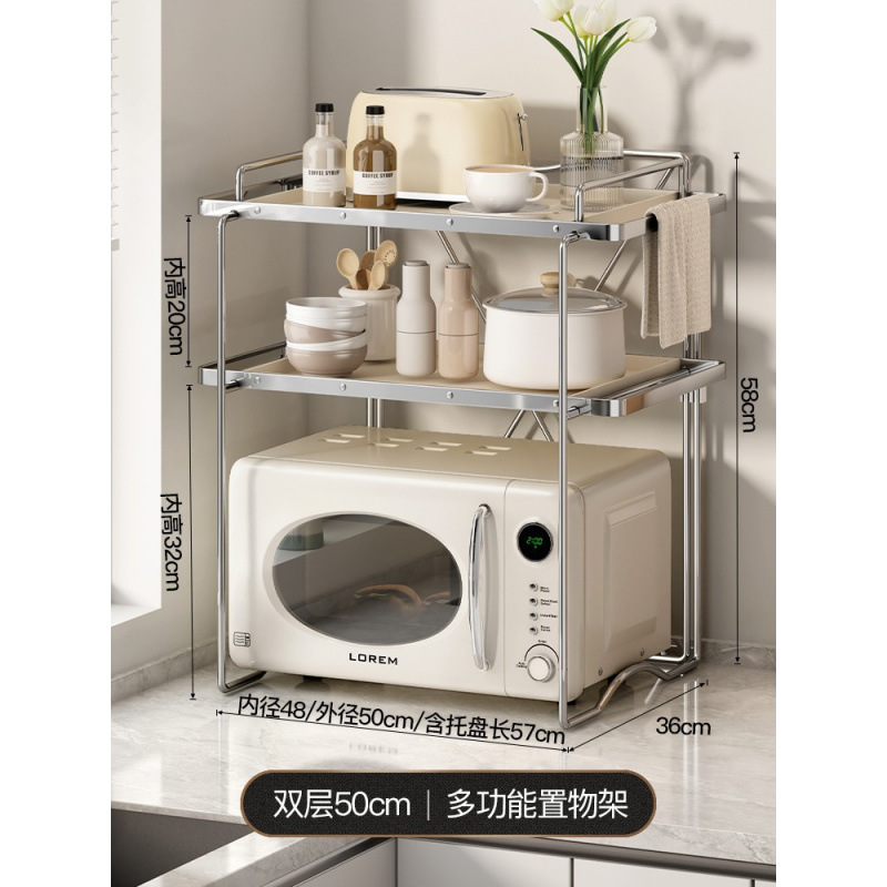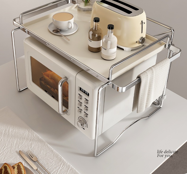 • 실버 화이트 [대형 - 더블 레이어] 인 스타일 전자레인지 랙