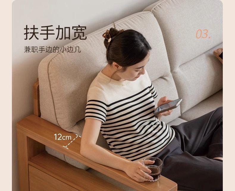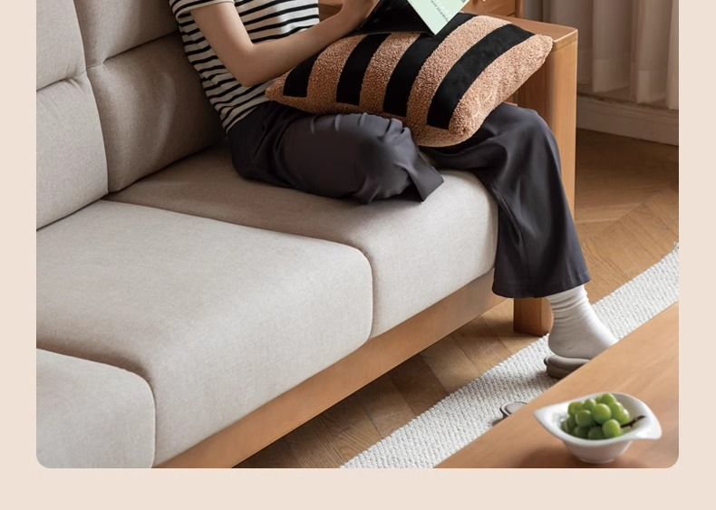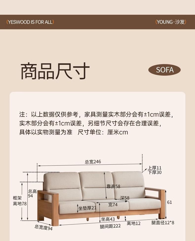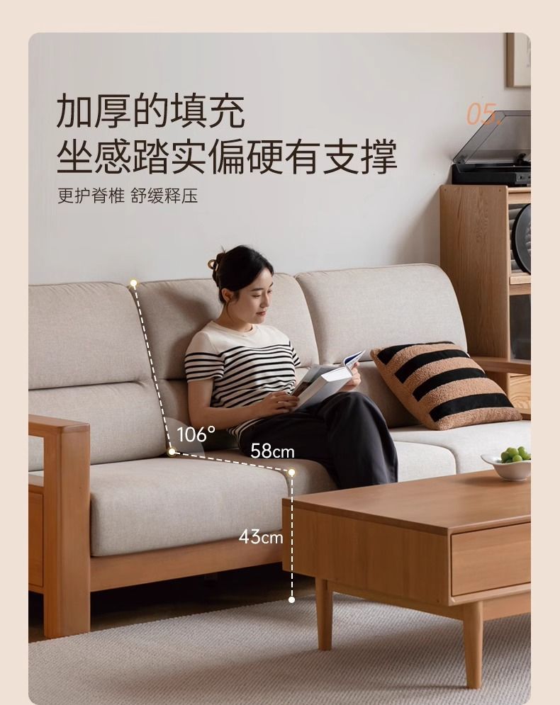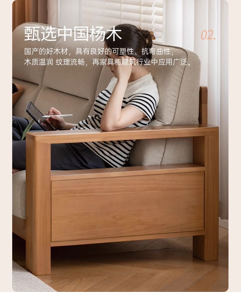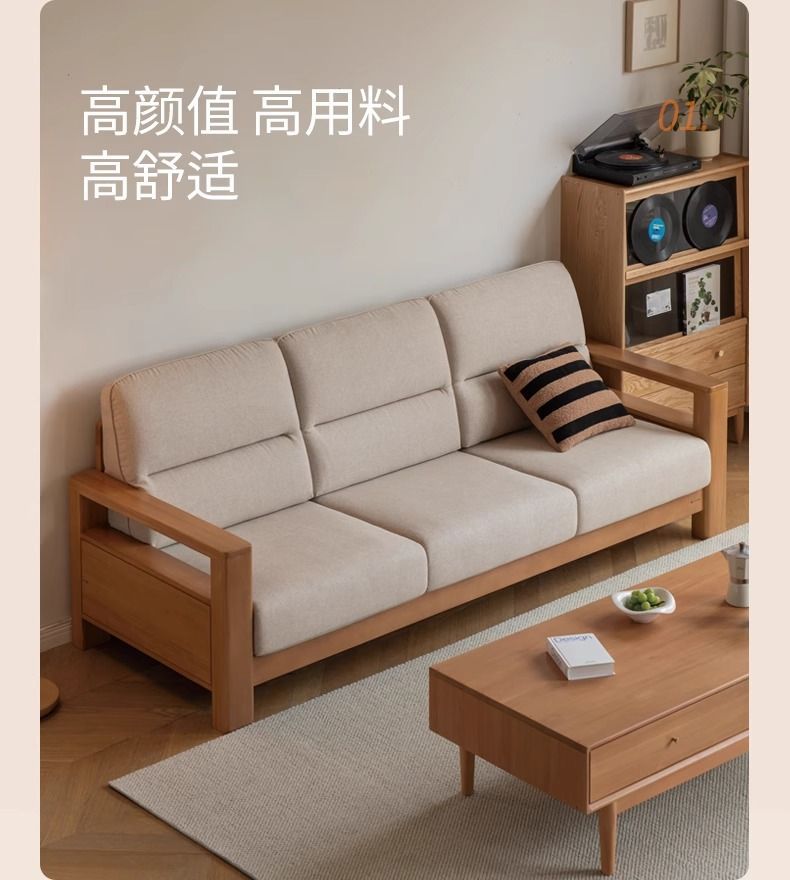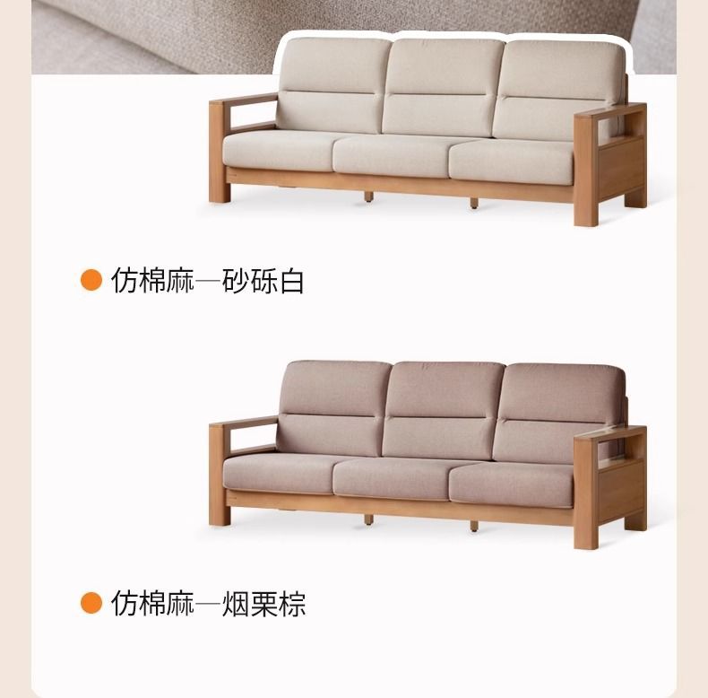 모든 단단한 나무 소파 새로운 중국 스타일의 포플러 패브릭 소파 간단한 대형 거실 통나무 가구스토어 가기