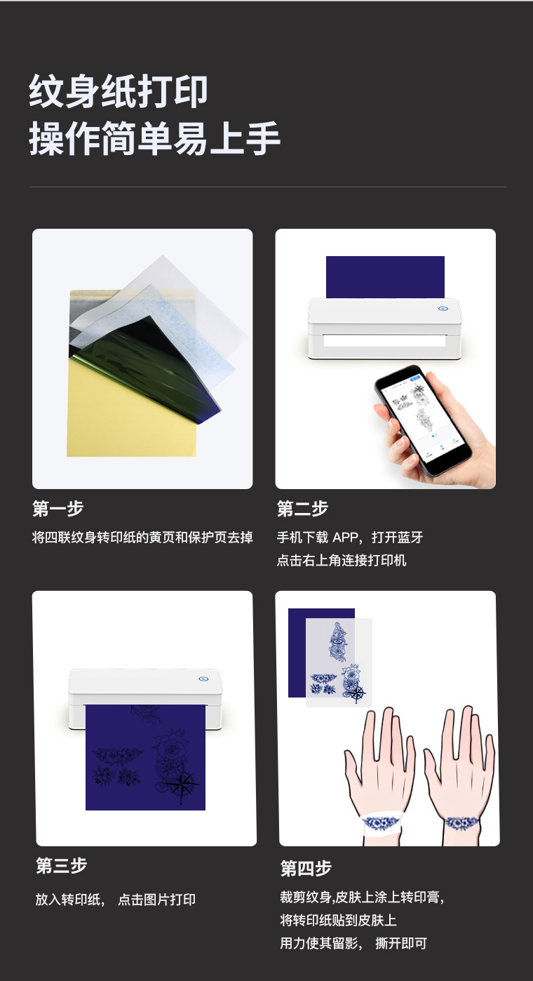 便携无墨打印机家庭办公A4热敏打印机学习机纹身打印机文字图像