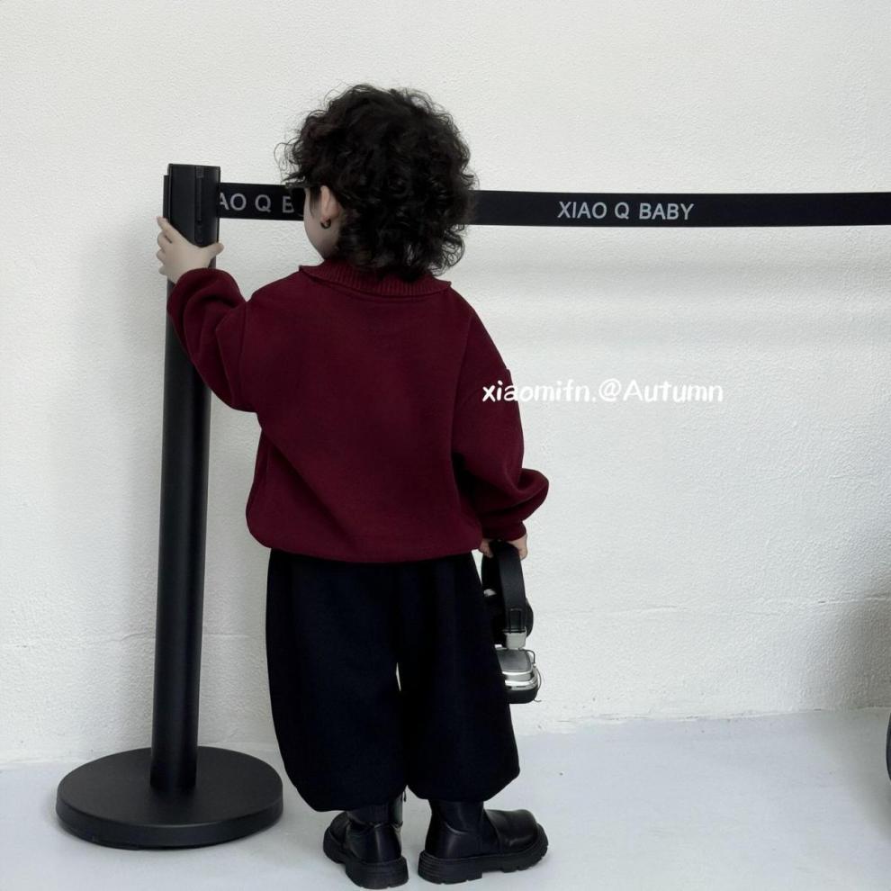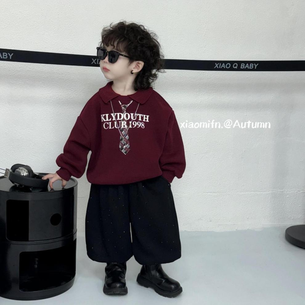 Douyin 인기 POLO 스웨트 셔츠 한국 스타일 소년과 소녀 2025 가을, 겨울 패션 멋진 벨벳 외국 스타일 아동복 정장스토어 가기