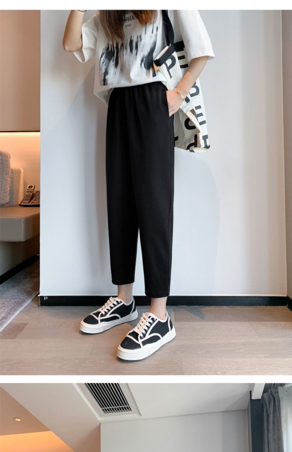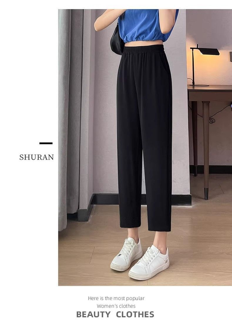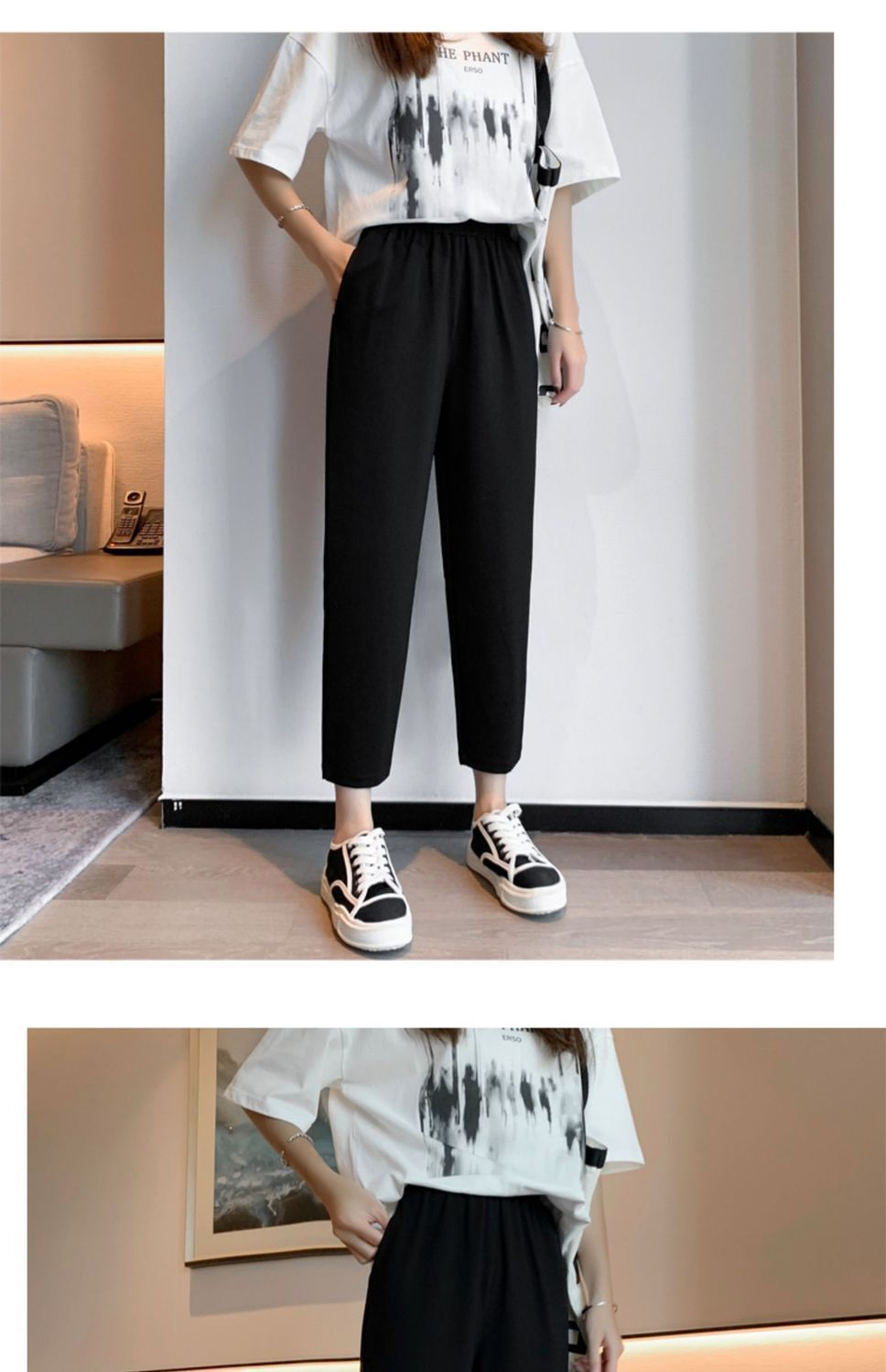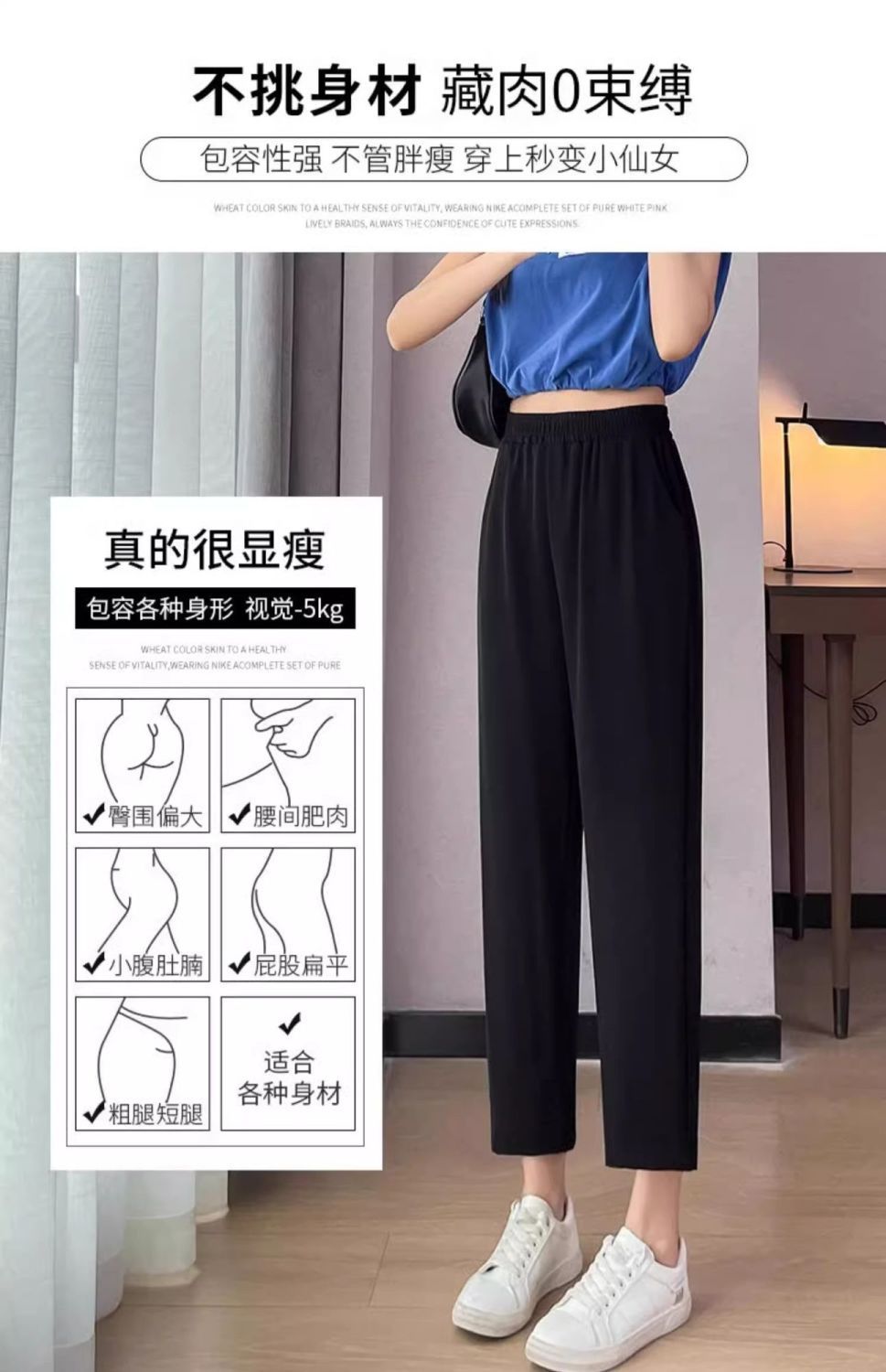 할란 바지 여성용 여름 얇은 높은 허리 슬리밍 통통녀 배 자른 플러스 사이즈 느슨한 당근 바지스토어 가기