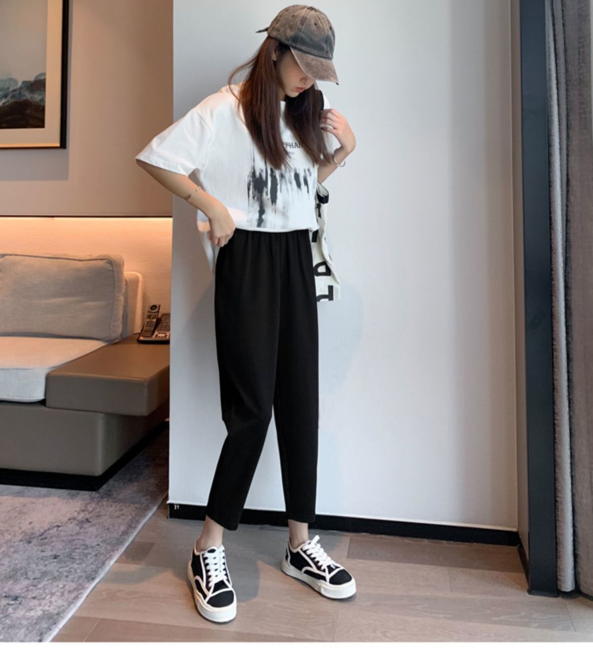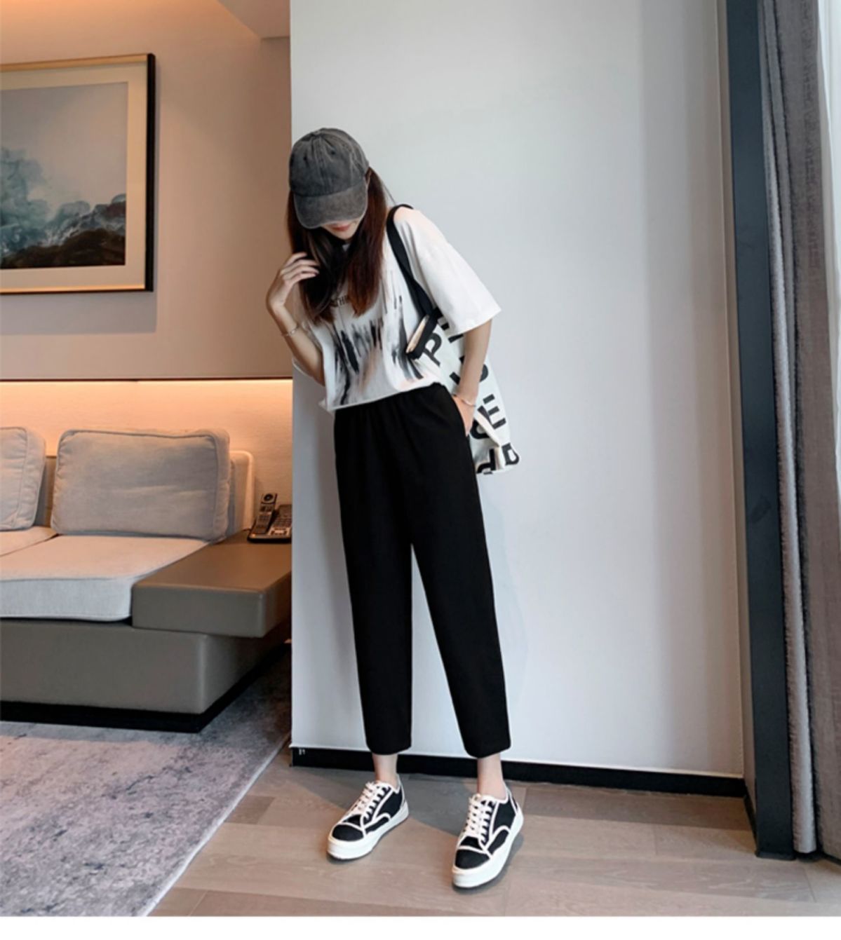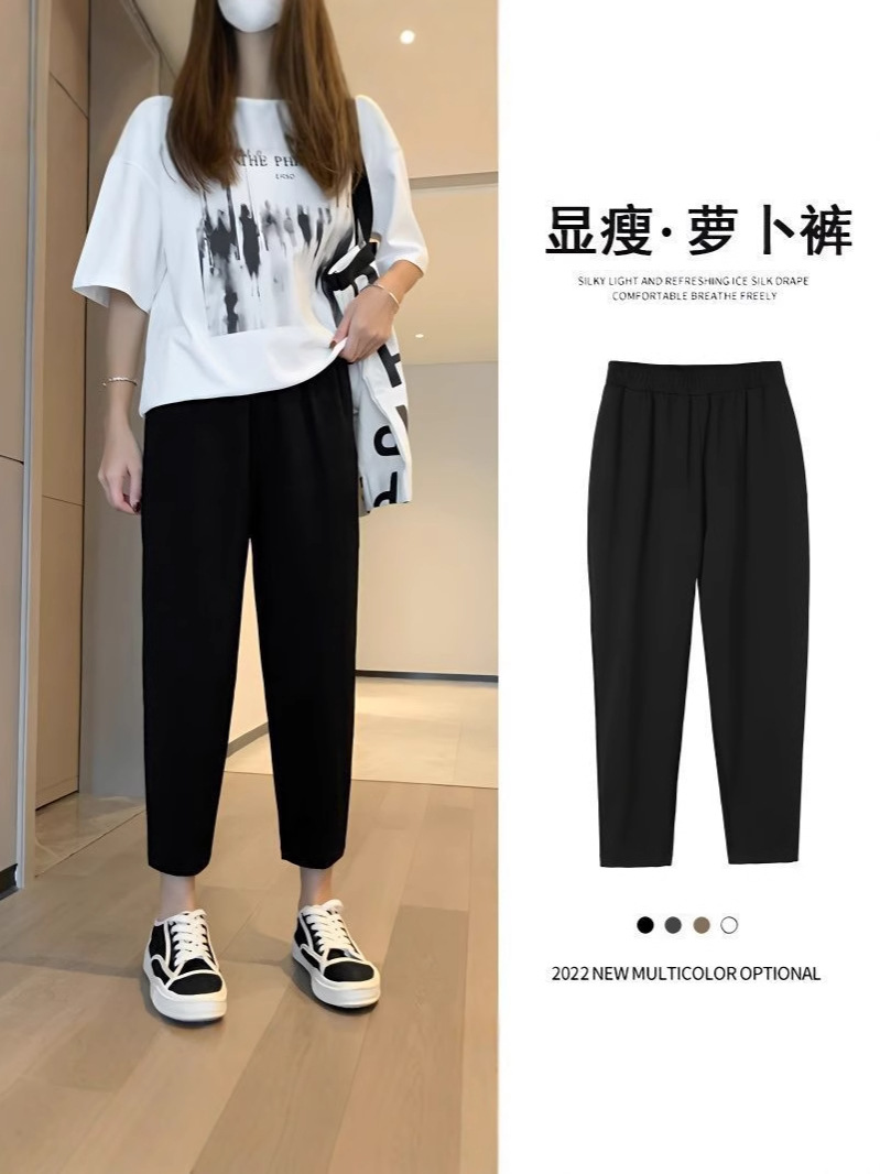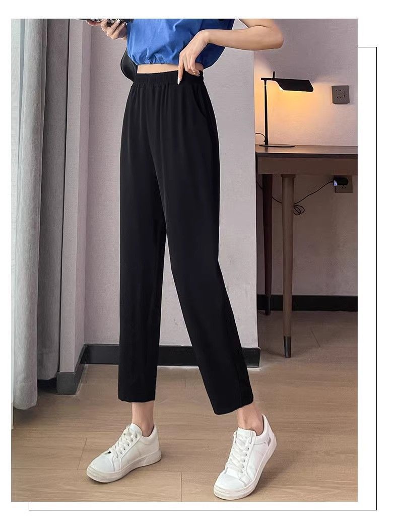 할란 바지 여성용 여름 얇은 높은 허리 슬리밍 통통녀 배 자른 플러스 사이즈 느슨한 당근 바지스토어 가기