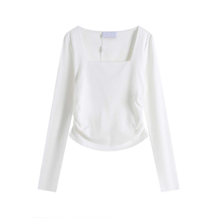 화이트 스퀘어 칼라베이스 셔츠 여성 내부 2024 새로운 봄과 가을 짧은 긴팔 잘린 트렌디 탑