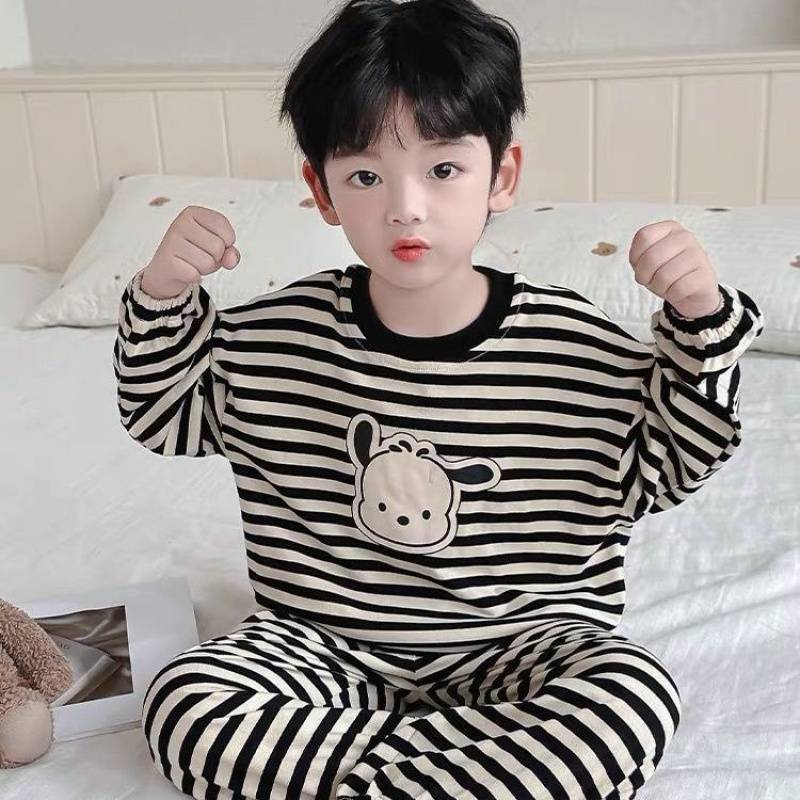 봄과 가을 새로운 어린이 잠옷 만화 소년 캐주얼 느슨한 긴팔 바지 스플릿 홈웨어 세트