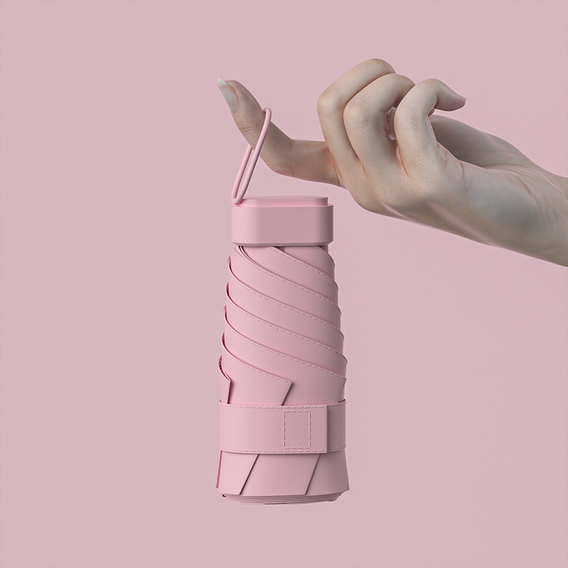 • 사쿠라 파우더 + 캡슐 가방 [Six Bones 50% off 캡슐 우산 컴팩트하고 휴대 가능한 UPF50+ 전문 자외선 차단]