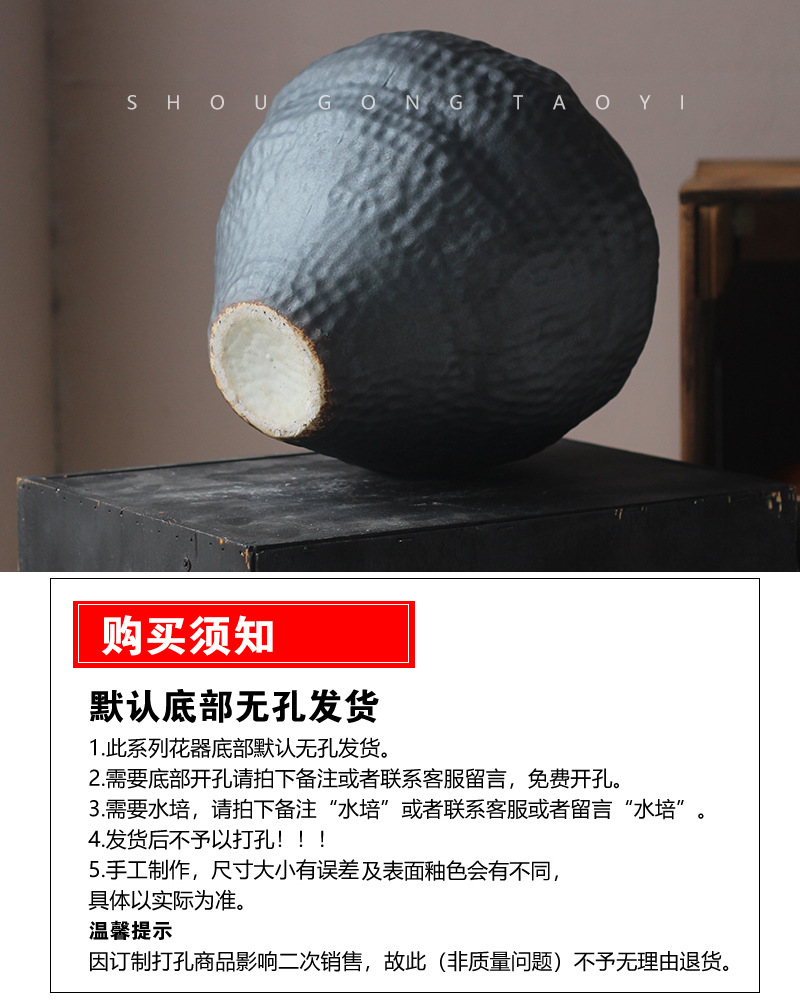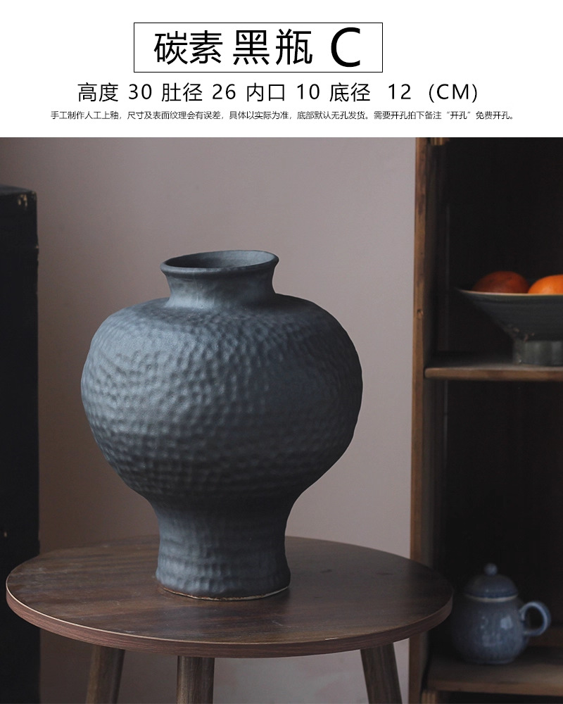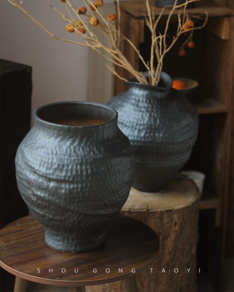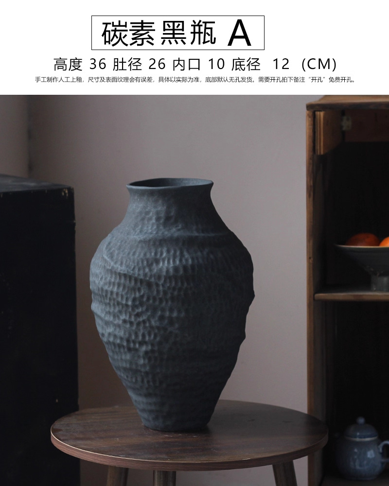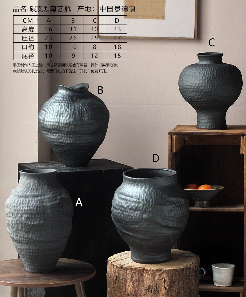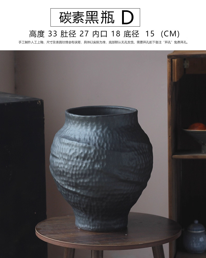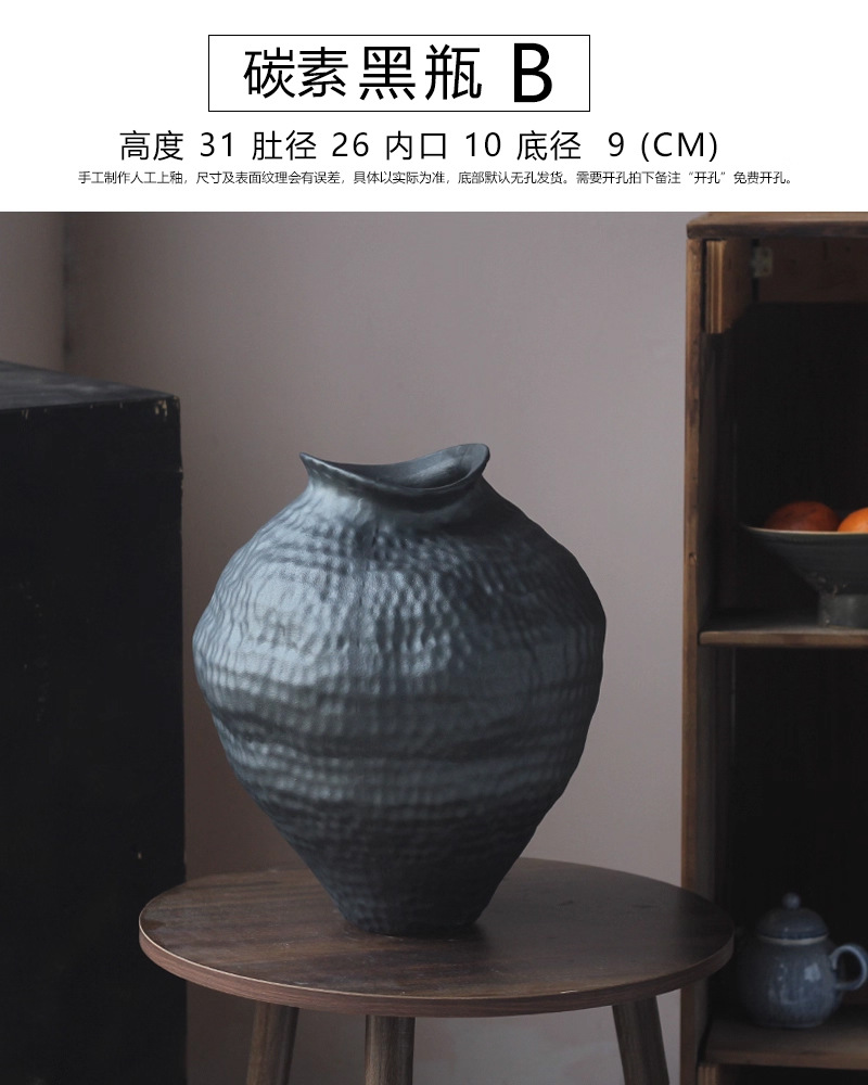 경덕진 도자기 꽃병 와비사비 스타일 B&B 장식 수제 도자기 냄비 거실 꽃꽂이 말린 꽃 거친 도자기 꽃 용기스토어 가기
