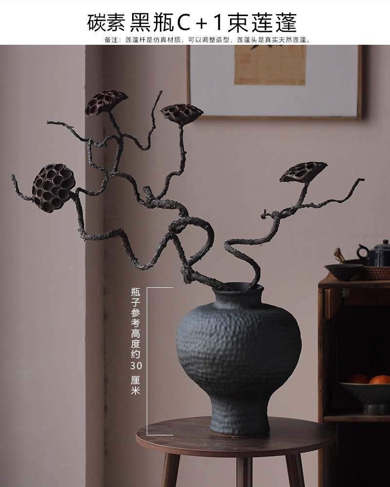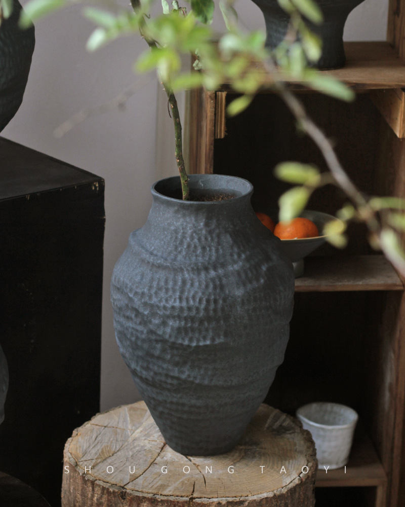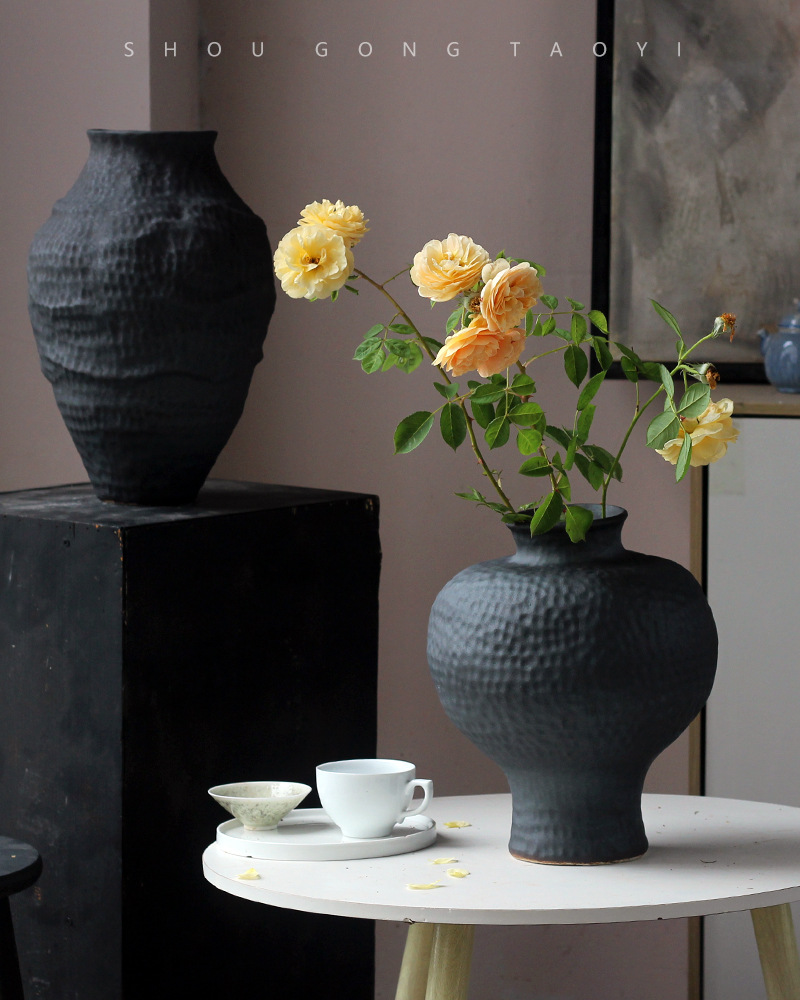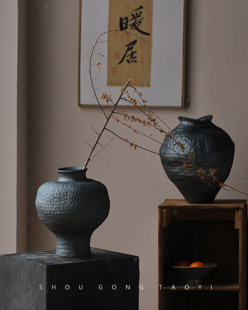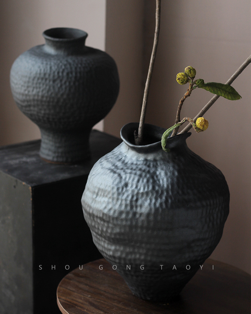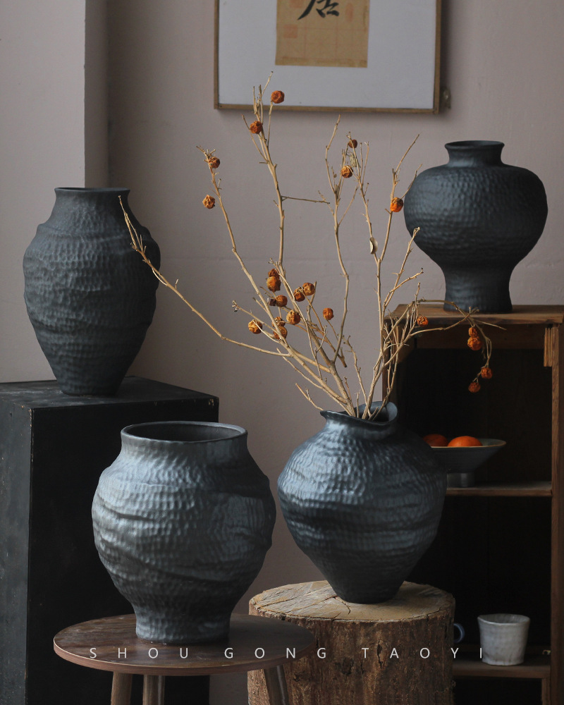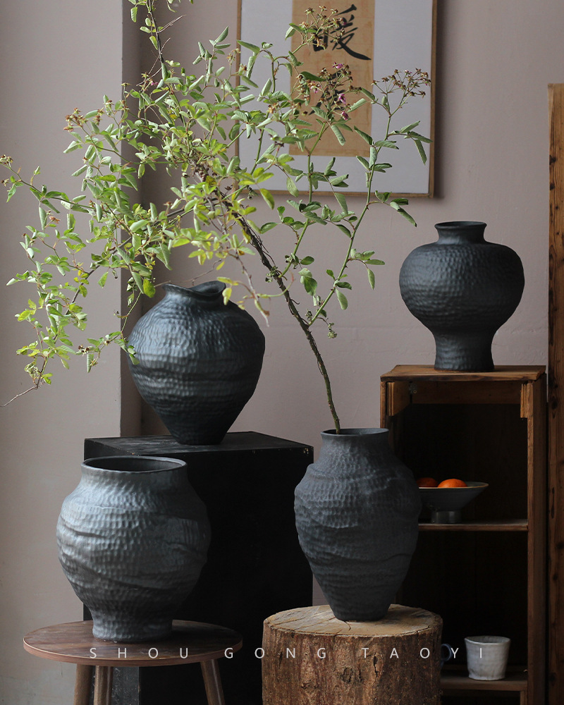 경덕진 도자기 꽃병 와비사비 스타일 B&B 장식 수제 도자기 냄비 거실 꽃꽂이 말린 꽃 거친 도자기 꽃 용기스토어 가기