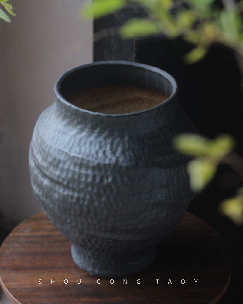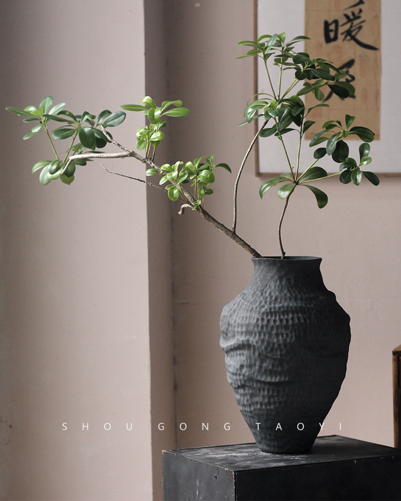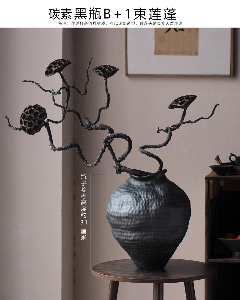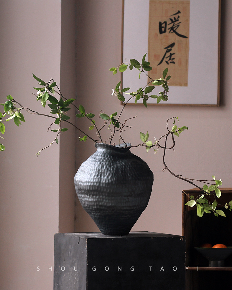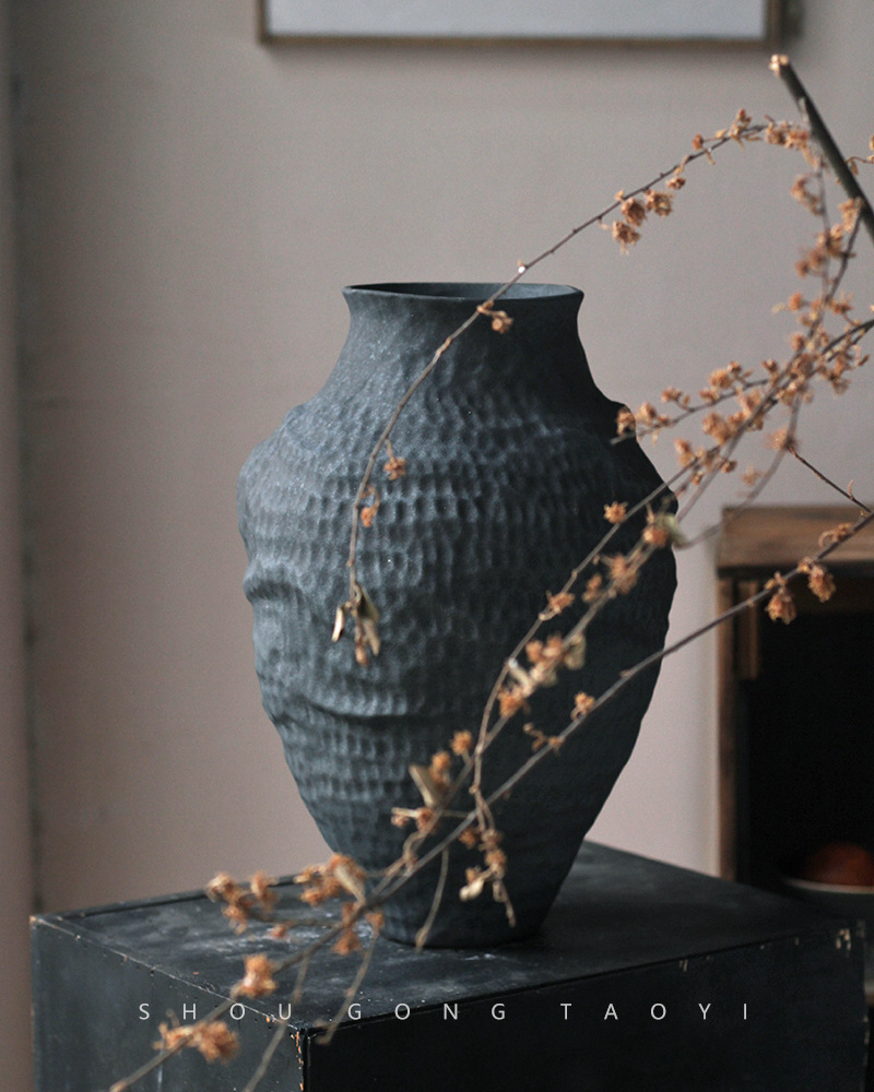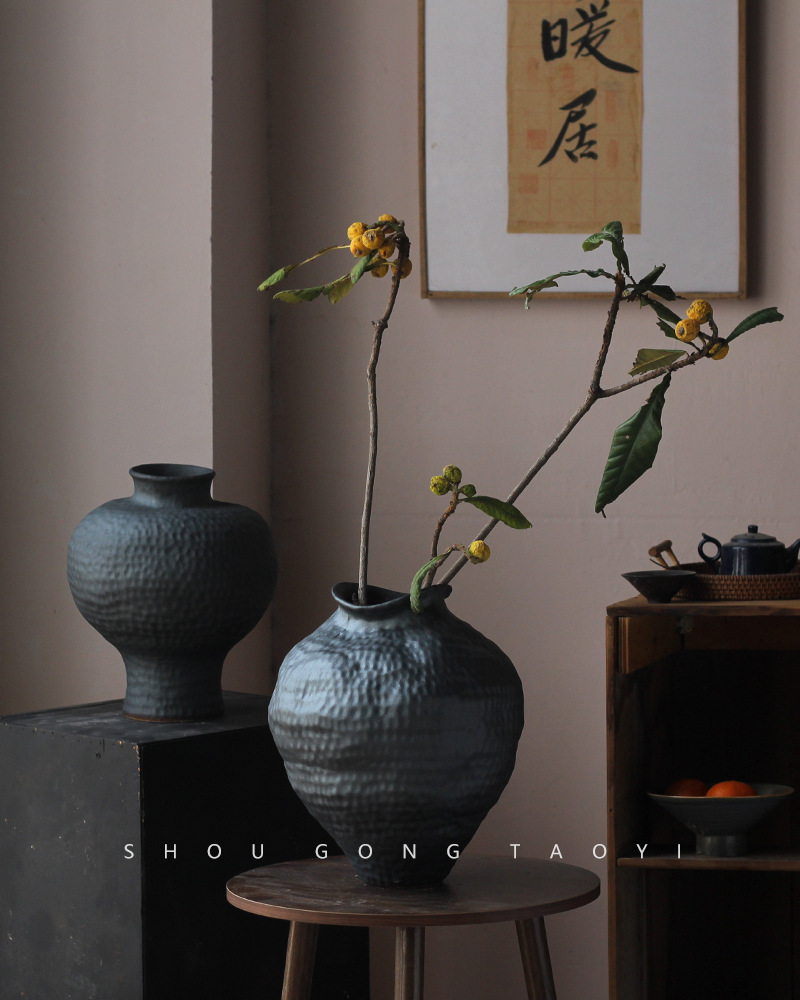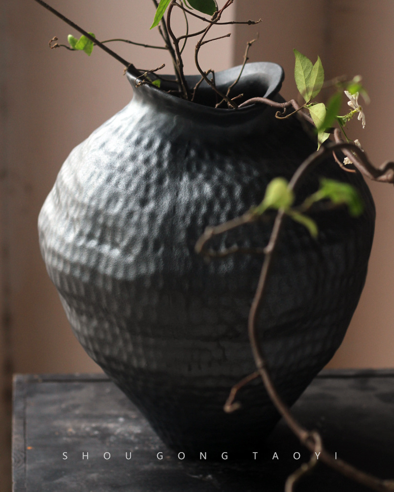 경덕진 도자기 꽃병 와비사비 스타일 B&B 장식 수제 도자기 냄비 거실 꽃꽂이 말린 꽃 거친 도자기 꽃 용기스토어 가기