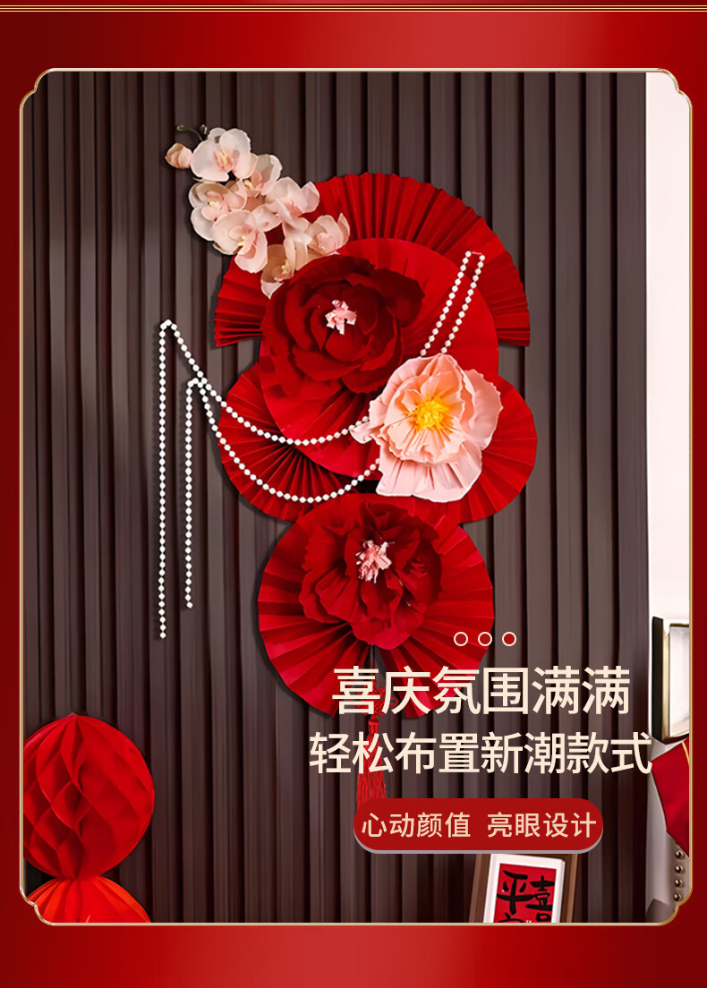 • 종이 부채 꽃 배경 벽 장식 세트 E