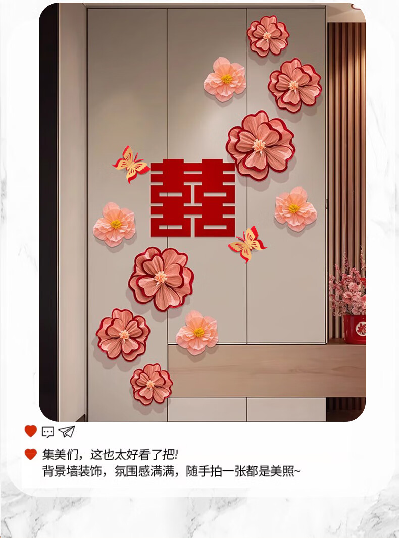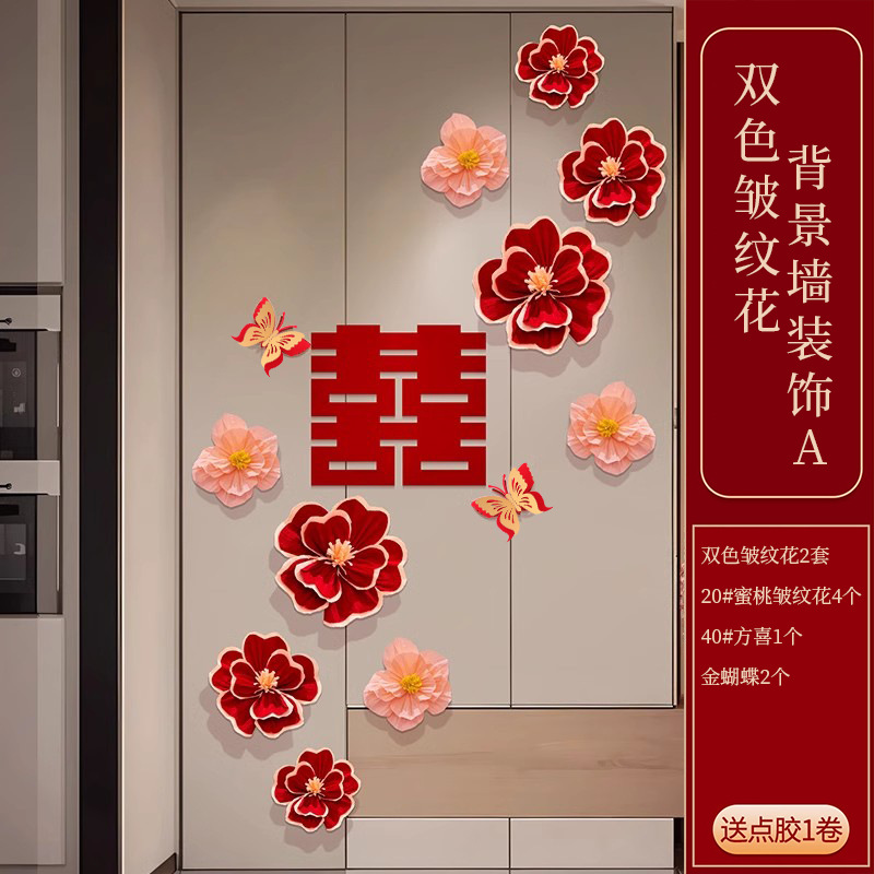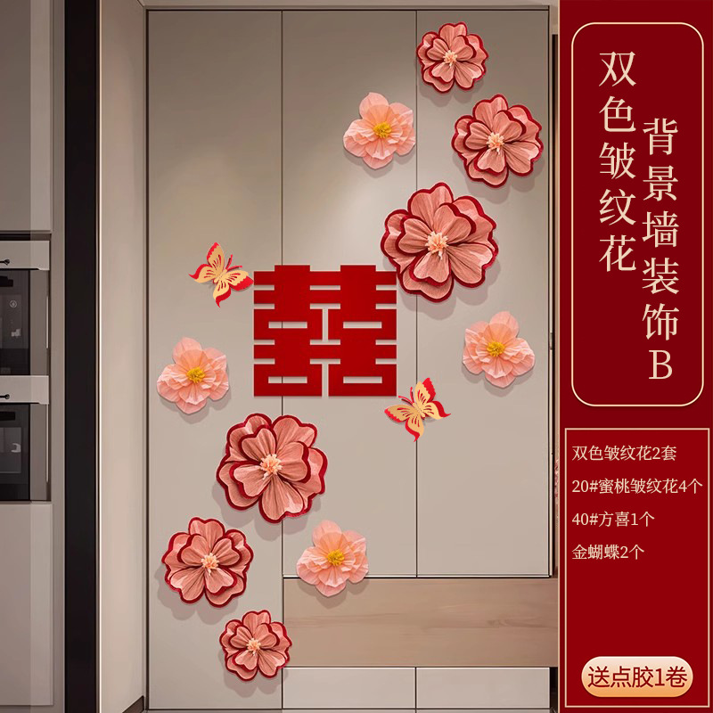 웨딩 룸 장식 주름 종이 꽃 3 차원 크레이프 종이 꽃 웨딩 종이 팬 꽃 침대 옆 침실 배경 벽 장식