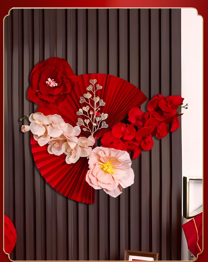 • 종이 부채 꽃 배경 벽 장식 세트 A