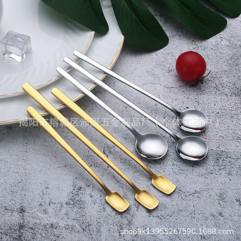 304 스테인레스 스틸 롱 핸들 믹싱 스푼 크리 에이 티브 커피 스푼 골든 디저트 선물 스푼 허니 스푼 한국 스퀘어 헤드 스푼스토어 가기