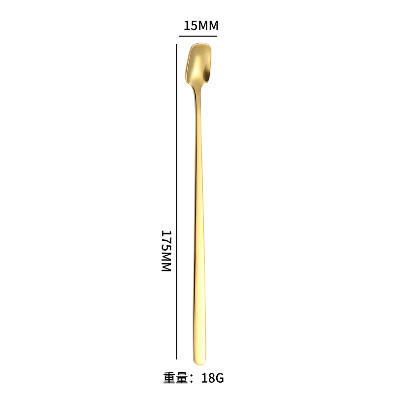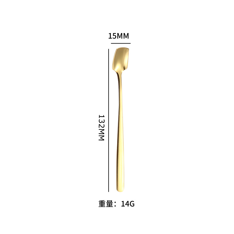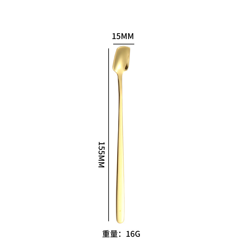 304 스테인레스 스틸 롱 핸들 믹싱 스푼 크리 에이 티브 커피 스푼 골든 디저트 선물 스푼 허니 스푼 한국 스퀘어 헤드 스푼