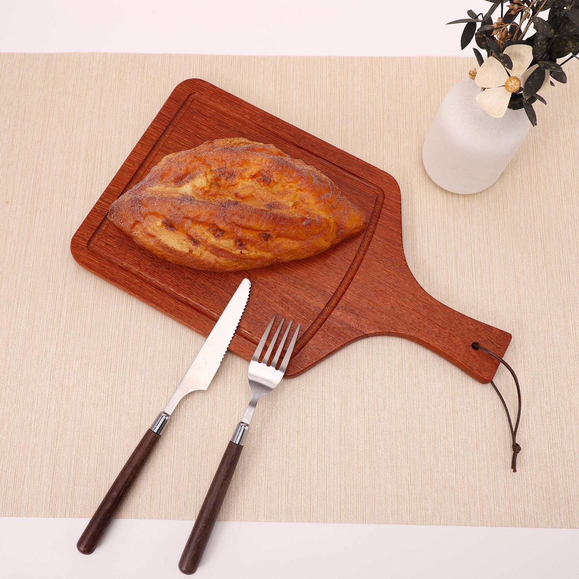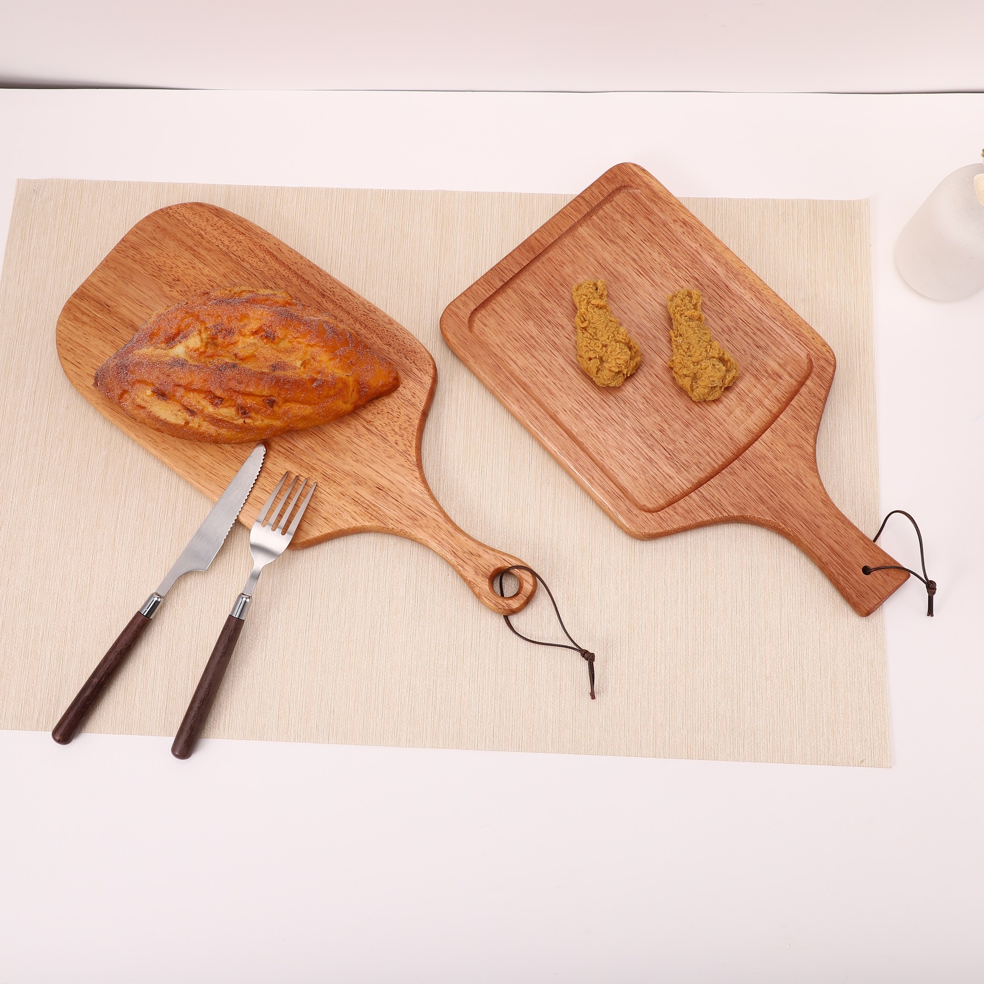 • 손잡이가 있는 사각형 건조 나무 스테이크 접시 35*20*1.2