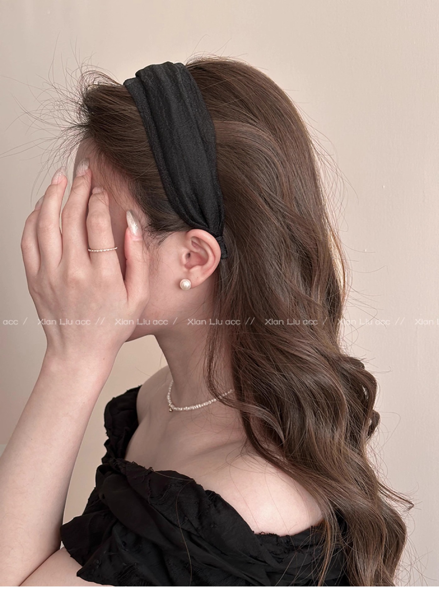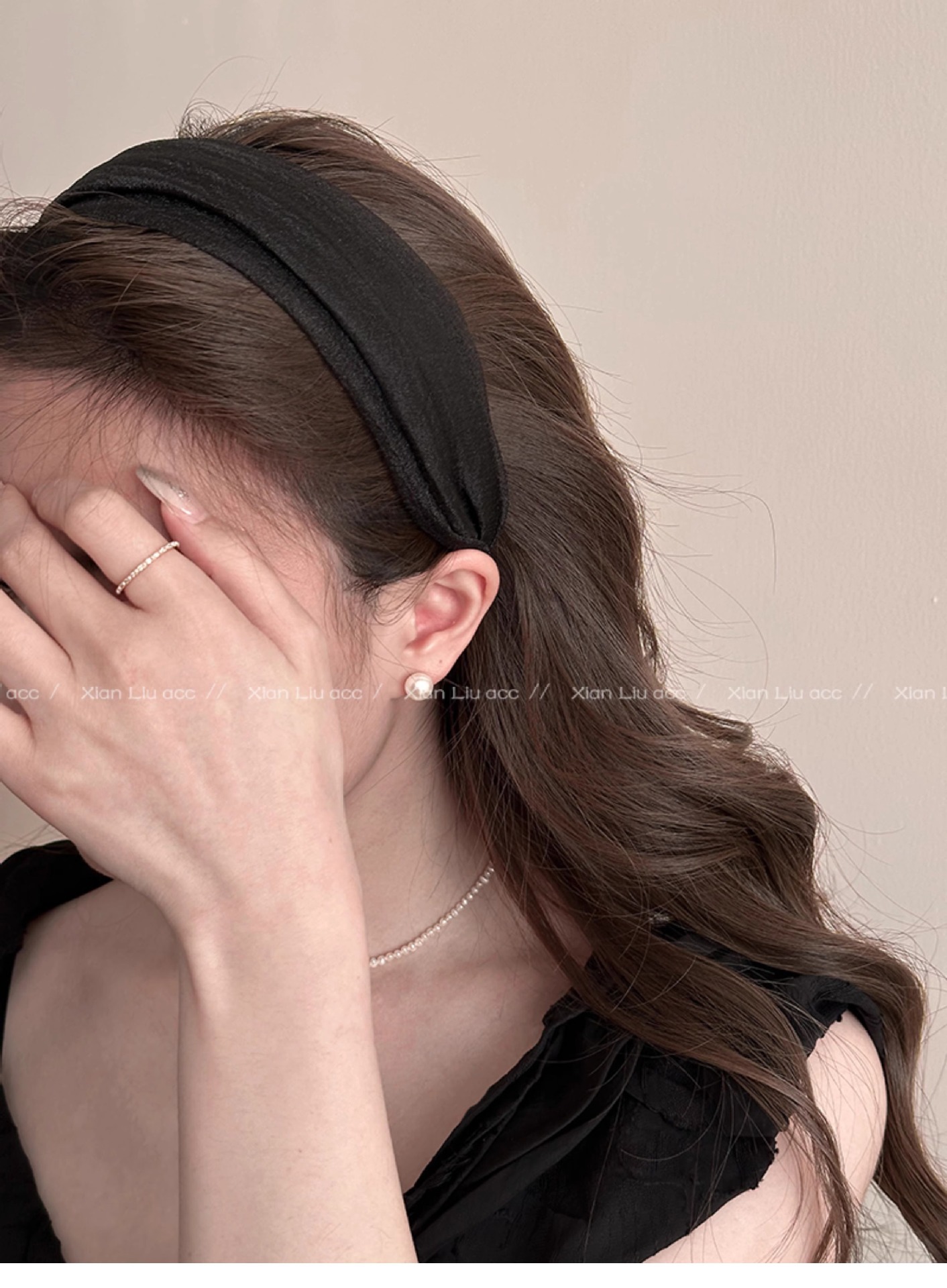 • 블랙 메쉬 주름 머리띠