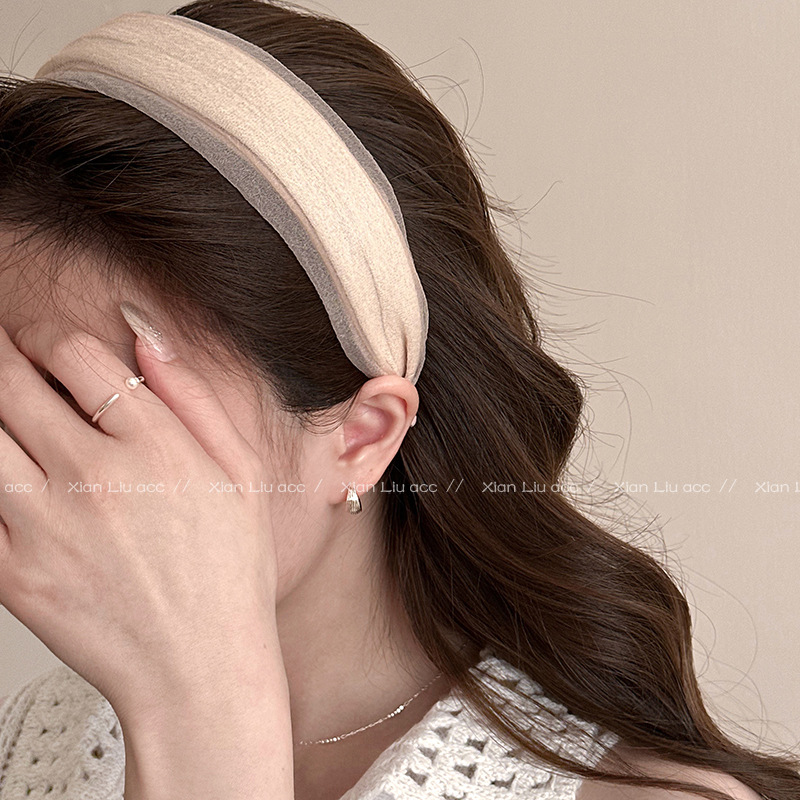 간단한 봄과 여름 실크 원사 챙이 넓은 헤어 후프 여성의 2025 새로운 높은 두개골 탑 머리띠 매일 올 매치 우아한 우아한 헤어 액세서리스토어 가기