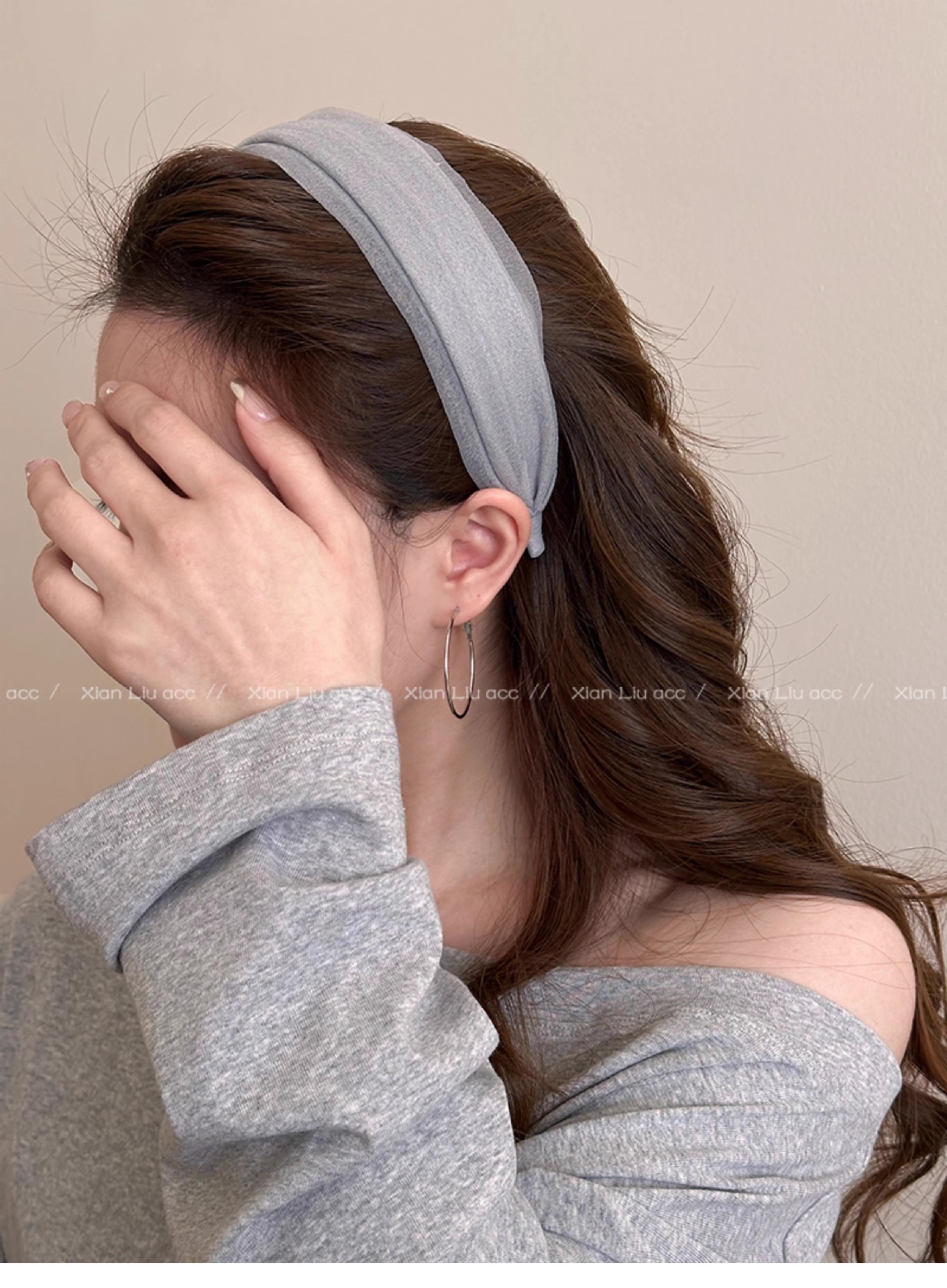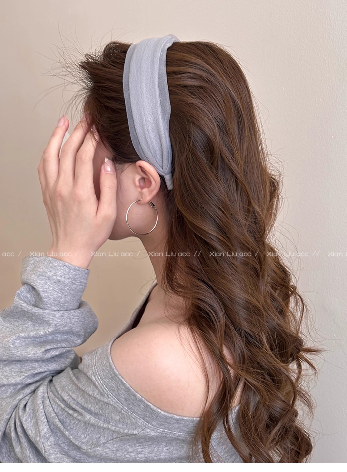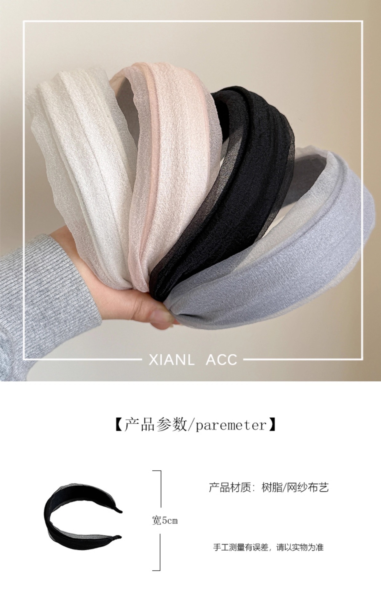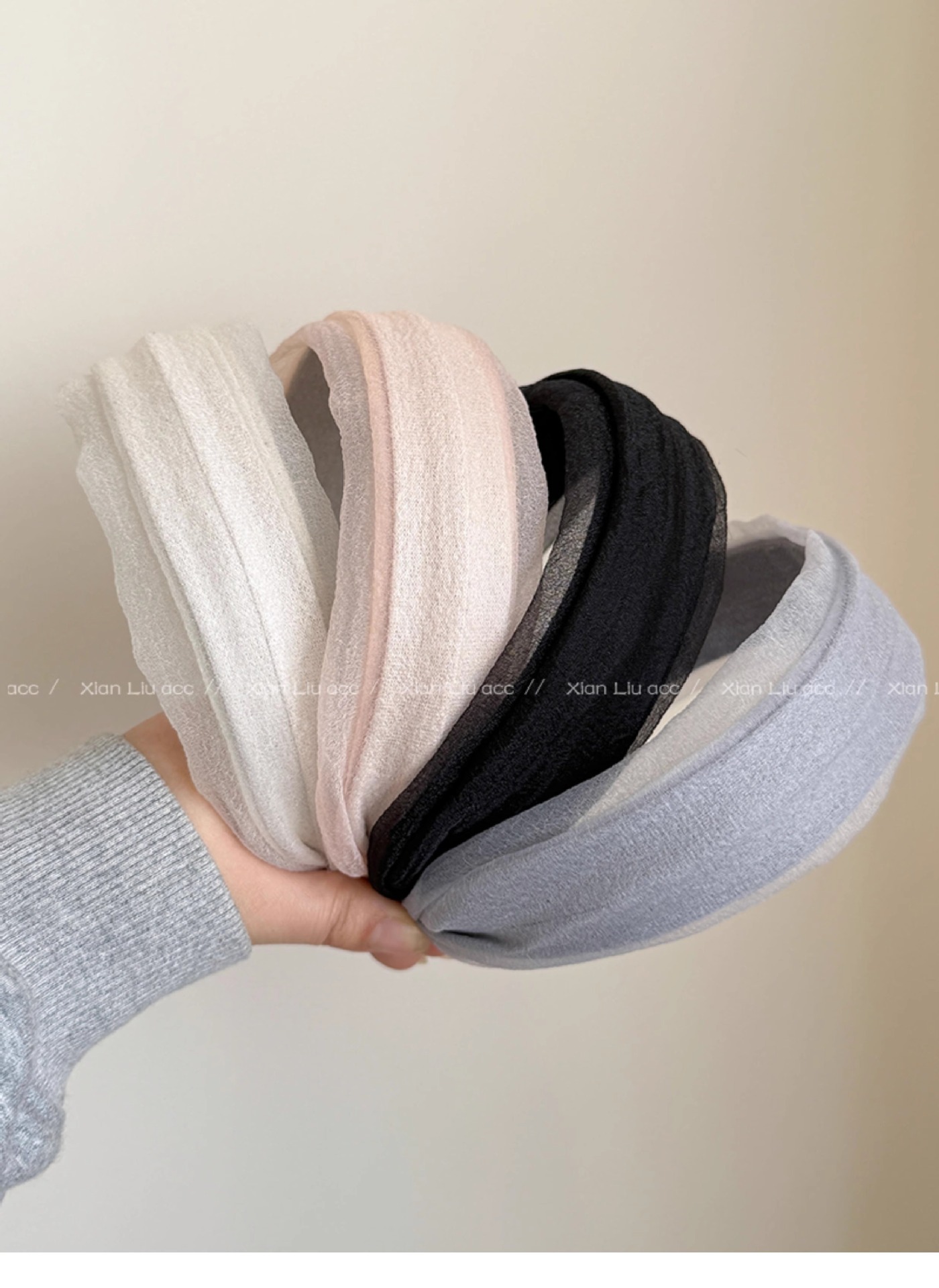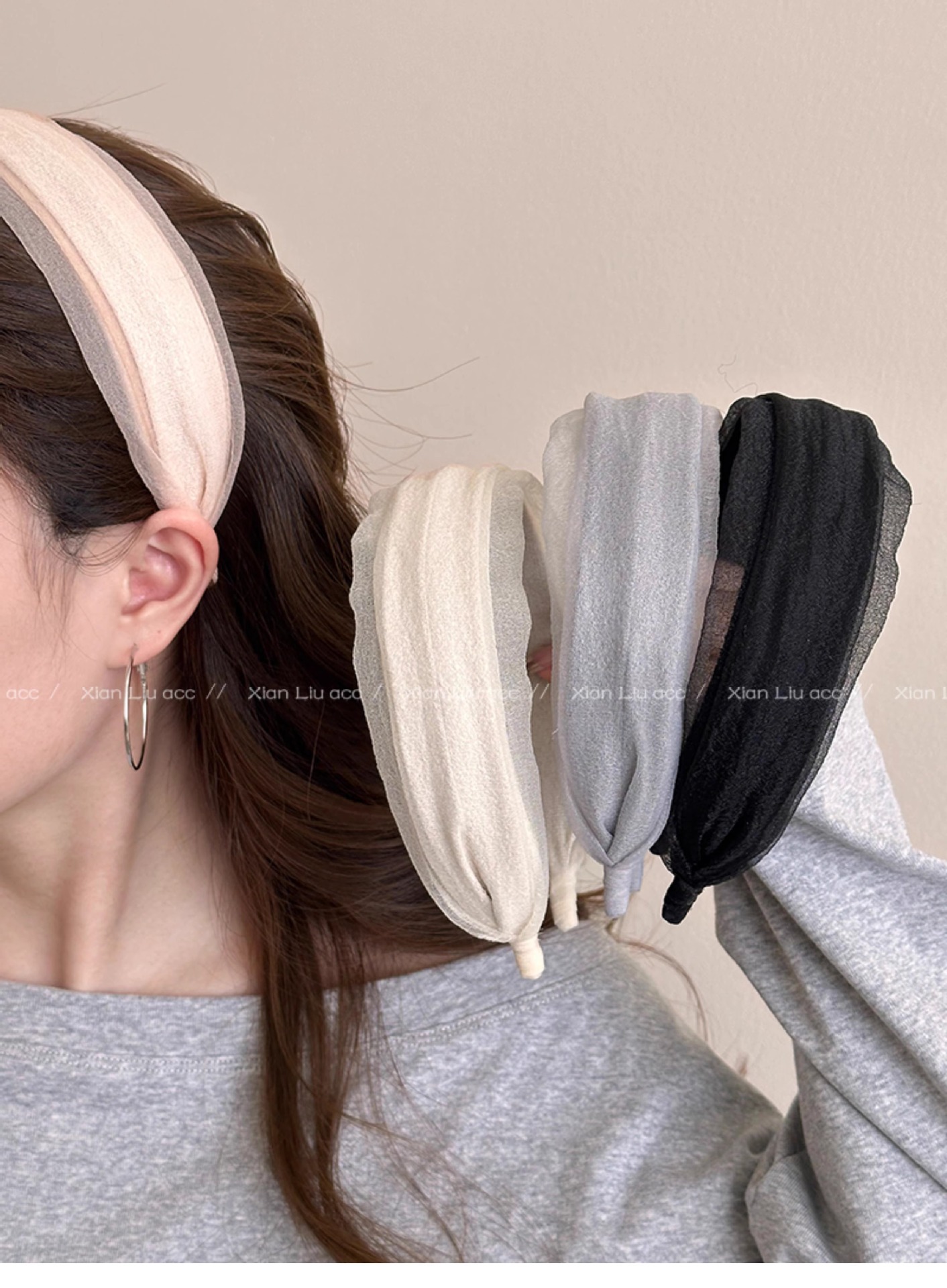 • 그레이 메쉬 주름 머리띠