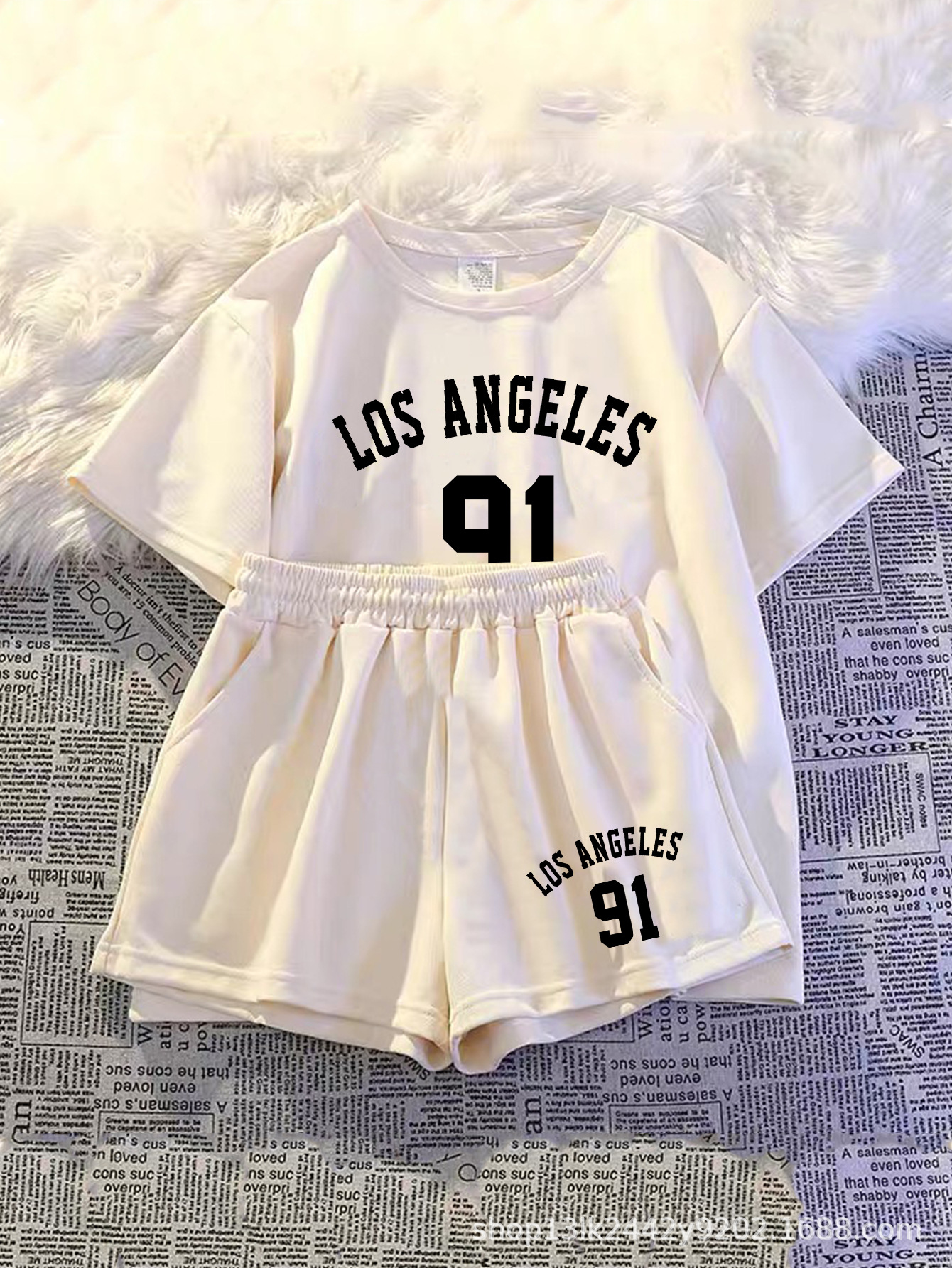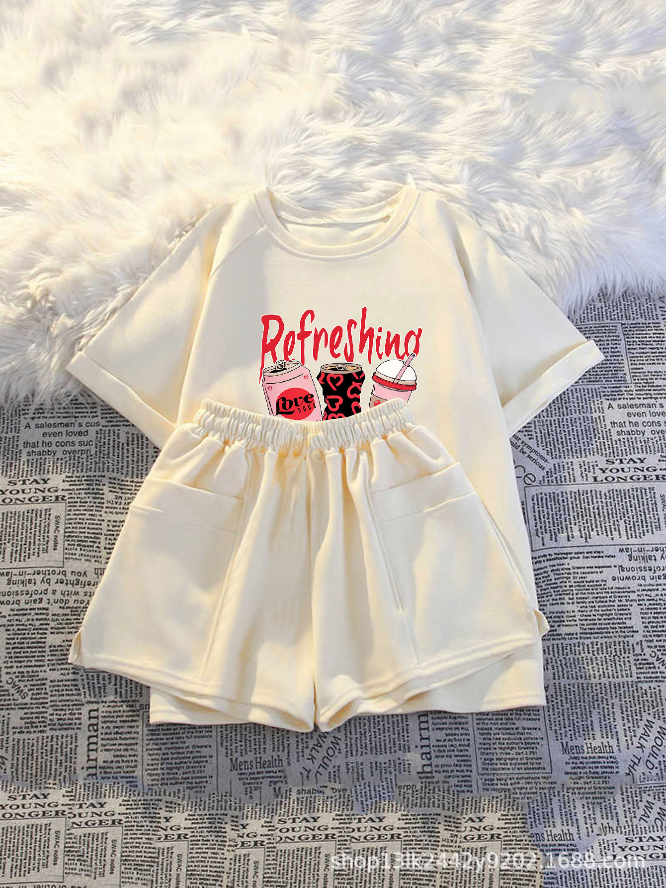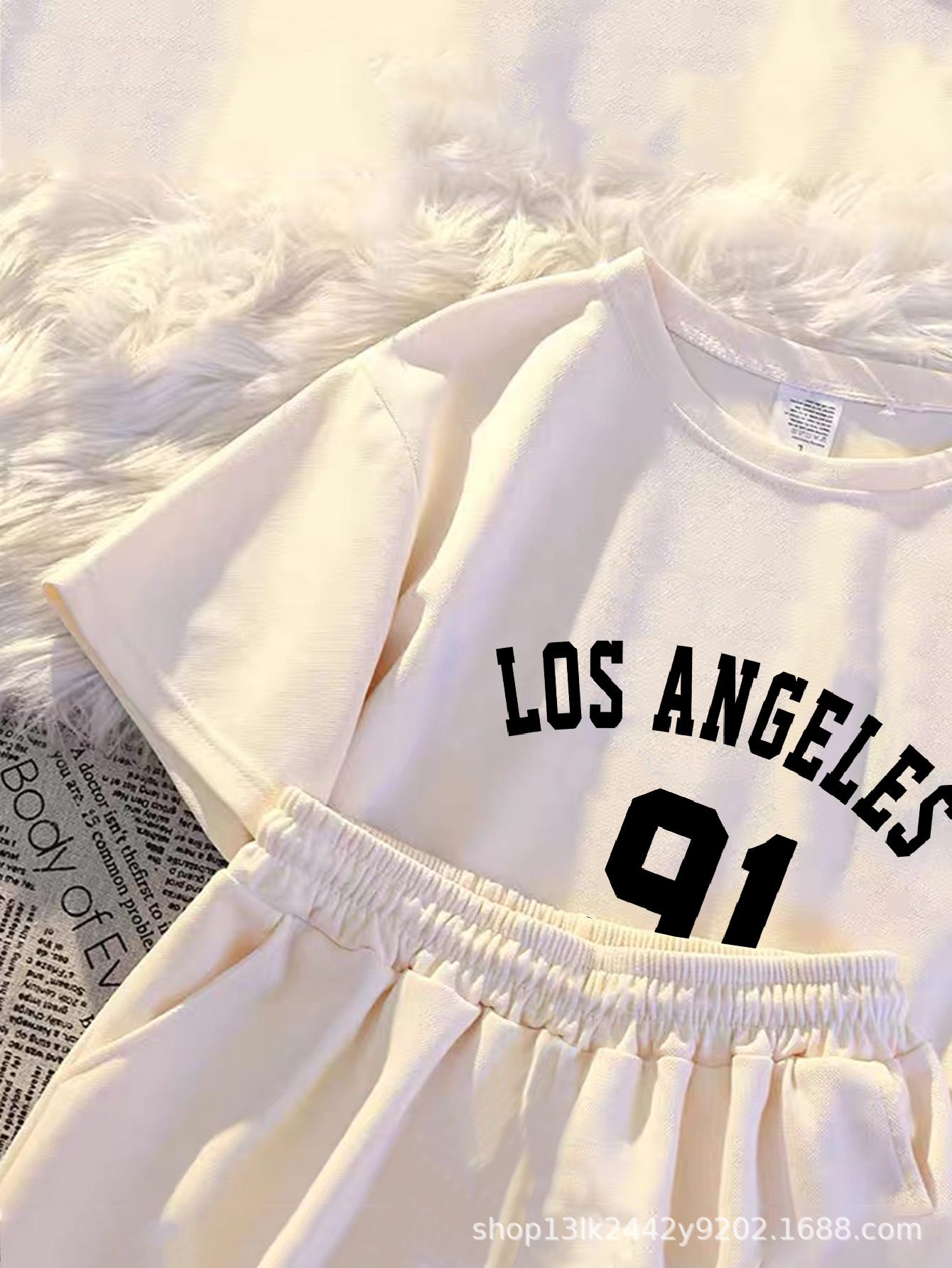 여자 여름 정장 2025 새로운 반팔 티셔츠 반바지 서양식 캐주얼 스포츠 여름 정장 중대형 어린이를위한 투피스 세트