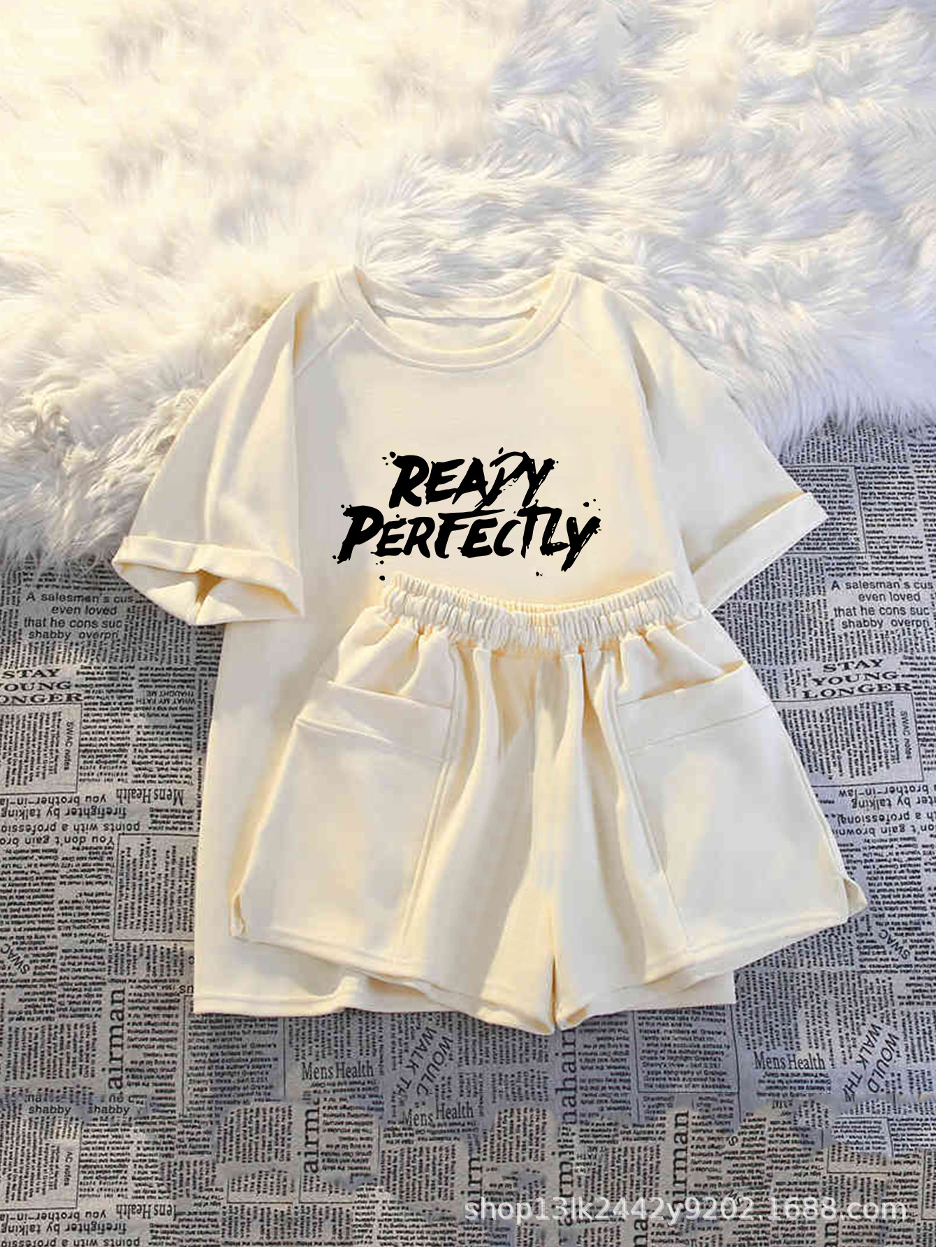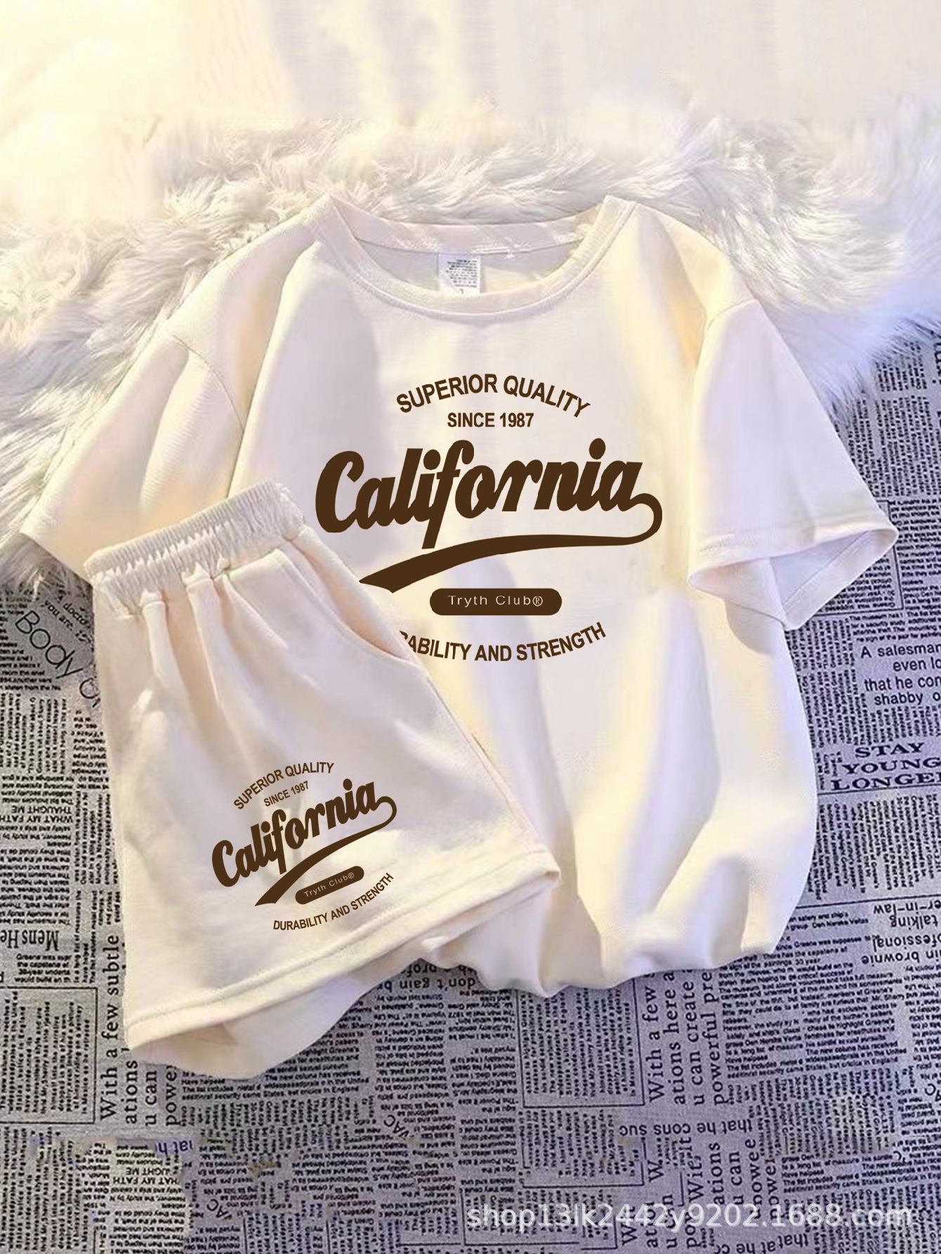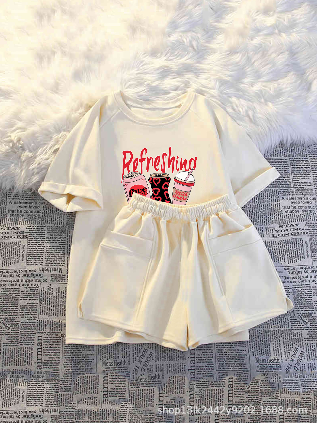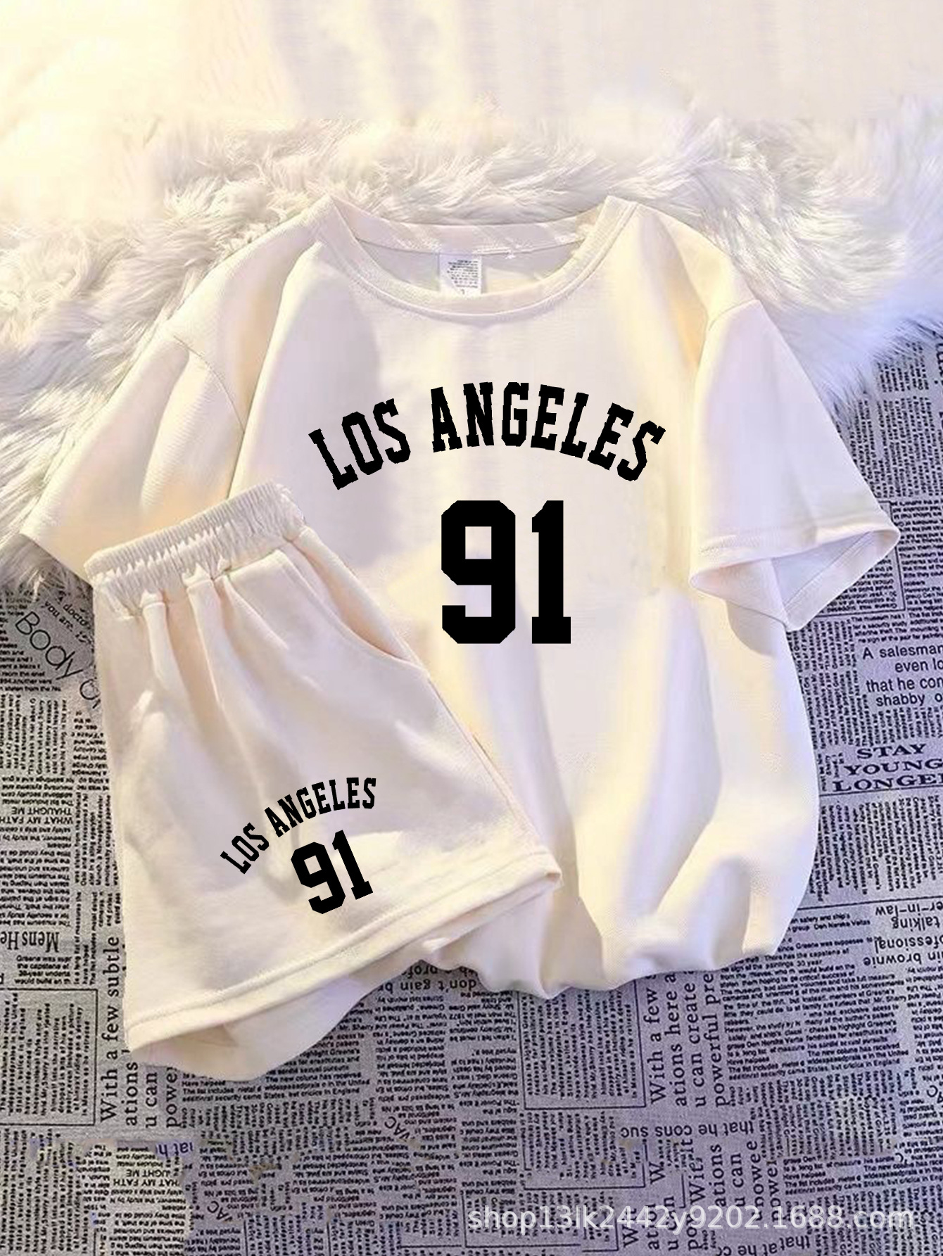 여자 여름 정장 2025 새로운 반팔 티셔츠 반바지 서양식 캐주얼 스포츠 여름 정장 중대형 어린이를위한 투피스 세트