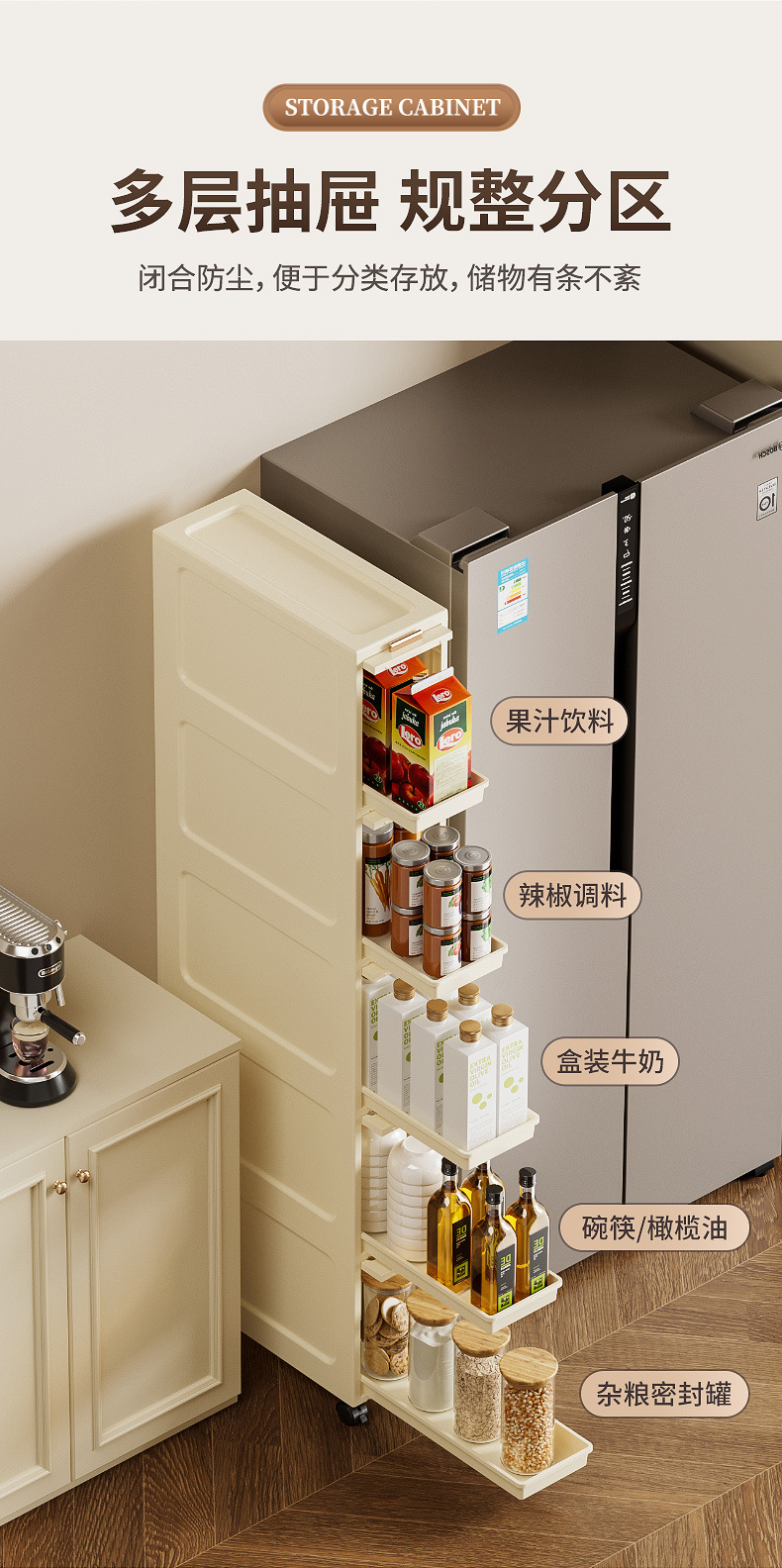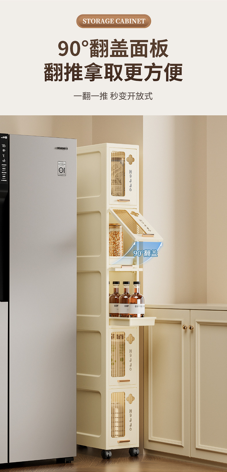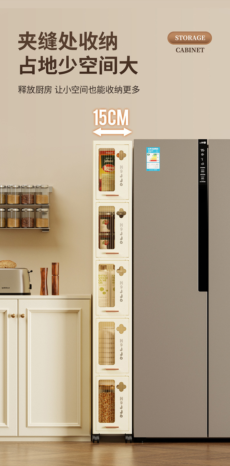 15/20cm 주방 틈새 수납 캐비닛, 욕실 좁은 캐비닛, 이동식 수납 캐비닛, 다층 조미료 수납 선반