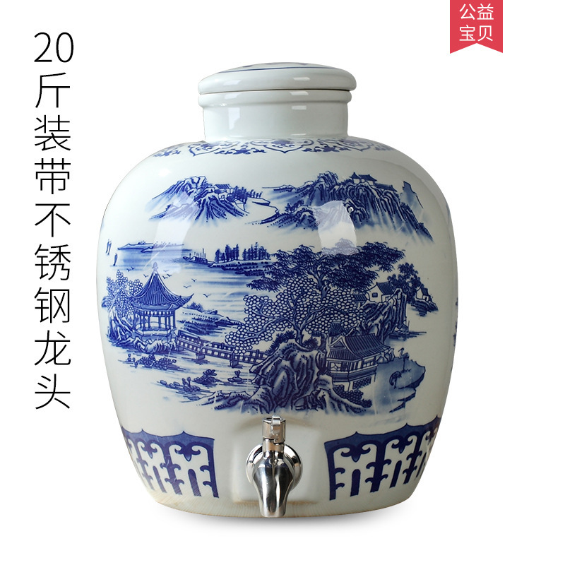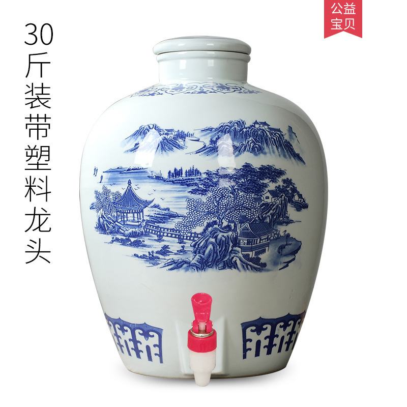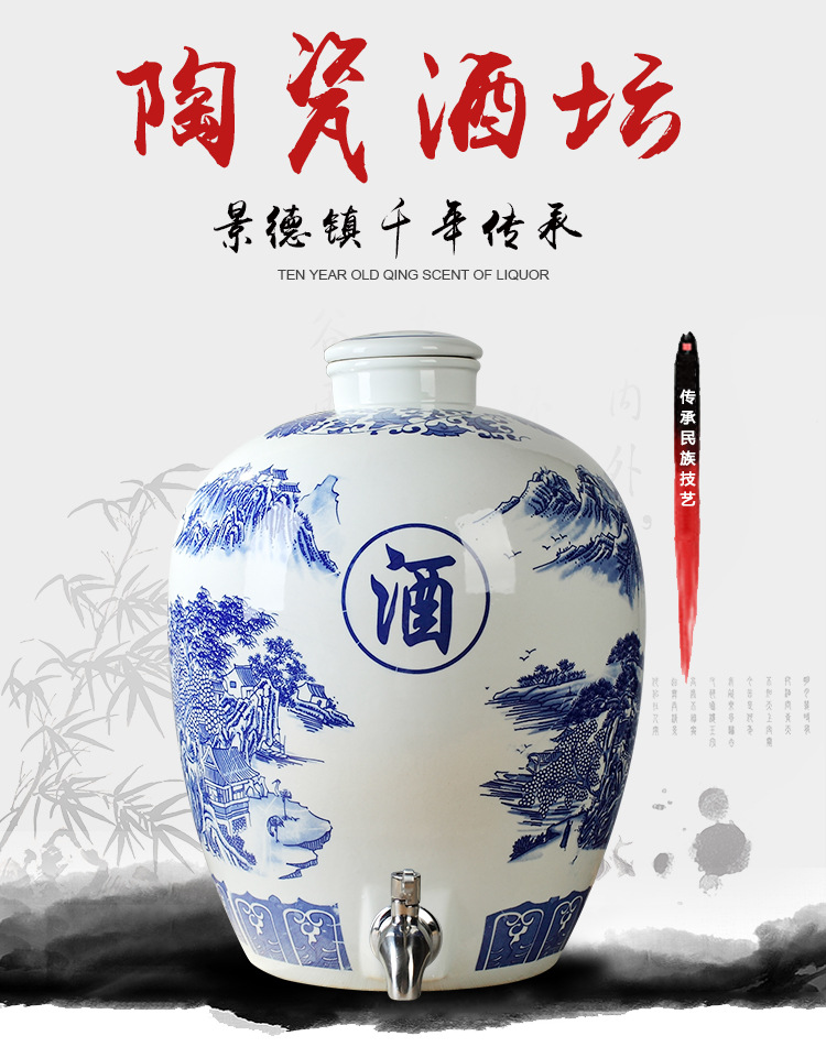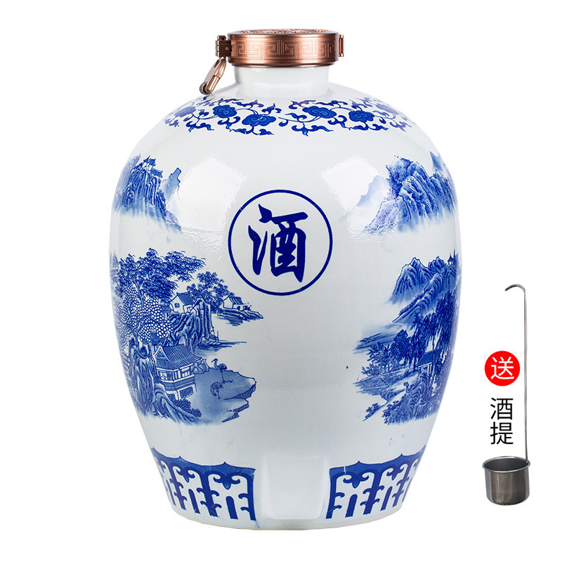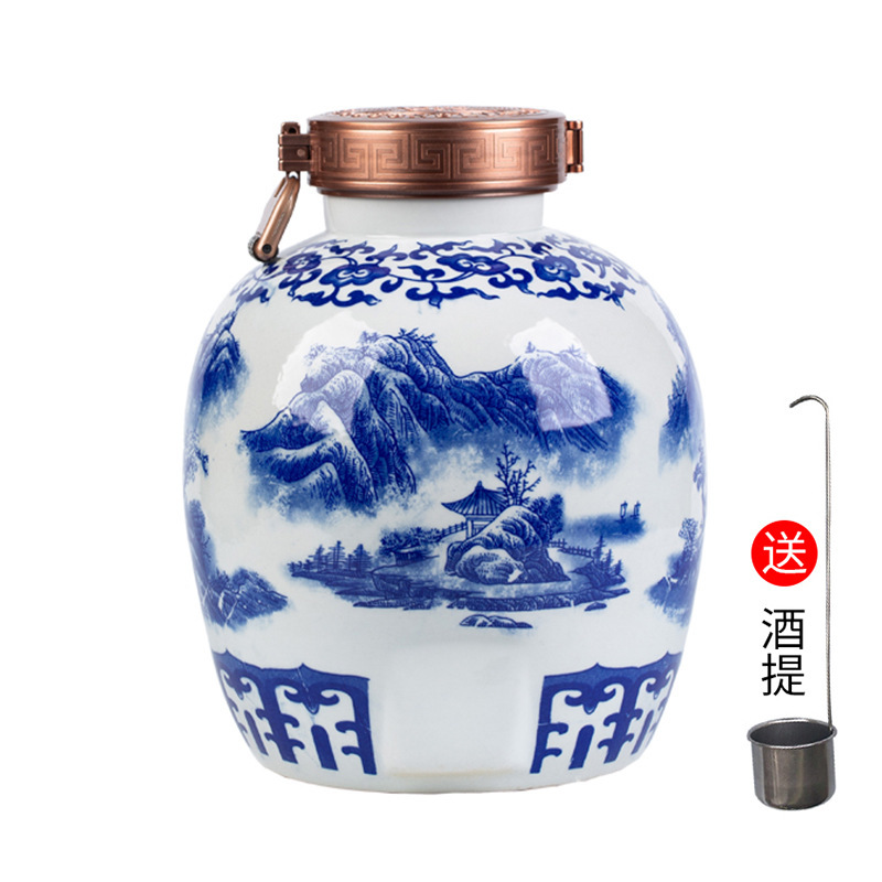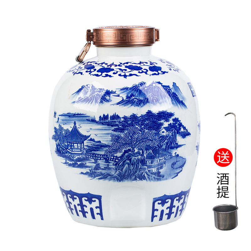 파란색과 흰색 도자기 Jingdezhen 세라믹 와인 항아리 가정용 봉인 와인 병 셀러 담그는 와인 항아리 5.00kg 25.00kg 빈 와인 항아리