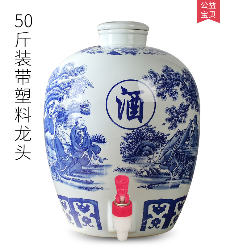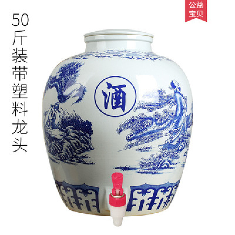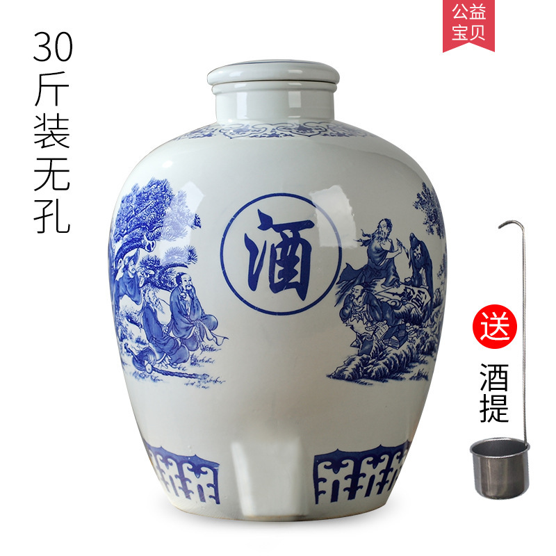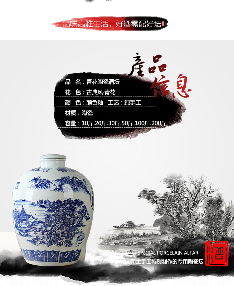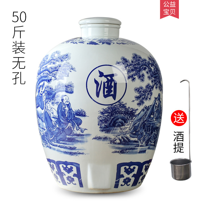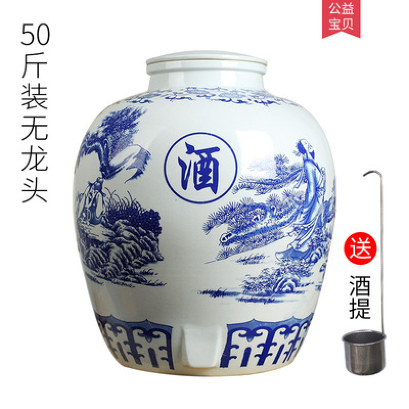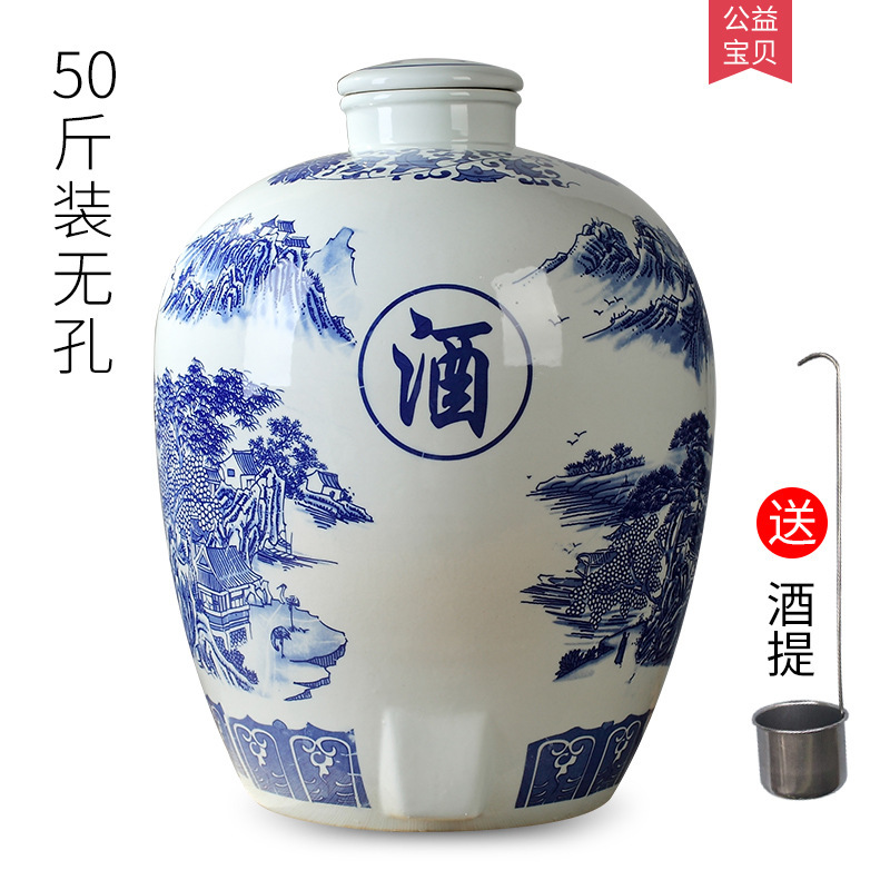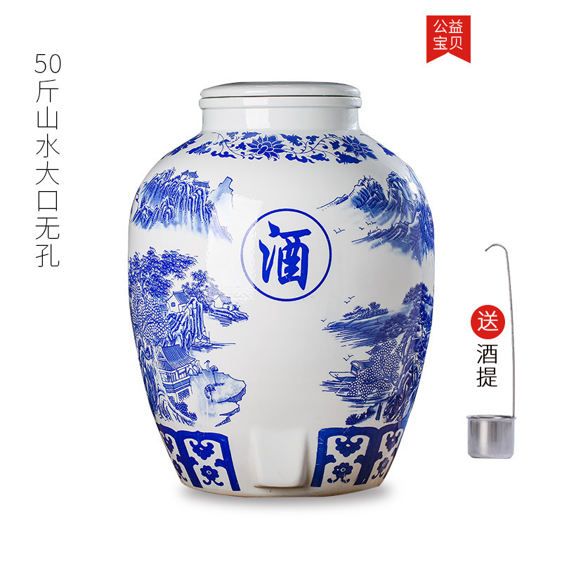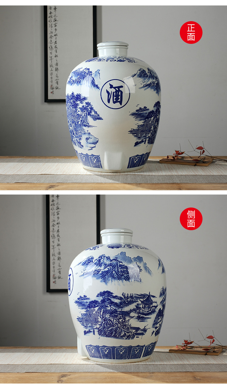 파란색과 흰색 도자기 Jingdezhen 세라믹 와인 항아리 가정용 봉인 와인 병 셀러 담그는 와인 항아리 5.00kg 25.00kg 빈 와인 항아리스토어 가기