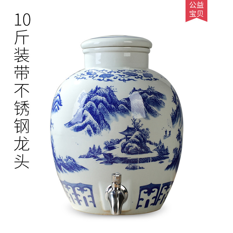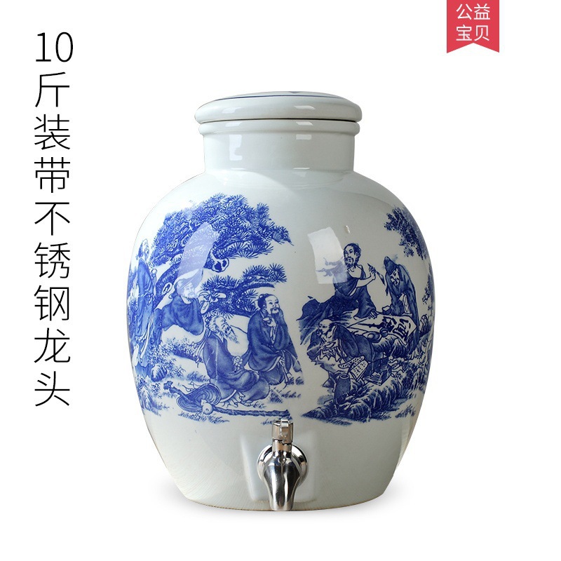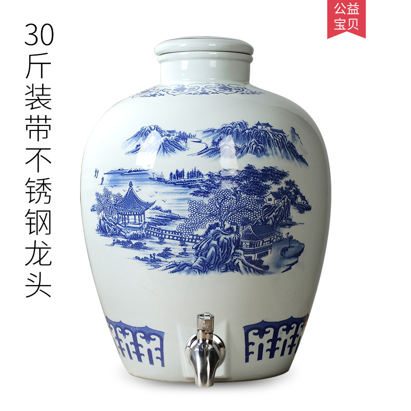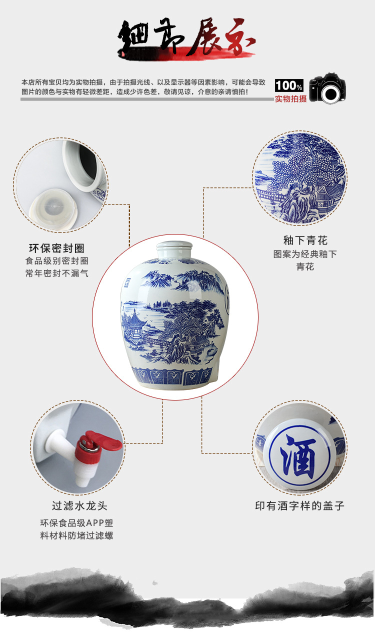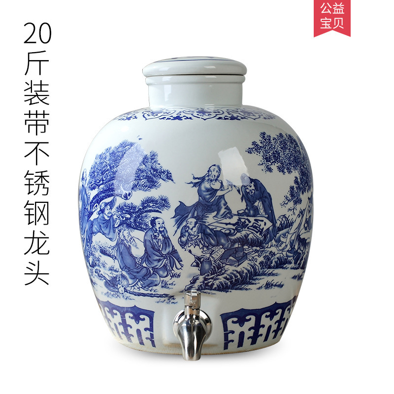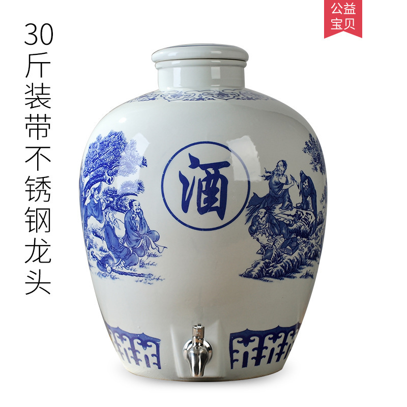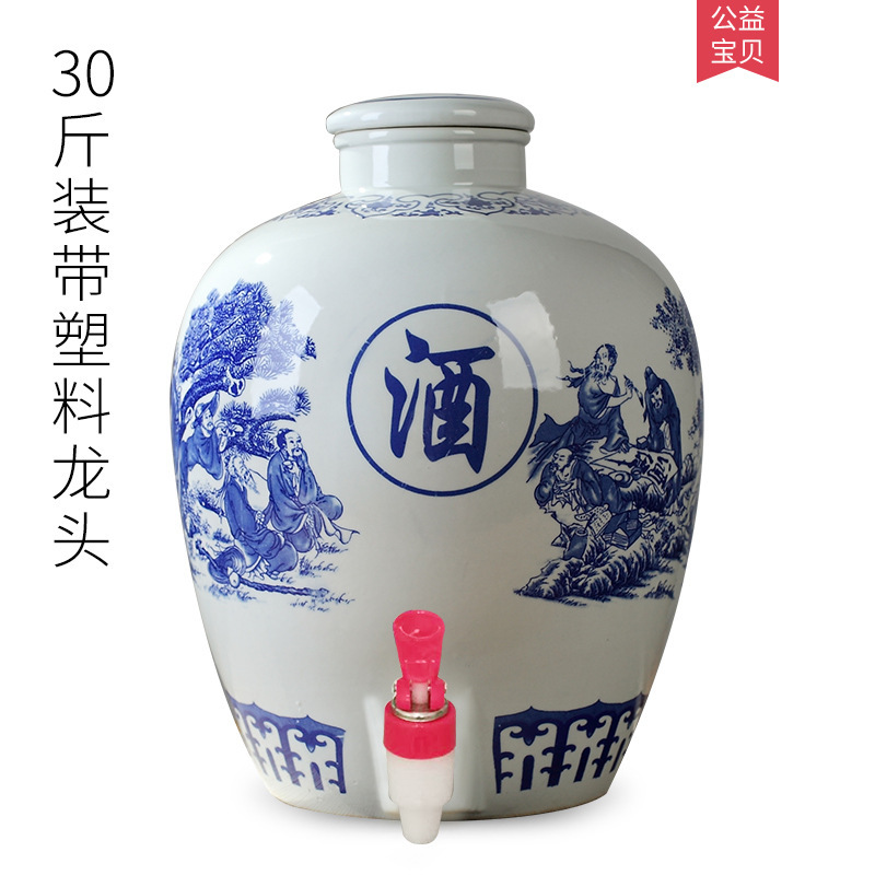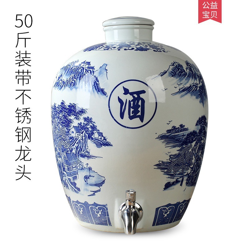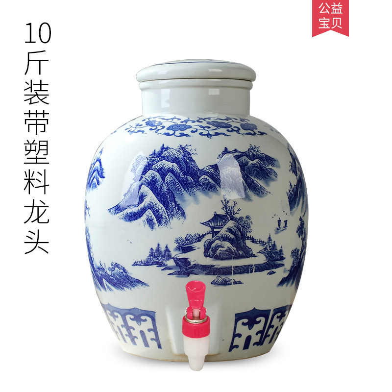 파란색과 흰색 도자기 Jingdezhen 세라믹 와인 항아리 가정용 봉인 와인 병 셀러 담그는 와인 항아리 5.00kg 25.00kg 빈 와인 항아리스토어 가기